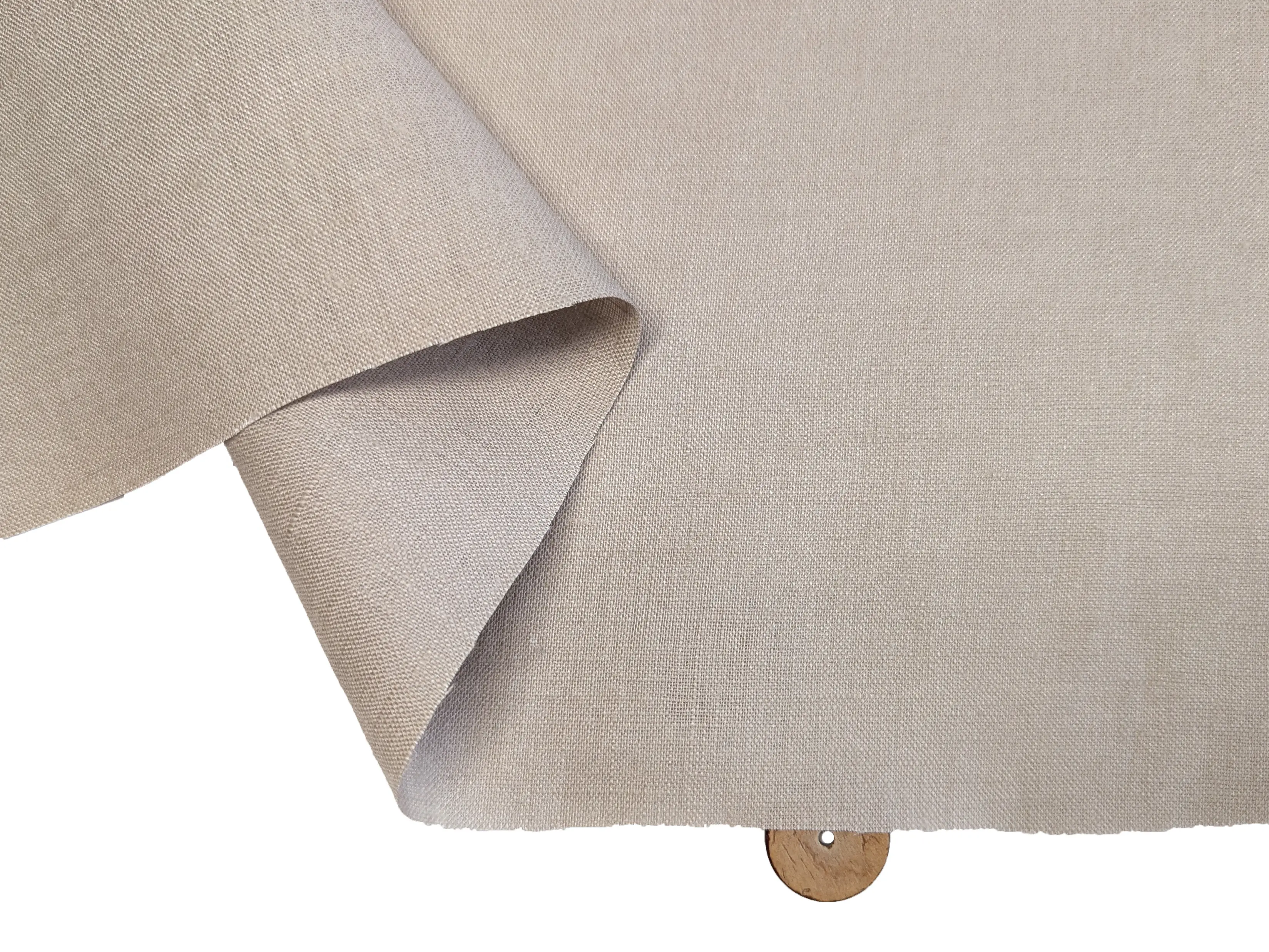 Натуральный льон - лёгкая и дышащая ткань из чистого, 100% льняного волокна. Поверхность полотна матовая, обладает природной фактурой с характерными утолщениями нити. Материал экологичный, прочный и износостойкий, очень хорошо пропускает воздух и впитывает влагу, в жару создает ощущение прохлады. Высокая сминаемость ткани является характерной особенностью чистого льна и подчеркивает его натуральное происхождение. Ткань неэластична, имеет силуэтный просвет в светлых оттенках.