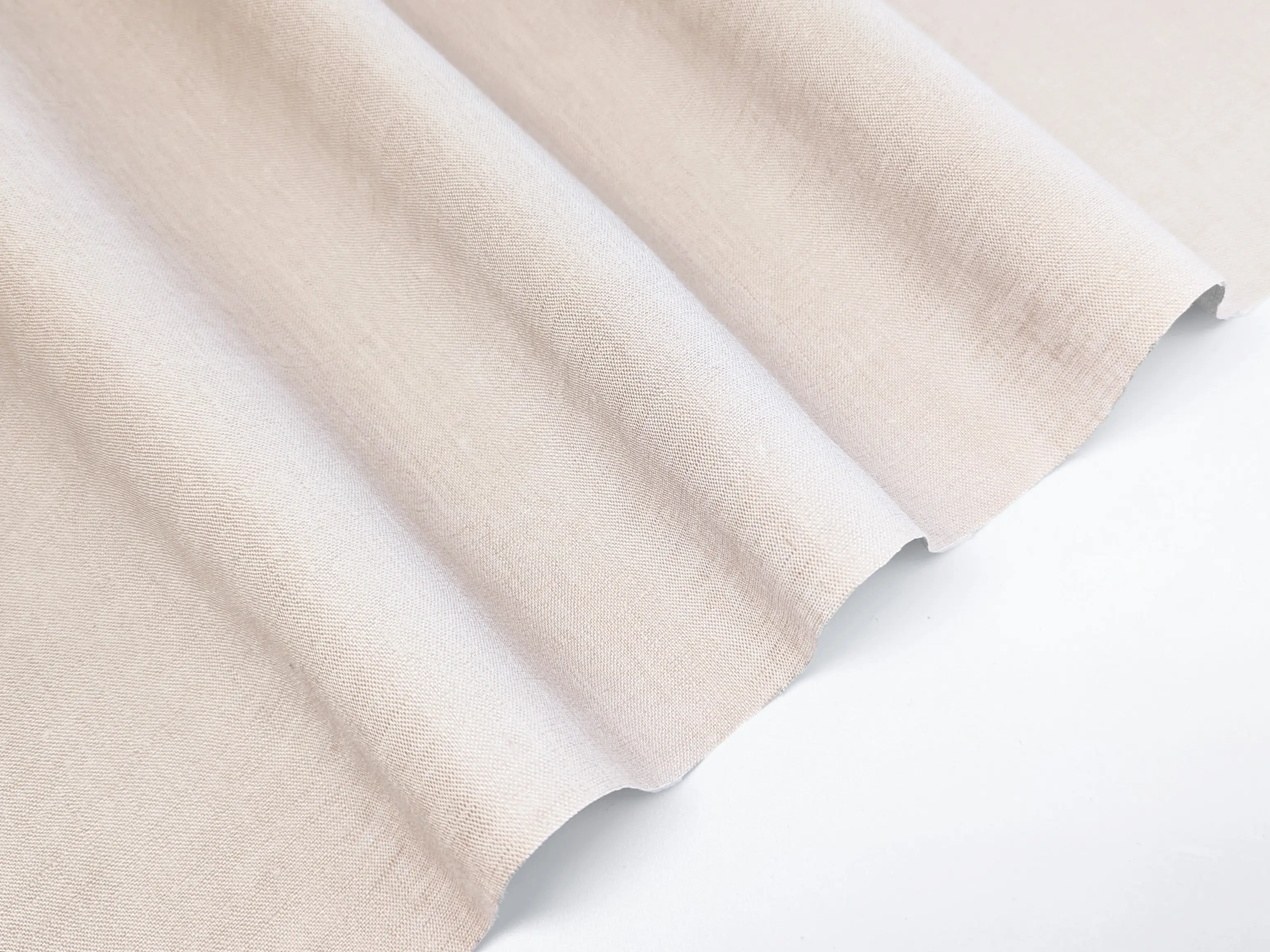 Натуральный льон - лёгкая и дышащая ткань из чистого, 100% льняного волокна. Поверхность полотна матовая, обладает природной фактурой с характерными утолщениями нити. Материал экологичный, прочный и износостойкий, очень хорошо пропускает воздух и впитывает влагу, в жару создает ощущение прохлады. Высокая сминаемость ткани является характерной особенностью чистого льна и подчеркивает его натуральное происхождение. Ткань неэластична, имеет силуэтный просвет в светлых оттенках.