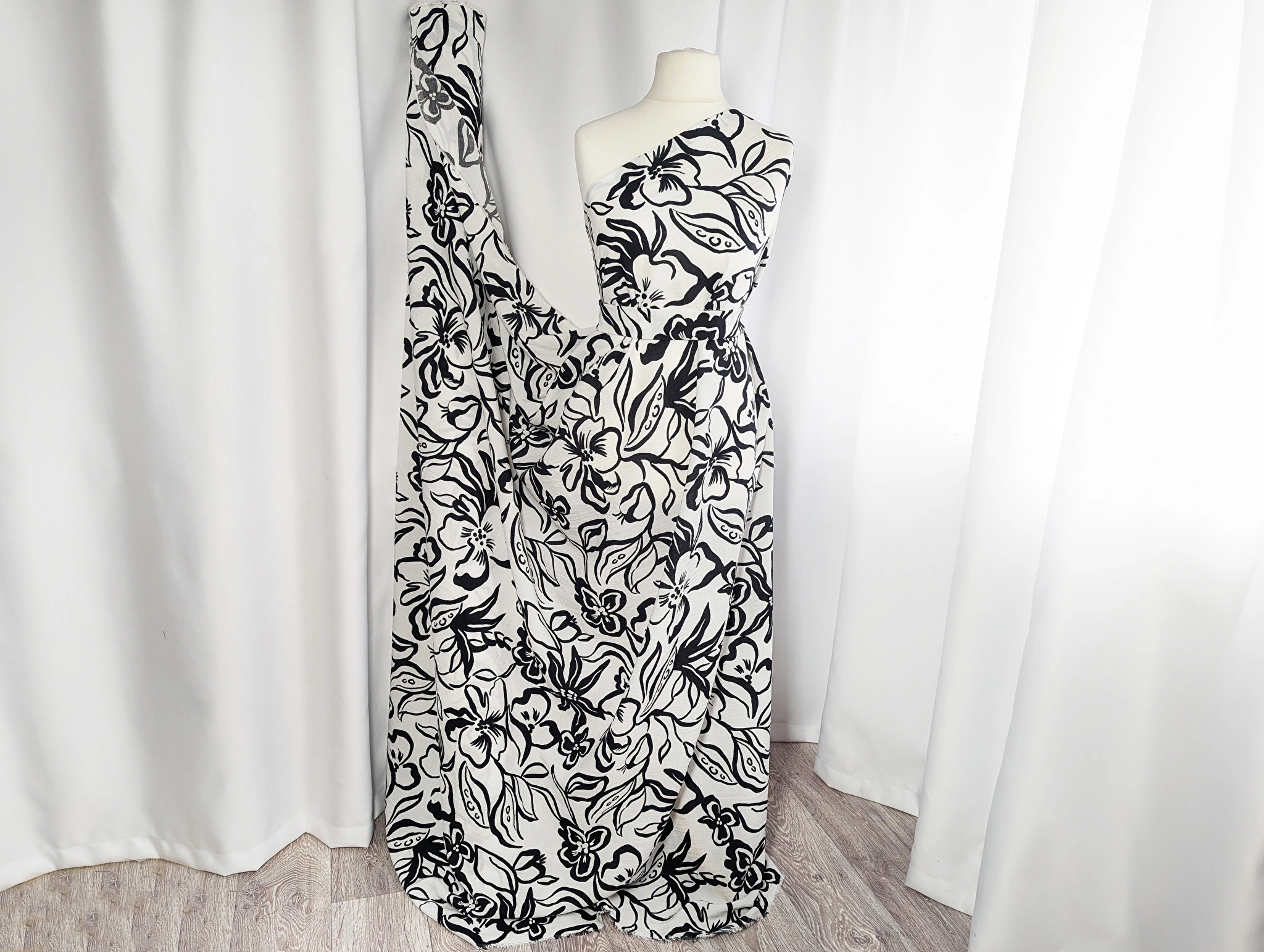 Ткань не тянется,что нужно учитывать при пошиве изделия. Требует деликатного режима стирки в машинке, а также соблюдение среднего температурного режима при глажке утюгом.