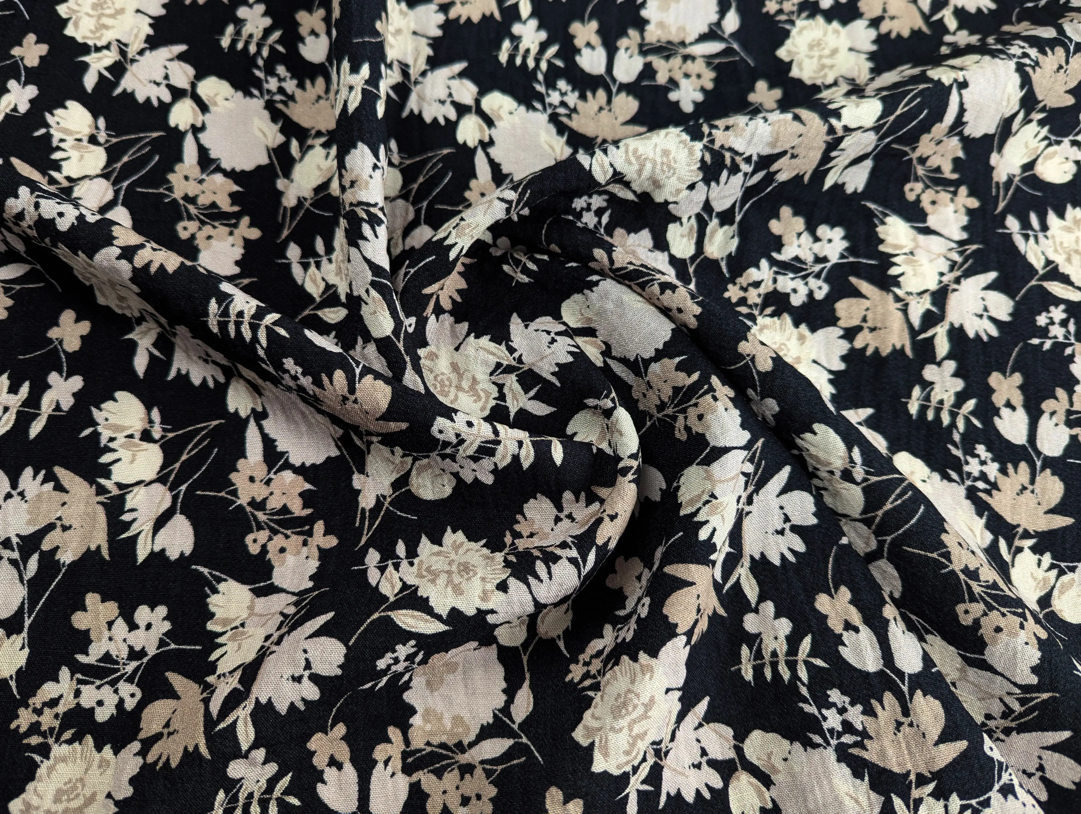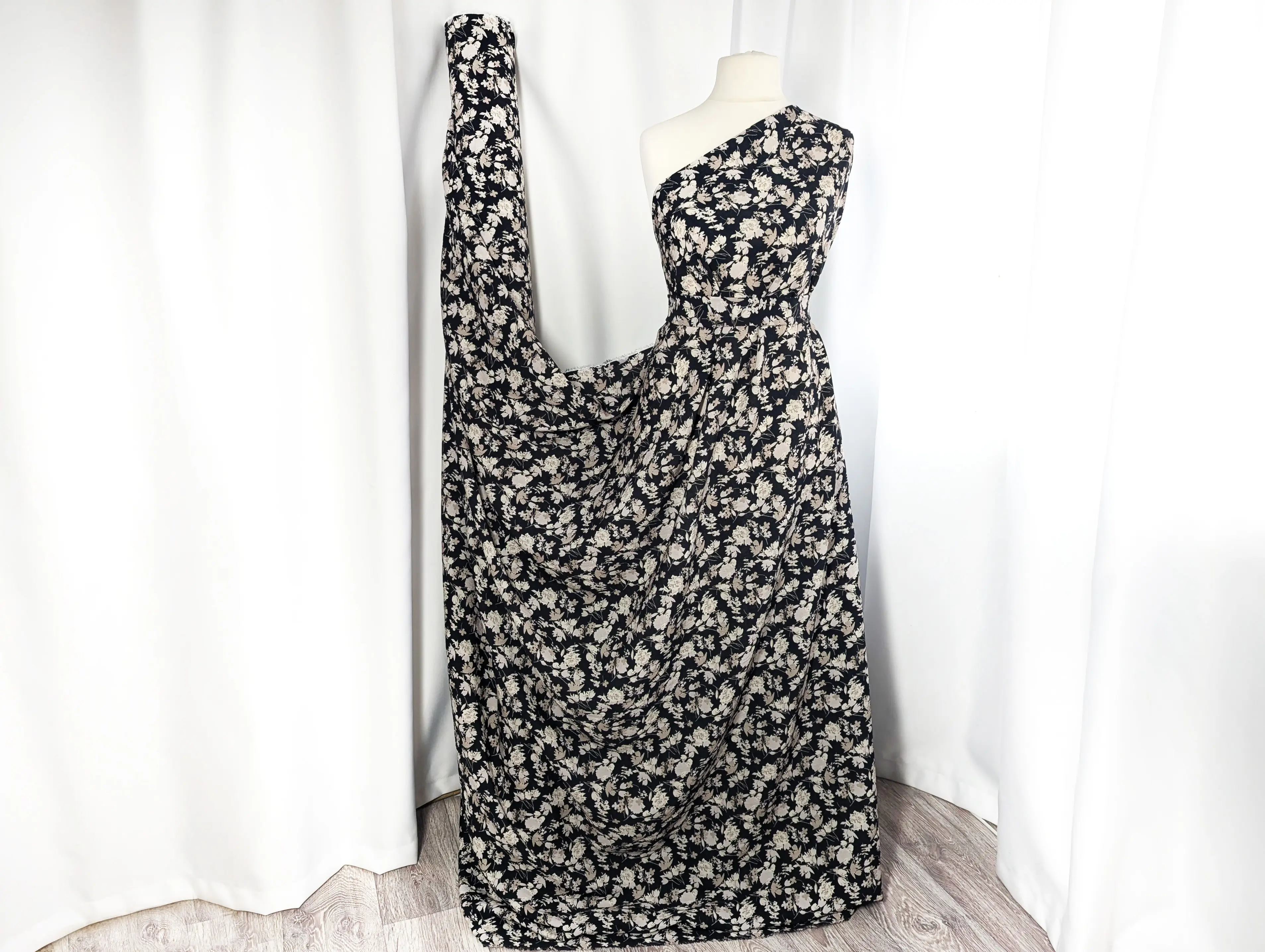Лен Бохо цветочная сказка, черный (отрез 1,5 м)