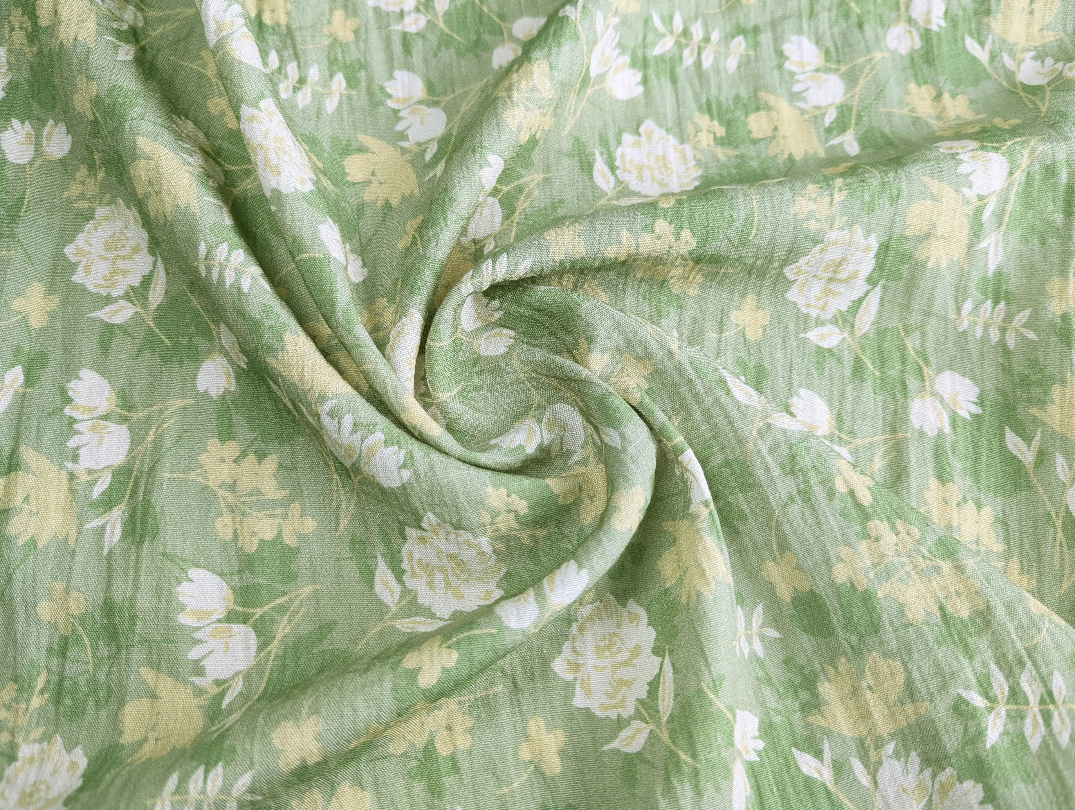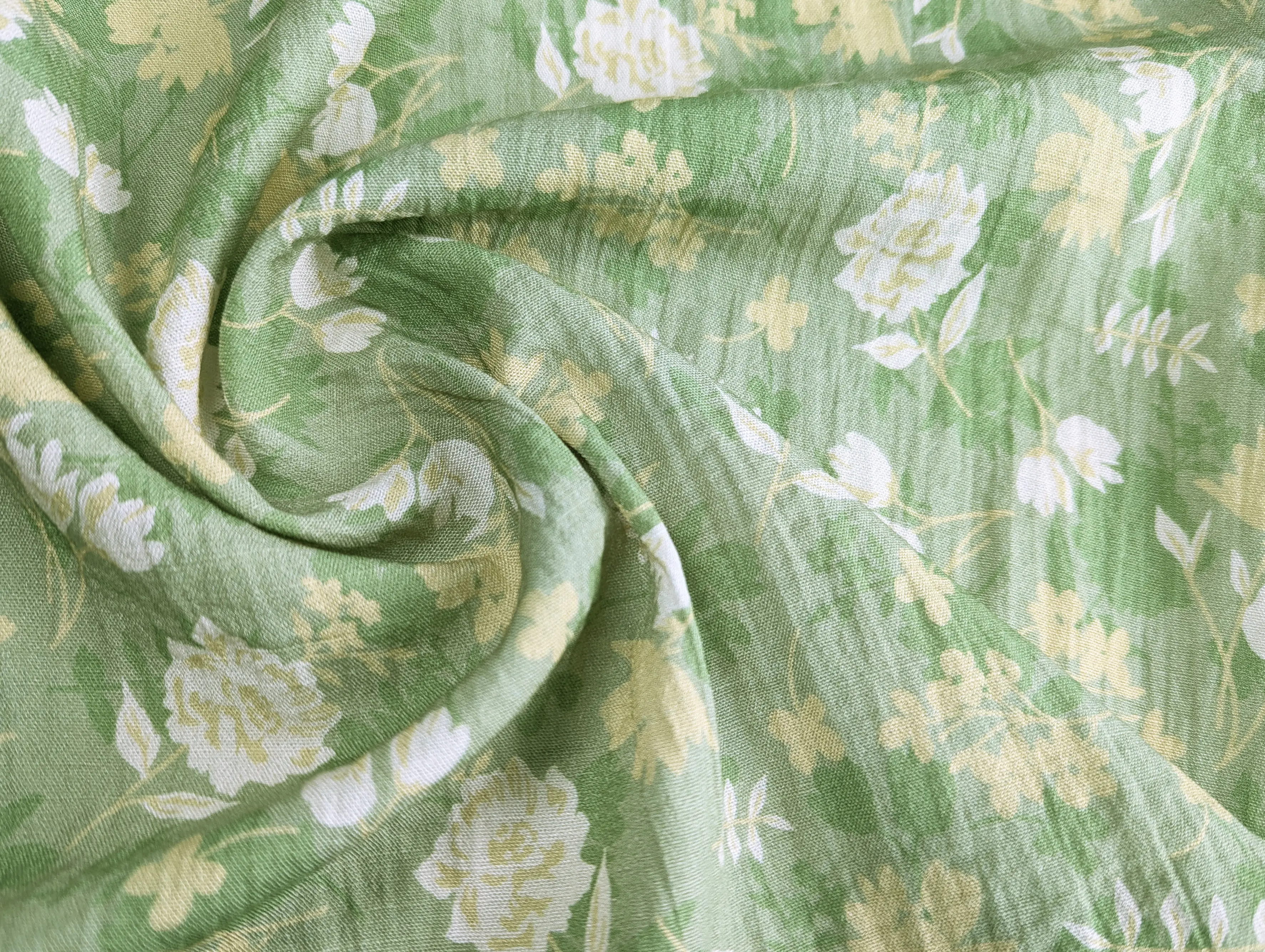 Лен Бохо цветочная сказка, фисташковый (отрез 0,9 м) (л53, 2409069F, д5, к3)