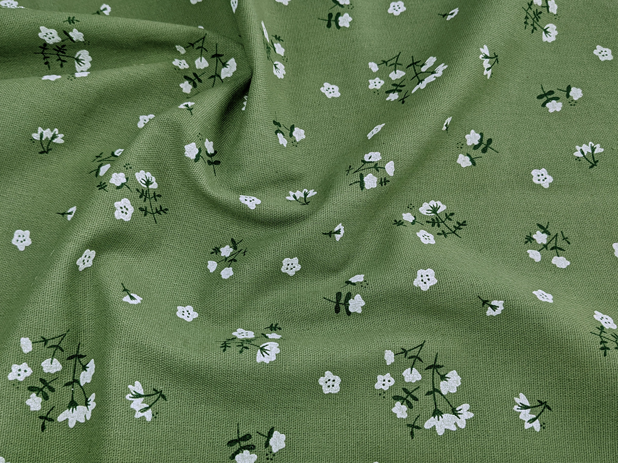 Лен коттон лакр букетики, светлый хаки
