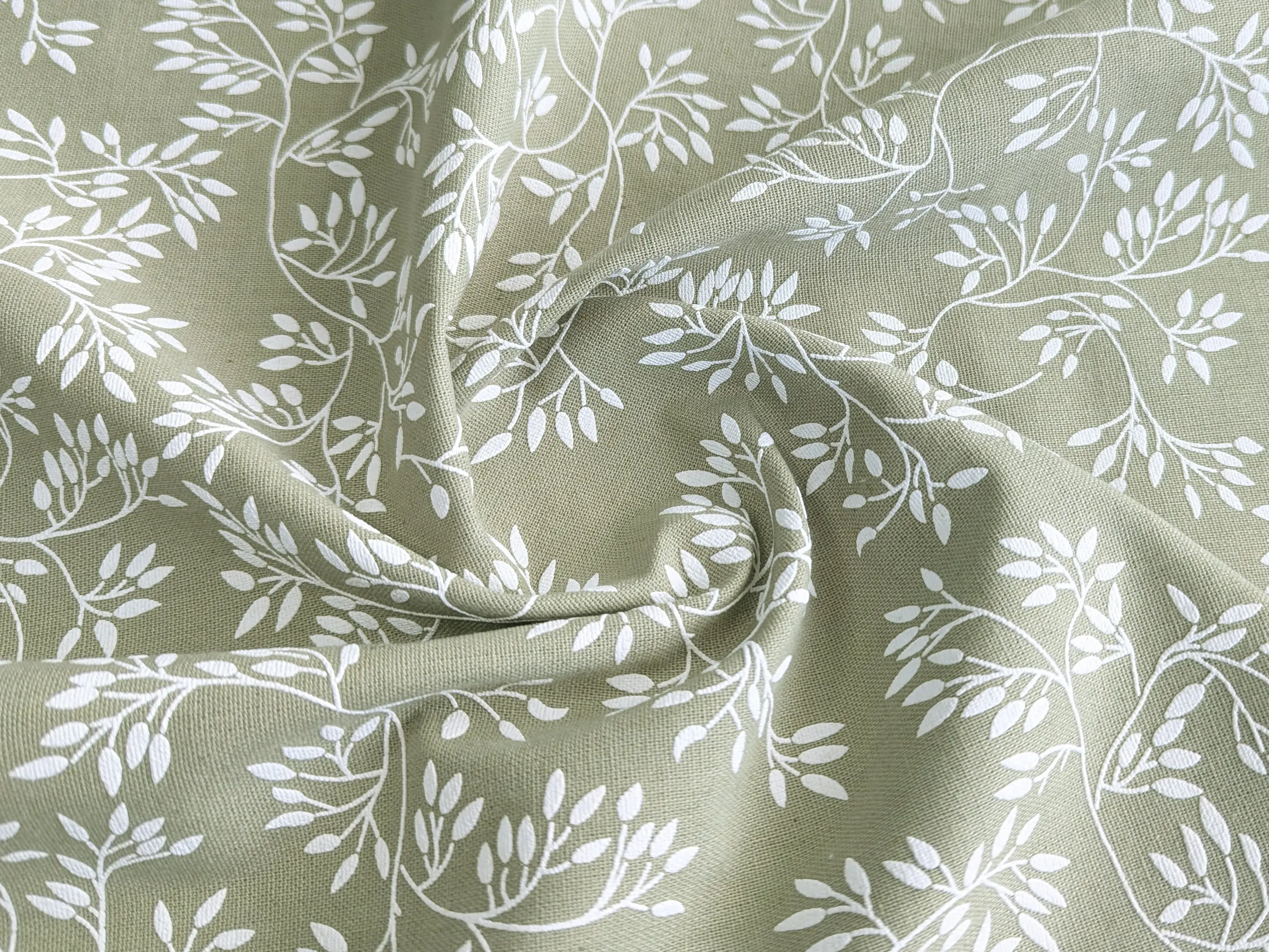 Лен коттон лакр лиственное плетение, зеленая олива