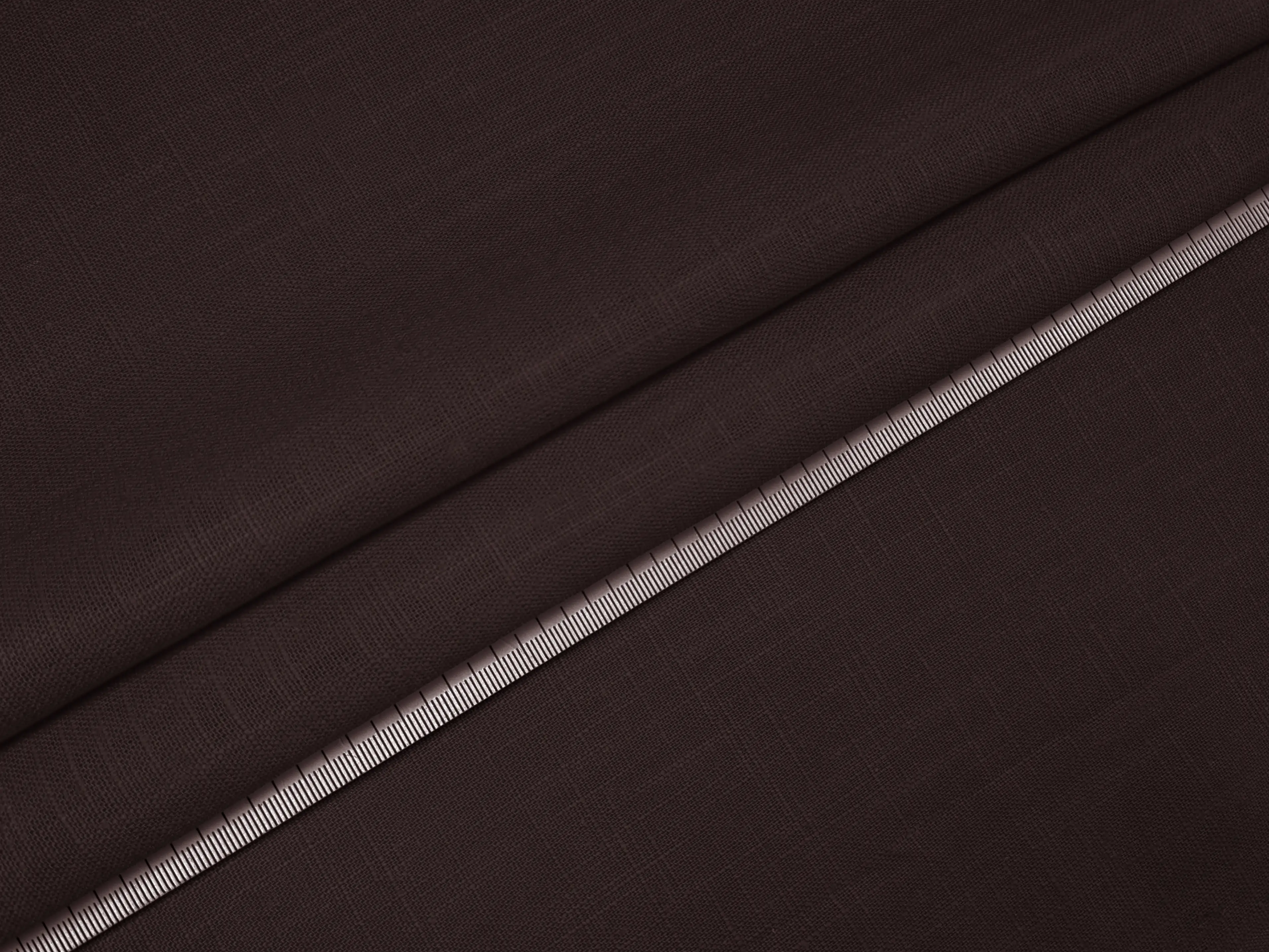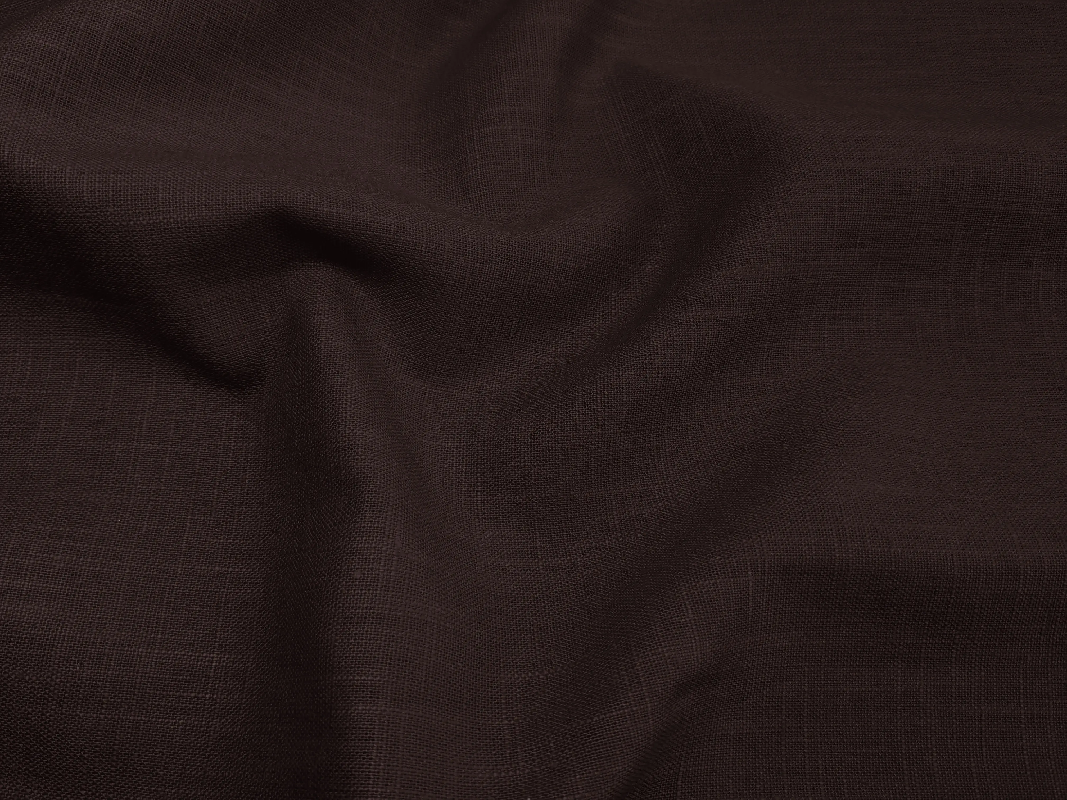 Лен Рами - материал натурального происхождения. Фактура имеет естественные уплотнения в виде штрихов из более уплотненной нити по всему полотну. Ткань средней плотности, гигроскопичная, воздухопроницаемая. Слегка эластичная по ширине полотна, непрозрачная на теле. За счет натурального состава сминается, при драпировке хорошо ложится в складки, сохраняет форму.