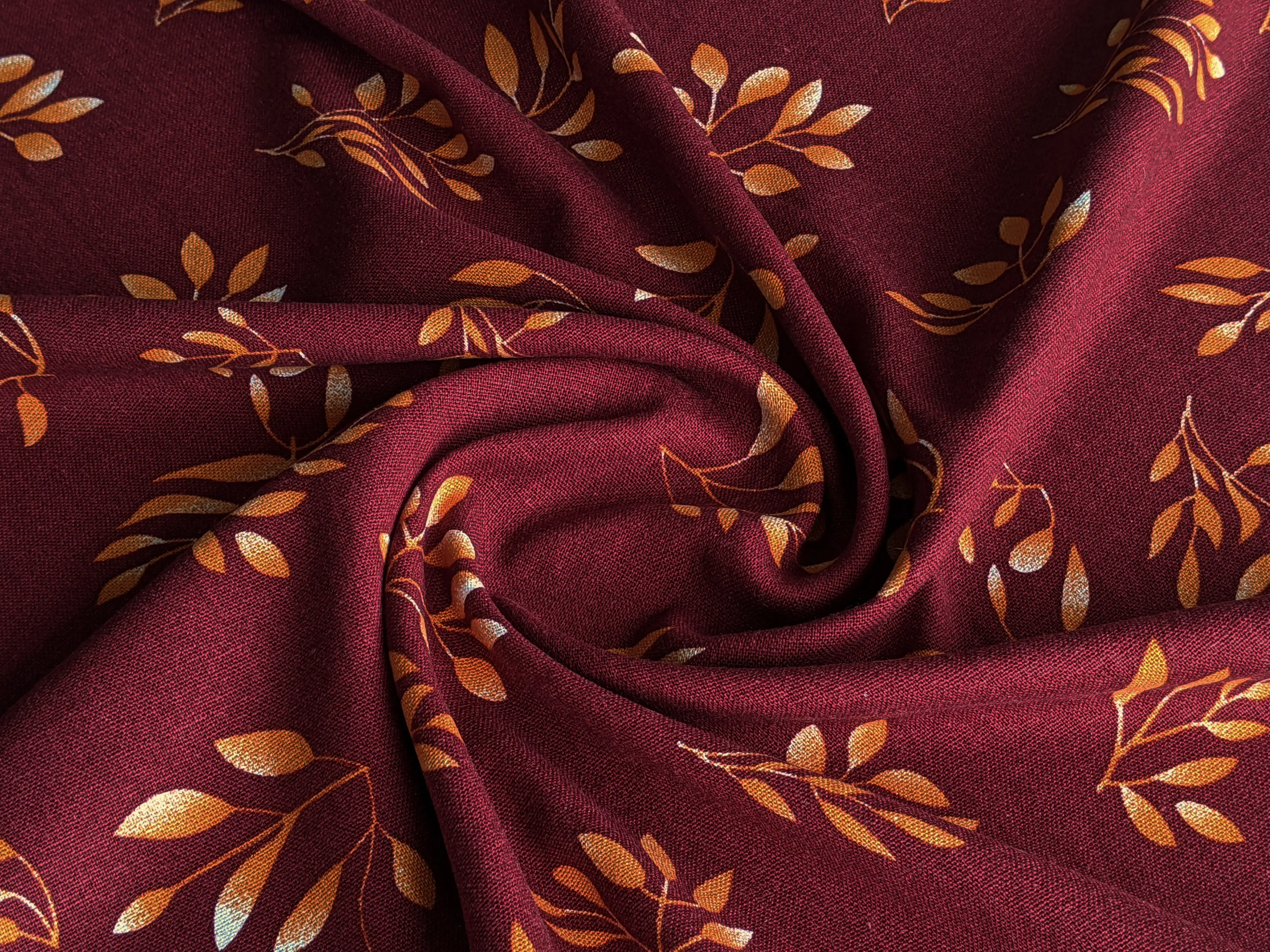 Лен с вискозой веточки, бордовый (отрез 0,4 м)