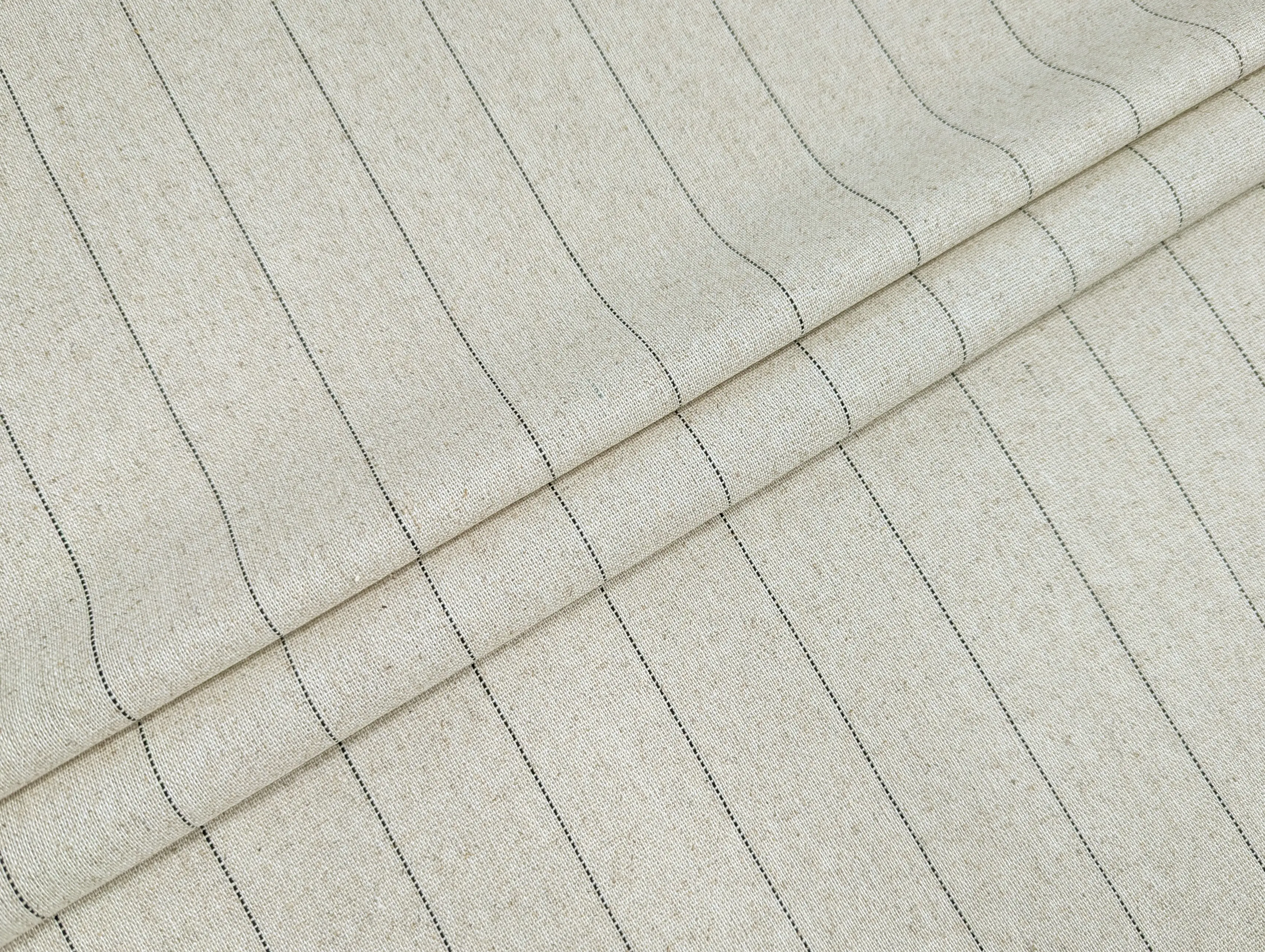 Лен вискоза полоска - тонкое, мягкое льняное полотно натурального происхождения. Ткань слегка эластична по ширине полотна, имеет силуэтный просвет, при драпировке ложится в мягкие складки, за счет содержания натуральных волокон - сминается. Материал гигроскопичный и воздухопроницаемый , что не мало важно в жаркую погоду. Принт полоска выполнен в продольном направлении (вдоль кромки).