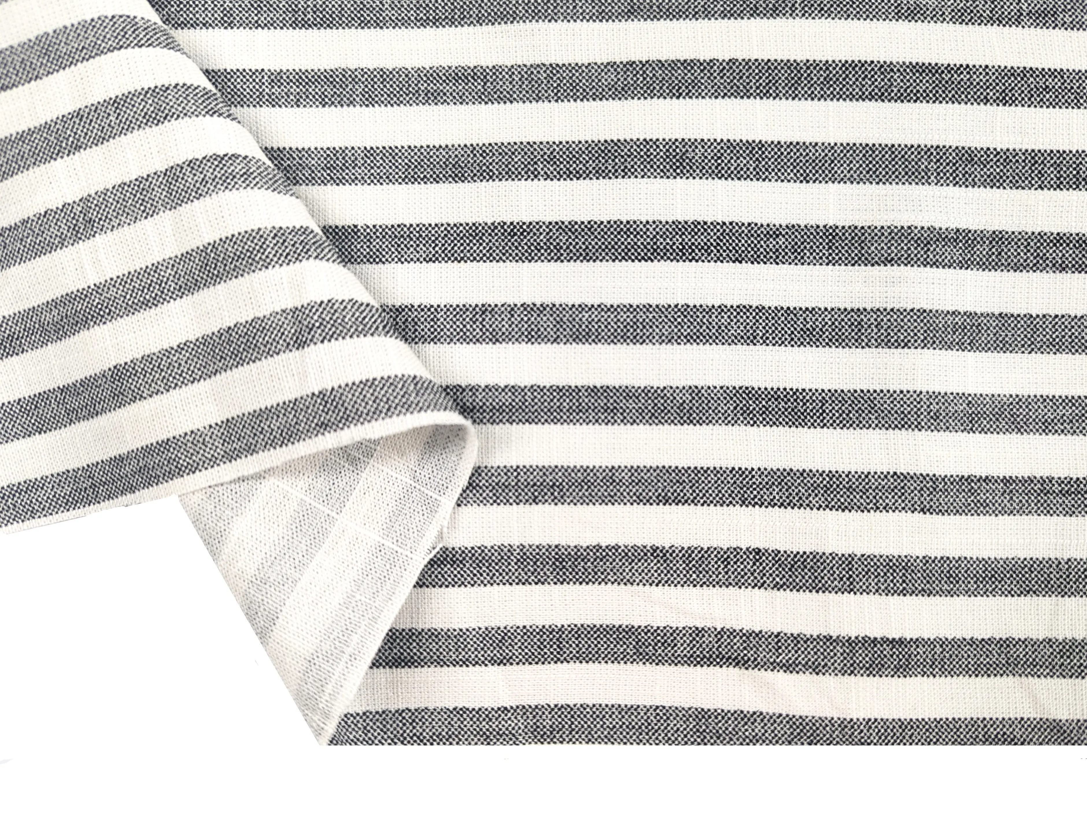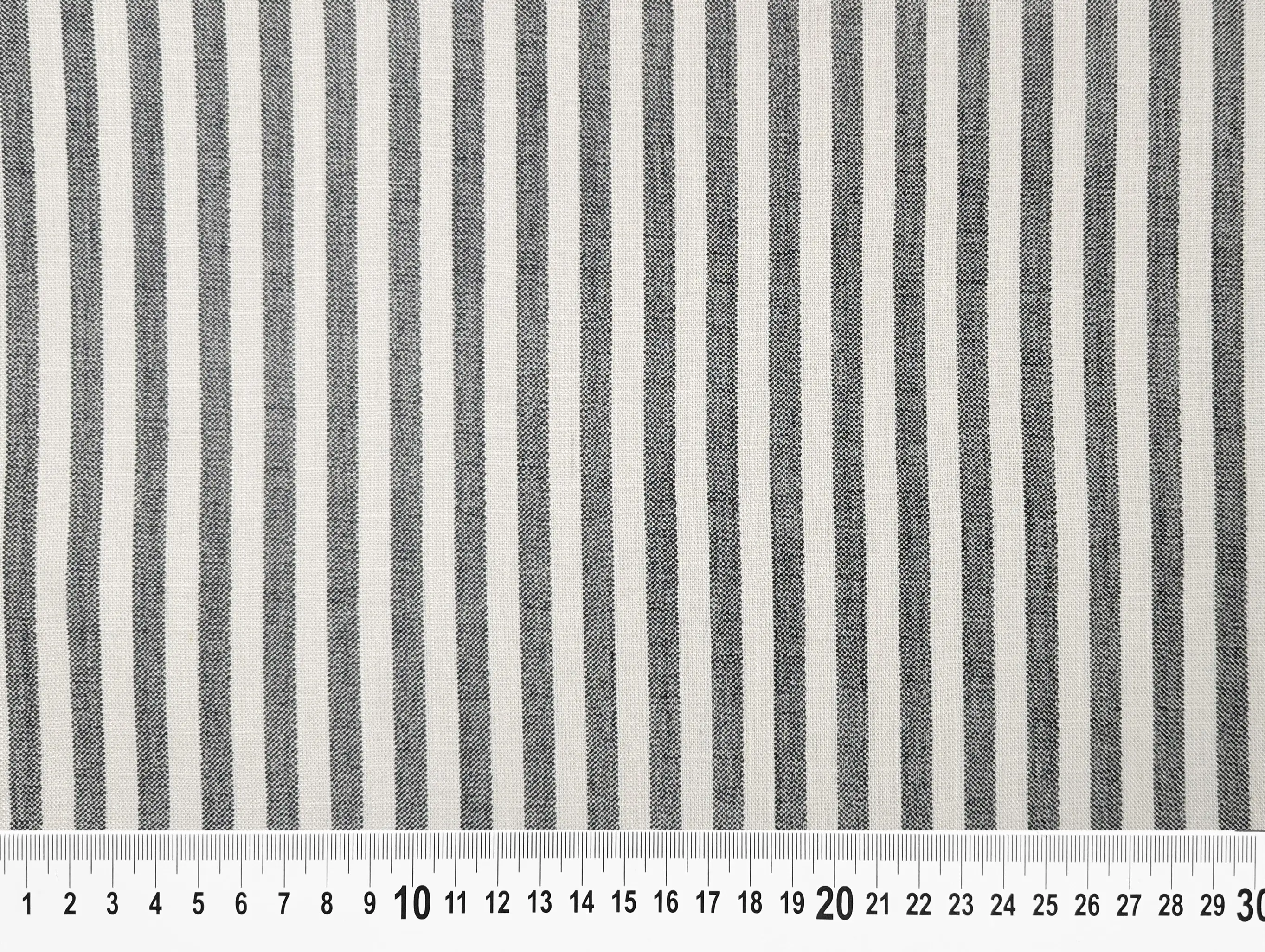 Лен вискоза полоска 6 мм, молочный с черным (отрез 0,3 м)