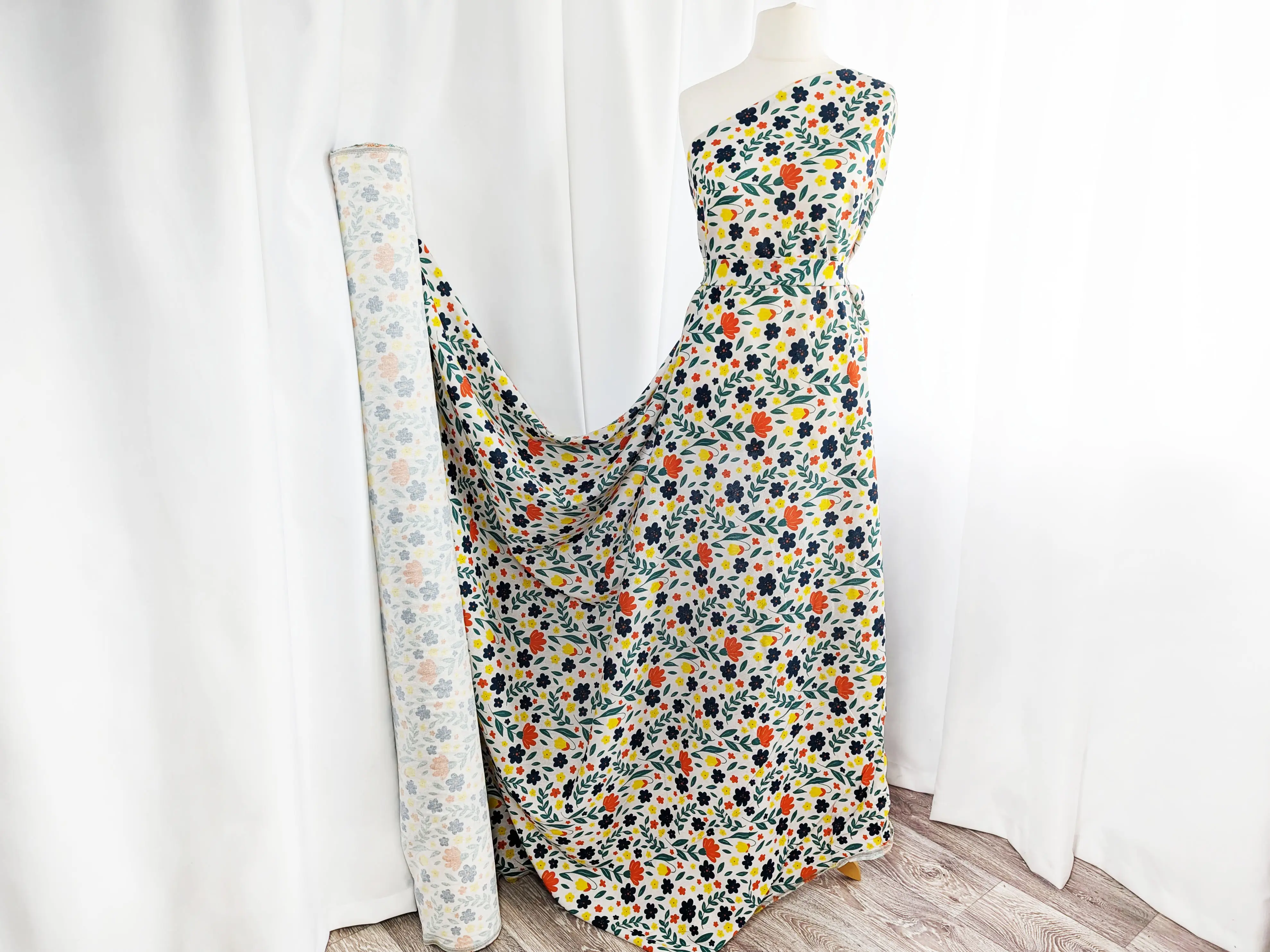 Лен вискоза - материал натурального происхождения. В составе ткани преобладает вискоза, благодаря которой полотно очень мягкое и приятное на ощупь. Ткань неэластична, обладает средней степенью сминаемости, имеет легкую светопрозрачность на просвет. При драпировке ложится красивыми воздушными складками. Ткань прочная, гигроскопична, воздухопроницаемая.