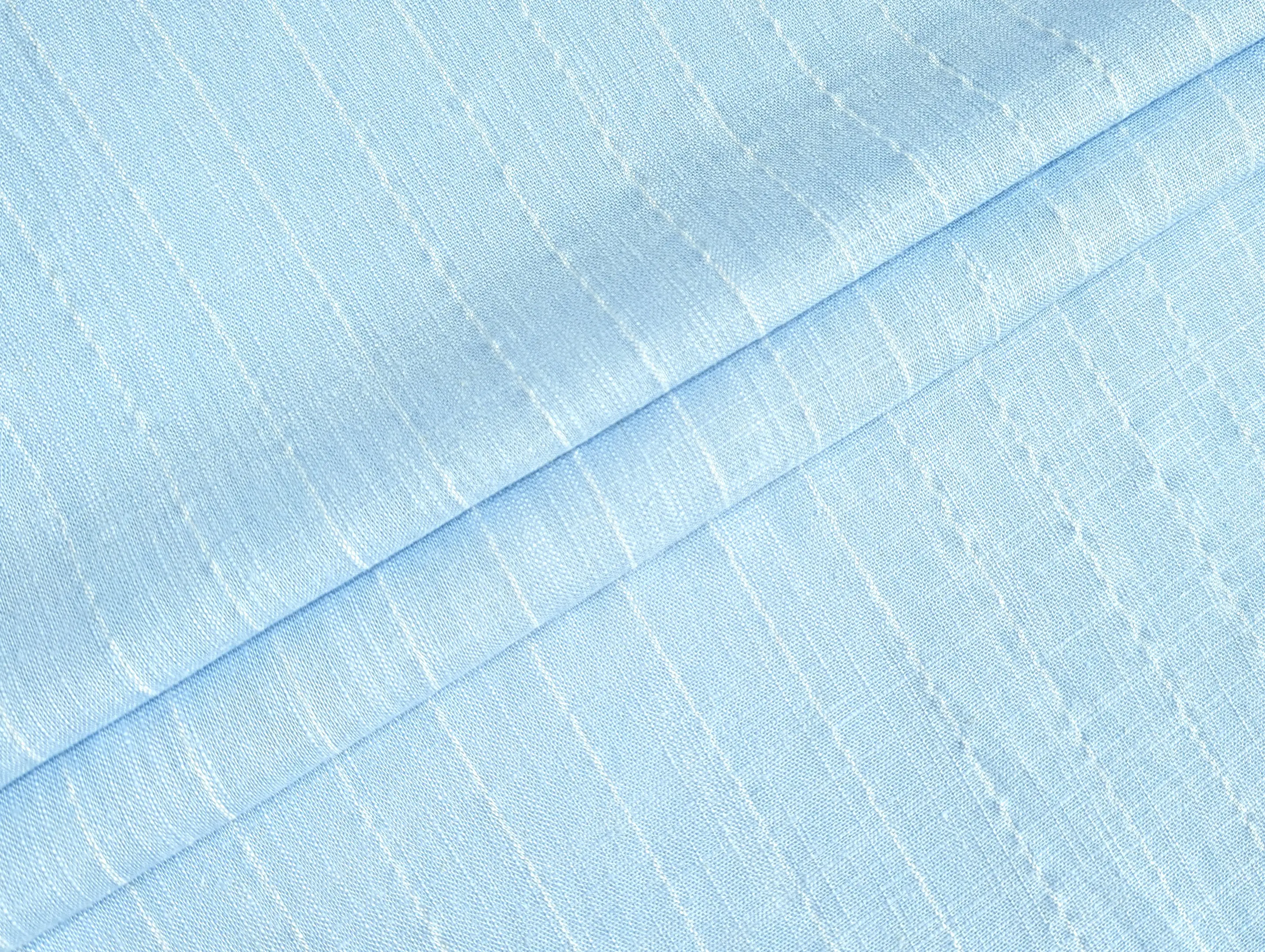 Лён вискоза слаб полоска 20 мм, голубой