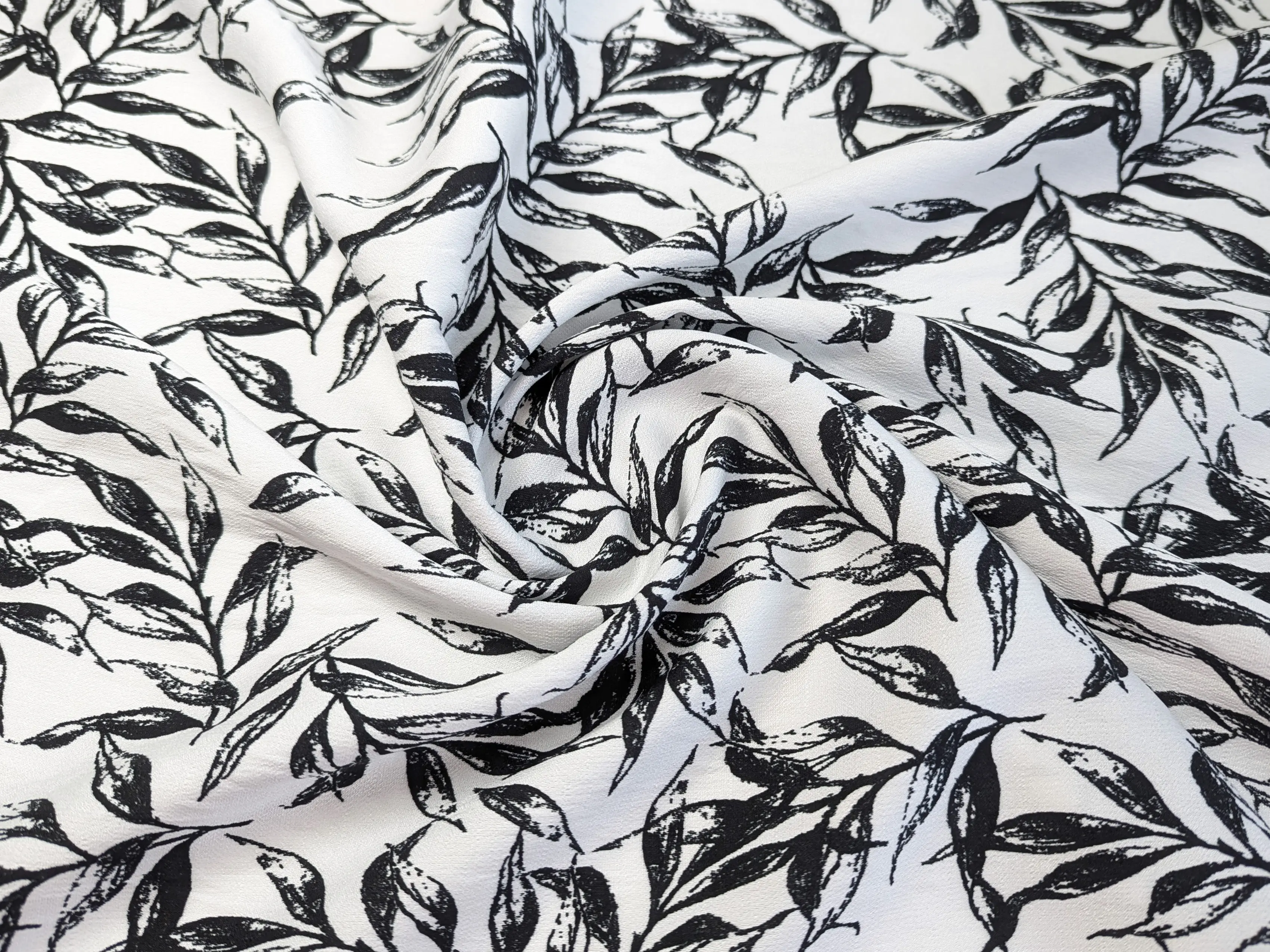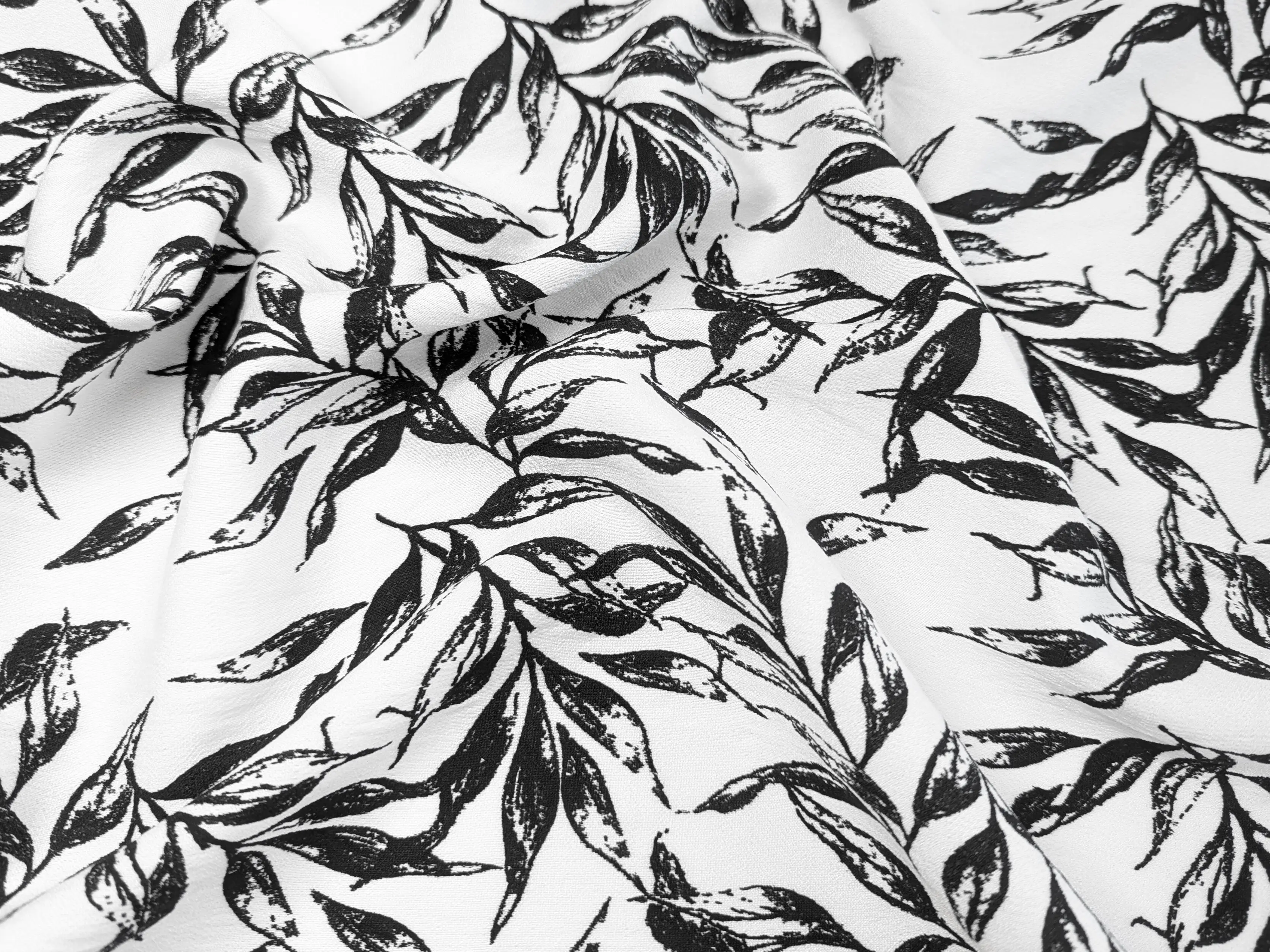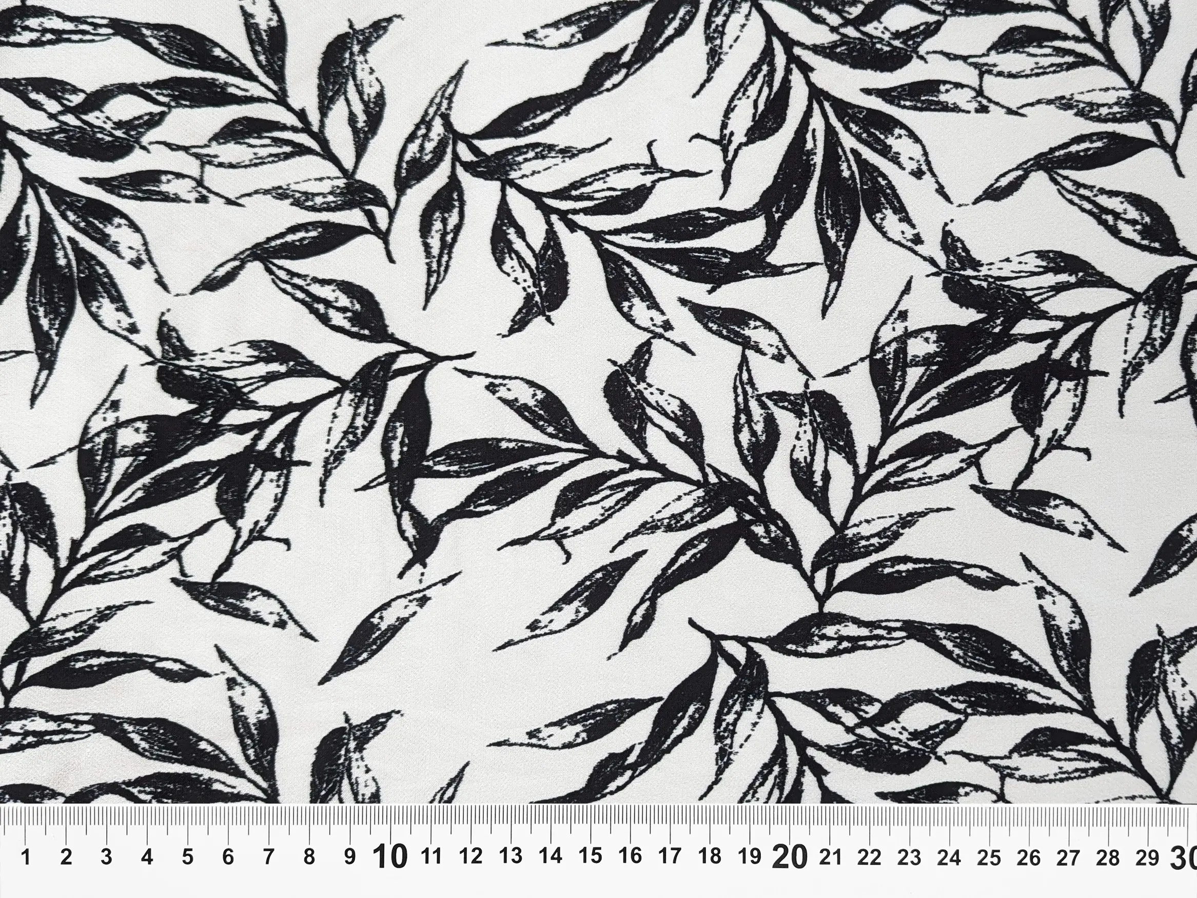 Льон бохо рисунок лиственный дуэт, черный на молочном