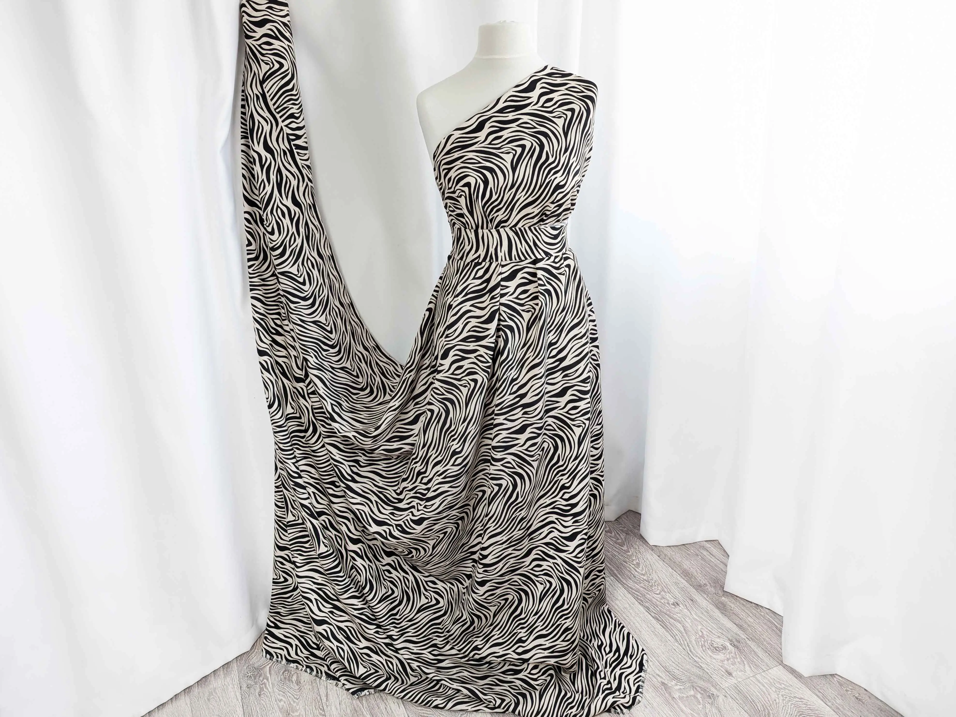 Льон бохо рисунок зебра, черный на бежевом
