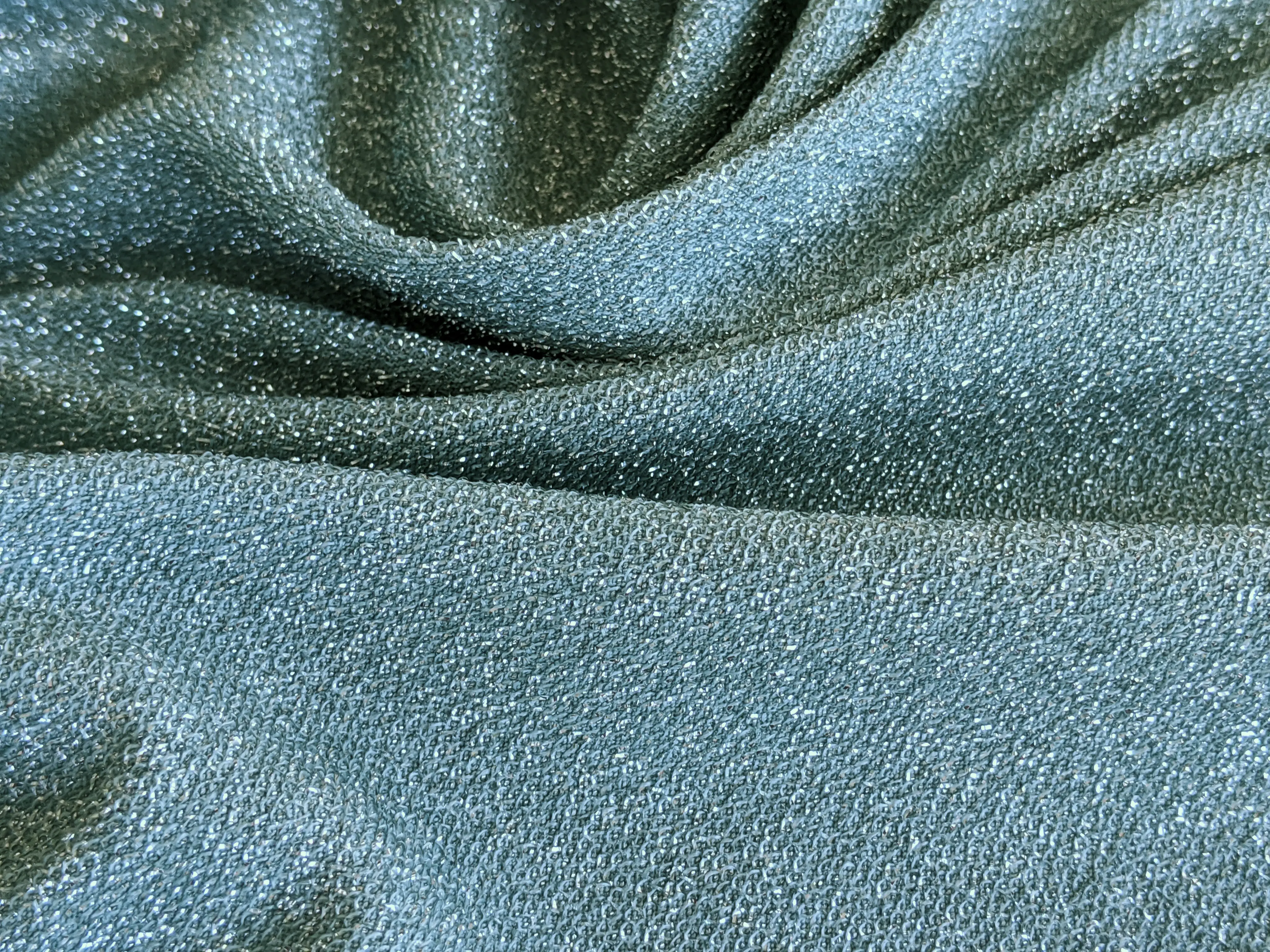 Трикотаж люрекс - это трикотажное полотно с метализированным блеском. Люрексовые нити вплетены в структуру полотна, при этом изнанка гладкая и ровная. Ткань очень приятная к телу, не колется и позволяет шить таким образом изделия без подкладки.