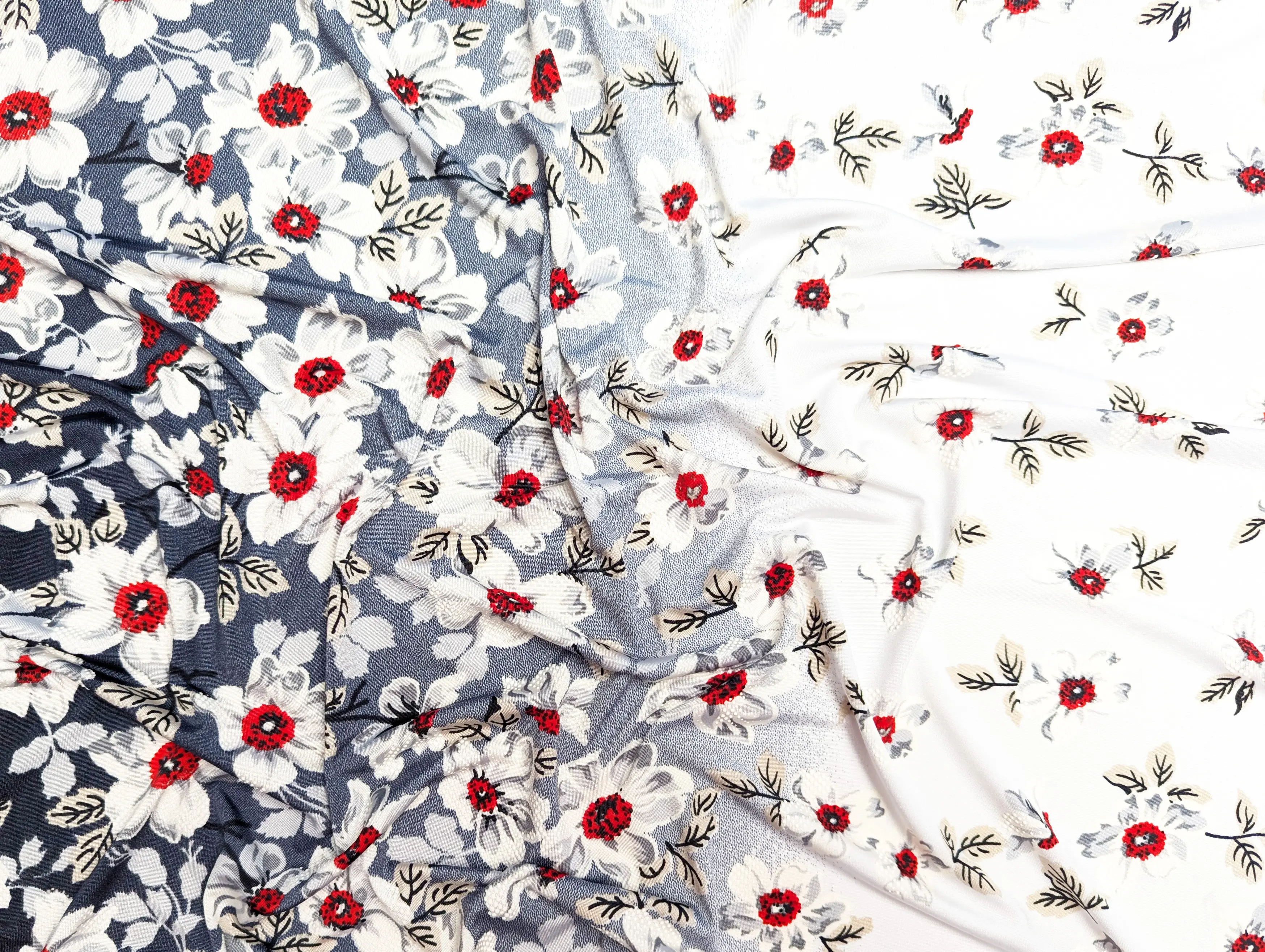 Масло лакр - тонкий, приятный на ощупь, скользящий, достаточно увесистый трикотаж. На лицевой стороне полотна на рисунок принта нанесен контур в виде мелких точек белого цвета, изнанка - ровная и гладкая. Трикотаж имеет приятный охлаждающий эффект, эластичный, хорошо тянется в обе стороны, не мнется, непрозрачный на теле, хорошо драпируется.