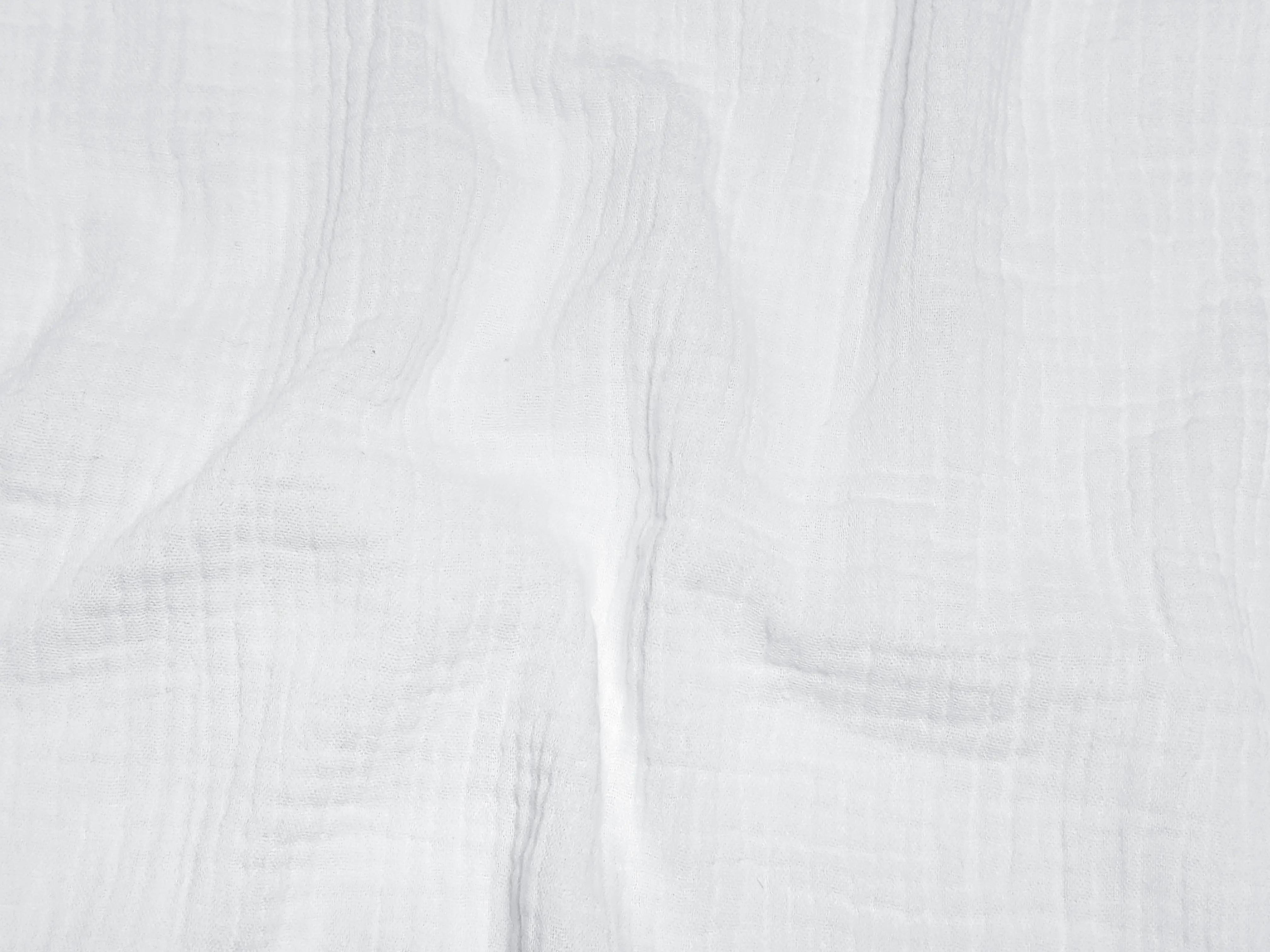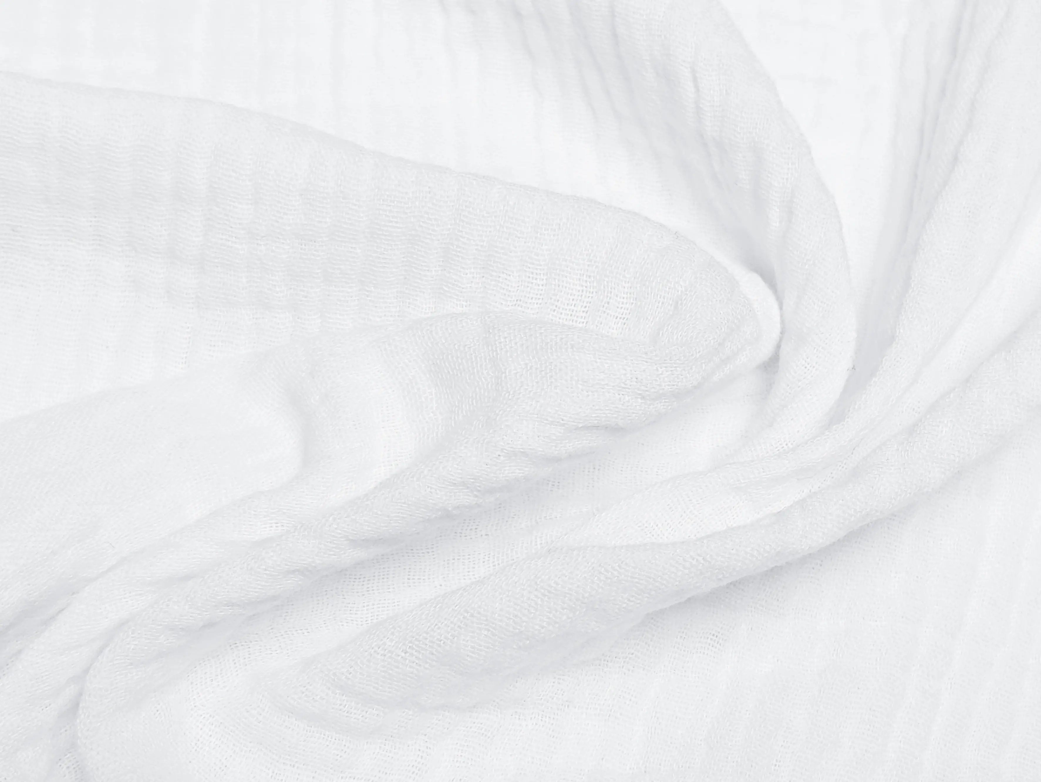 Муслин — это двухслойный хлопок с полотняным переплетением нитей. Полотно мягкое, лёгкое и приятное к телу. Его структура слегка жатая, с лёгким просветом, при этом плотная и износостойкая. Изделия из муслина комфортны в носке, не парят даже в жаркую погоду, почти невесомы и не требуют особого ухода — не сминаются и легко стираются.