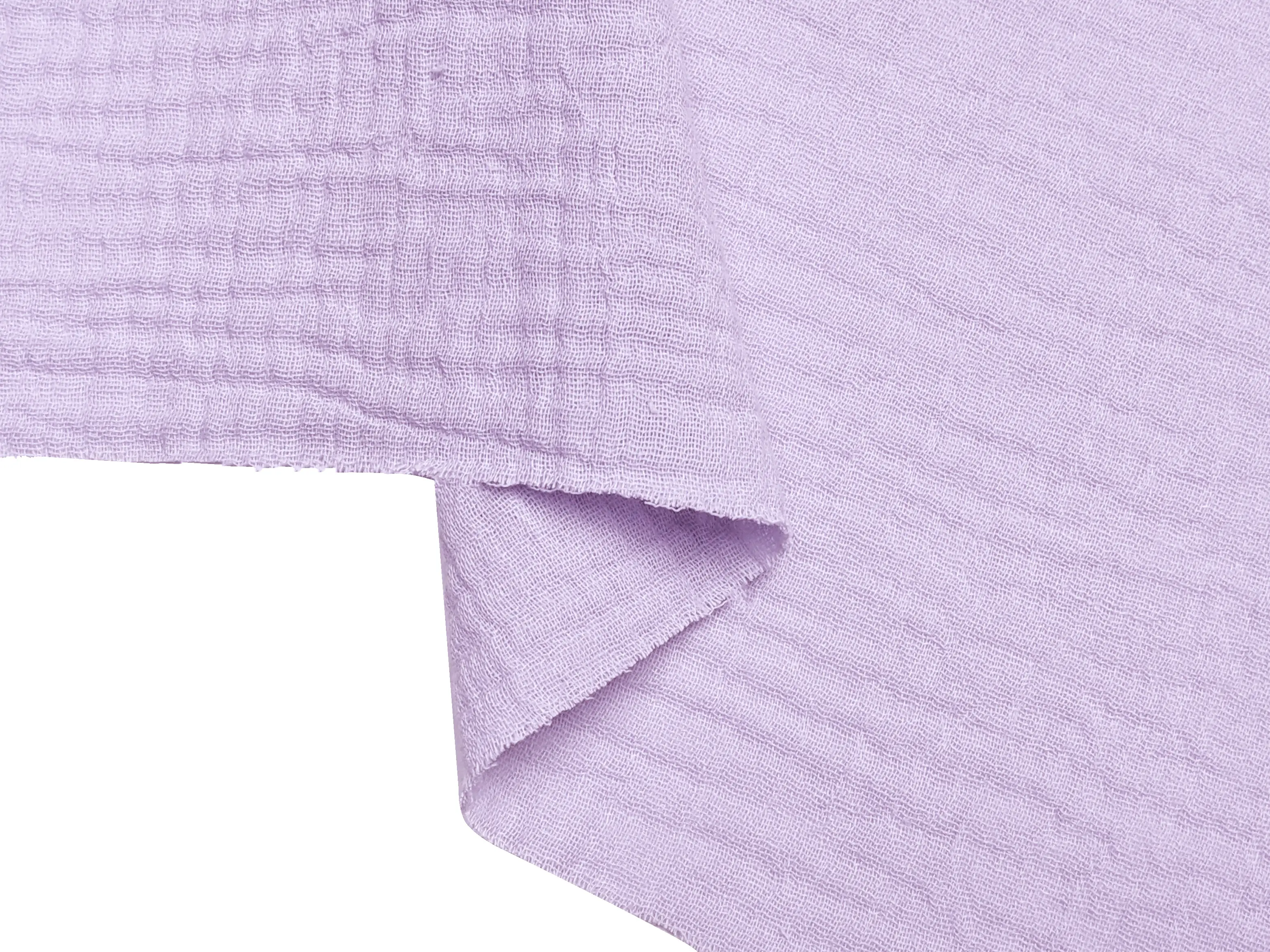 Муслин - это двухслойный хлопок с полотняным переплетением нитей. Полотно приятное к телу, мягкое и легкое. Структура полотна жатая, плотная, но имеет легкий просвет, изделия из него будут очень износостойкими и при этом легкие и комфортные. Абсолютно не парит в жаркую погоду, оно легкое и практически невесомое. Не сминается, не требует дополнительного ухода.