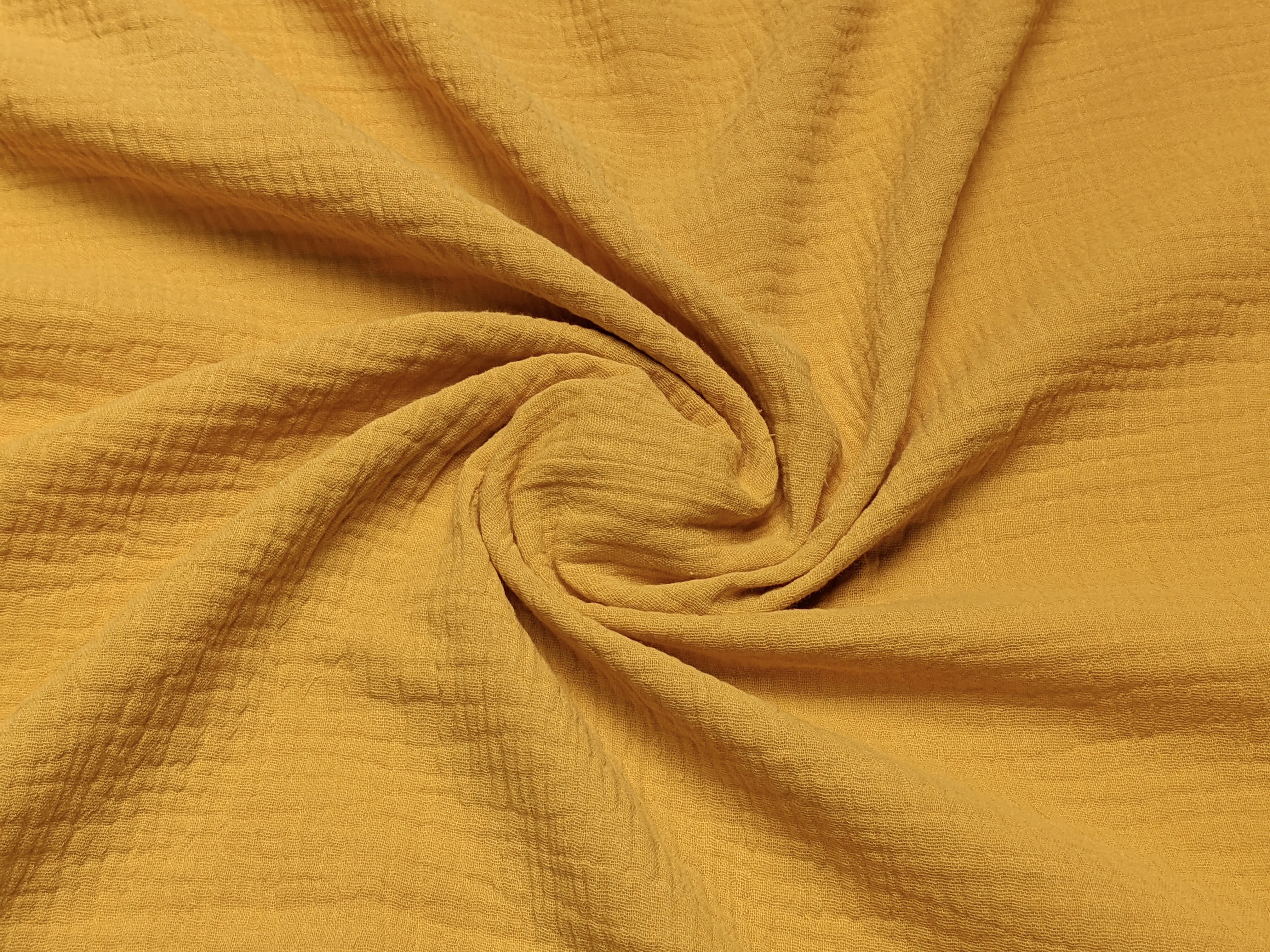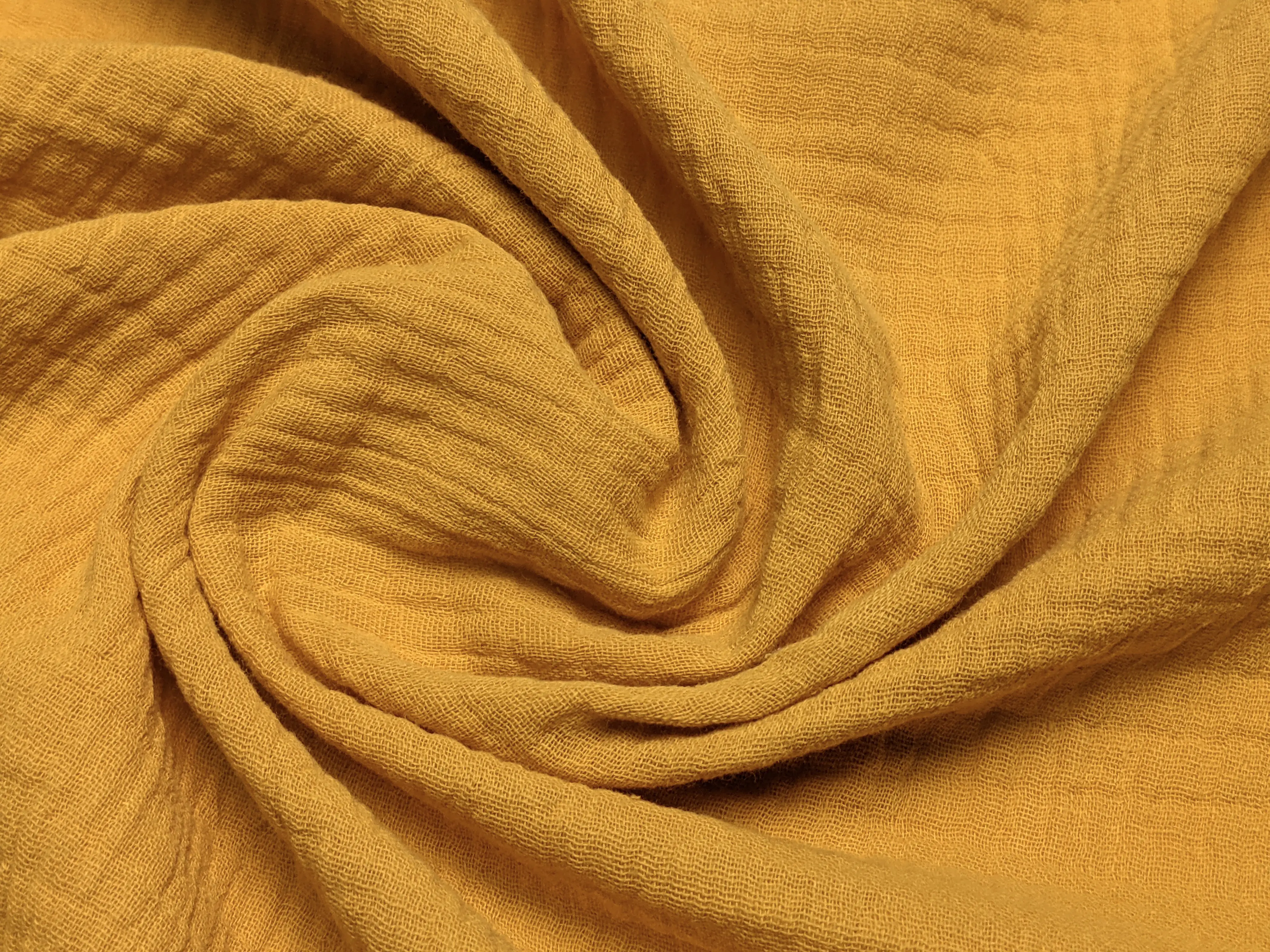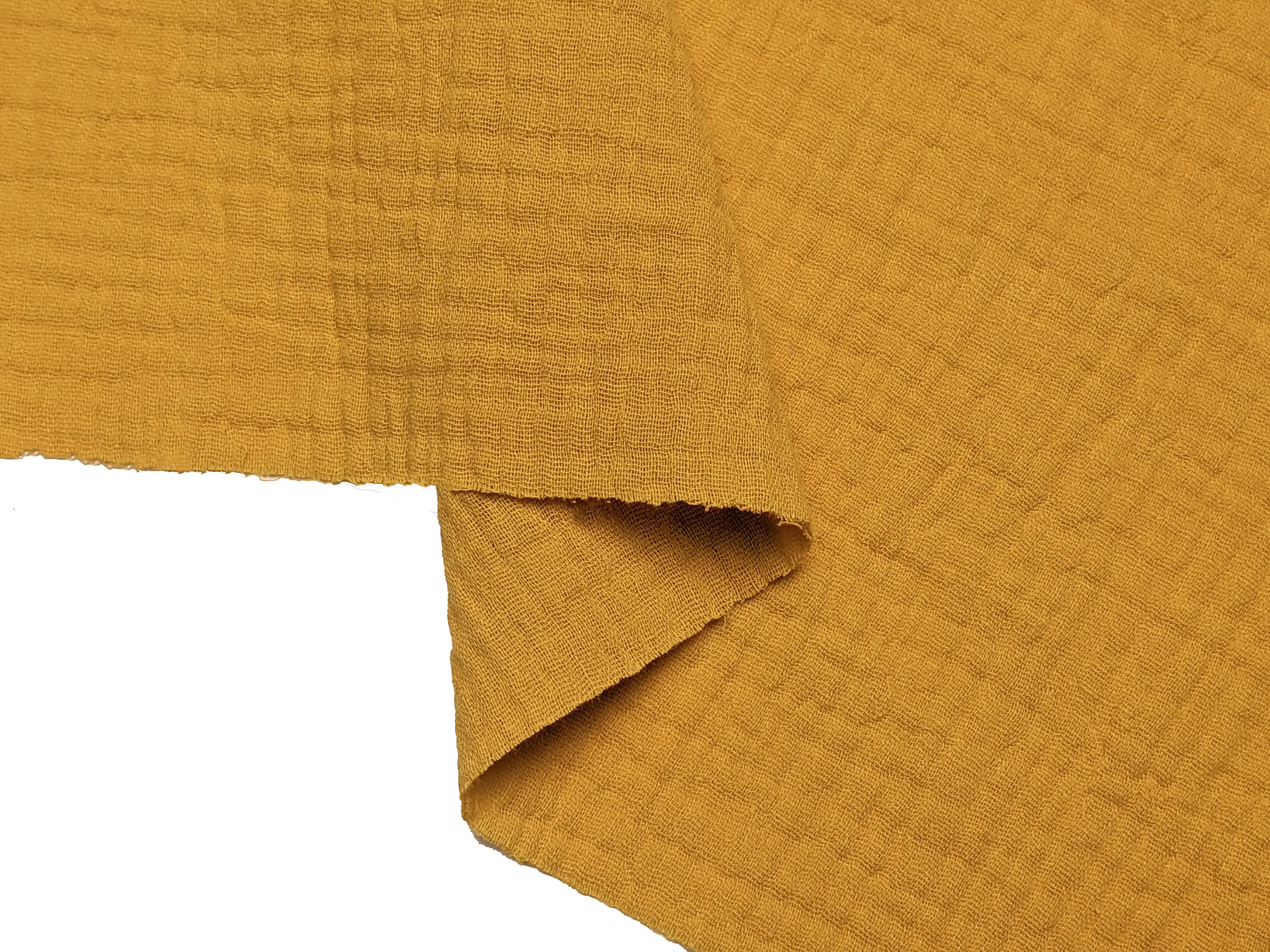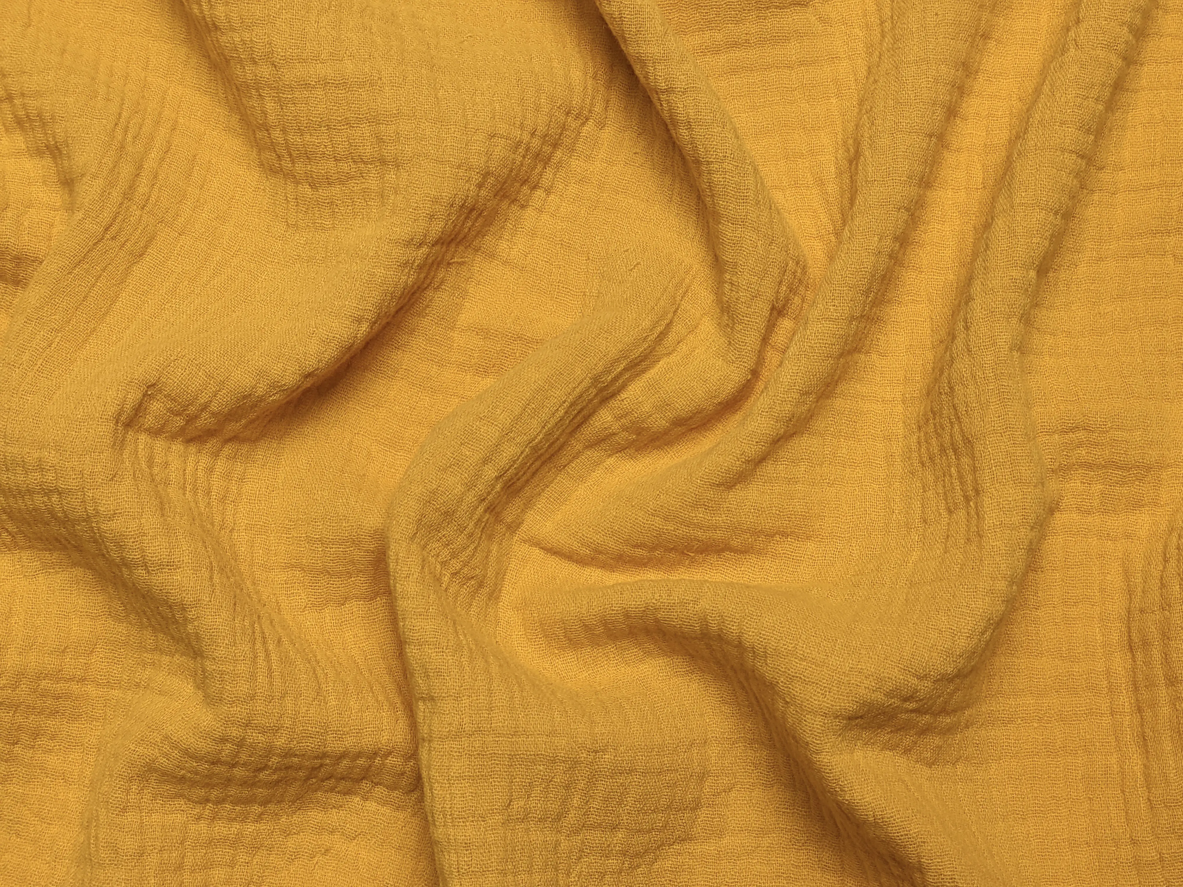 Муслин - это двухслойный хлопок с полотняным переплетением нитей. Полотно приятное к телу, мягкое и легкое. Структура полотна жатая, плотная, но имеет легкий просвет, изделия из него будут очень износостойкими и при этом легкие и комфортные. Абсолютно не парит в жаркую погоду, оно легкое и практически невесомое. Не сминается, не требует дополнительного ухода.
