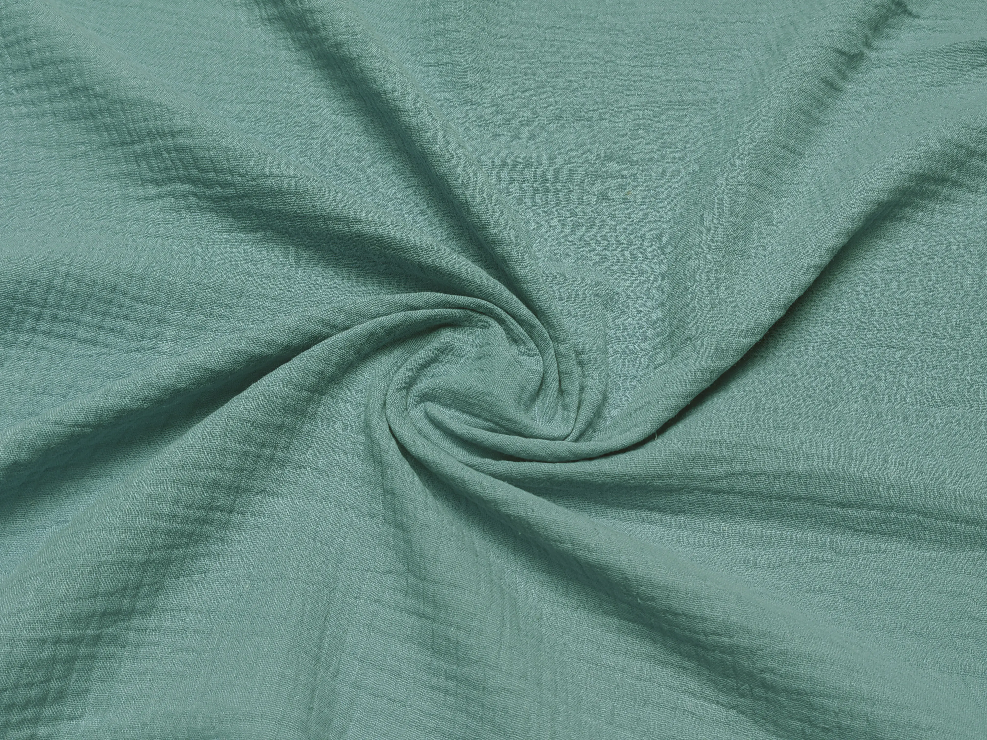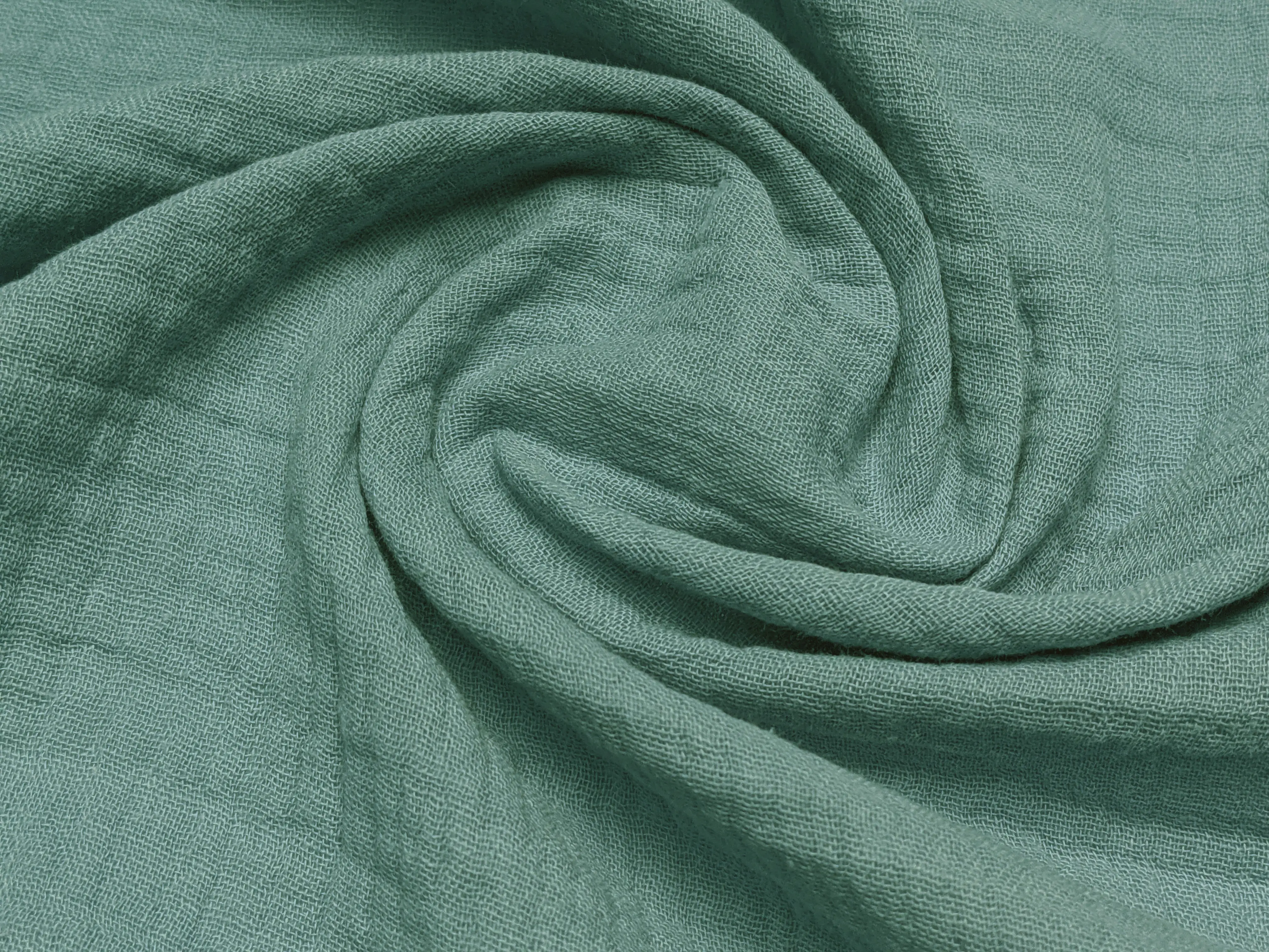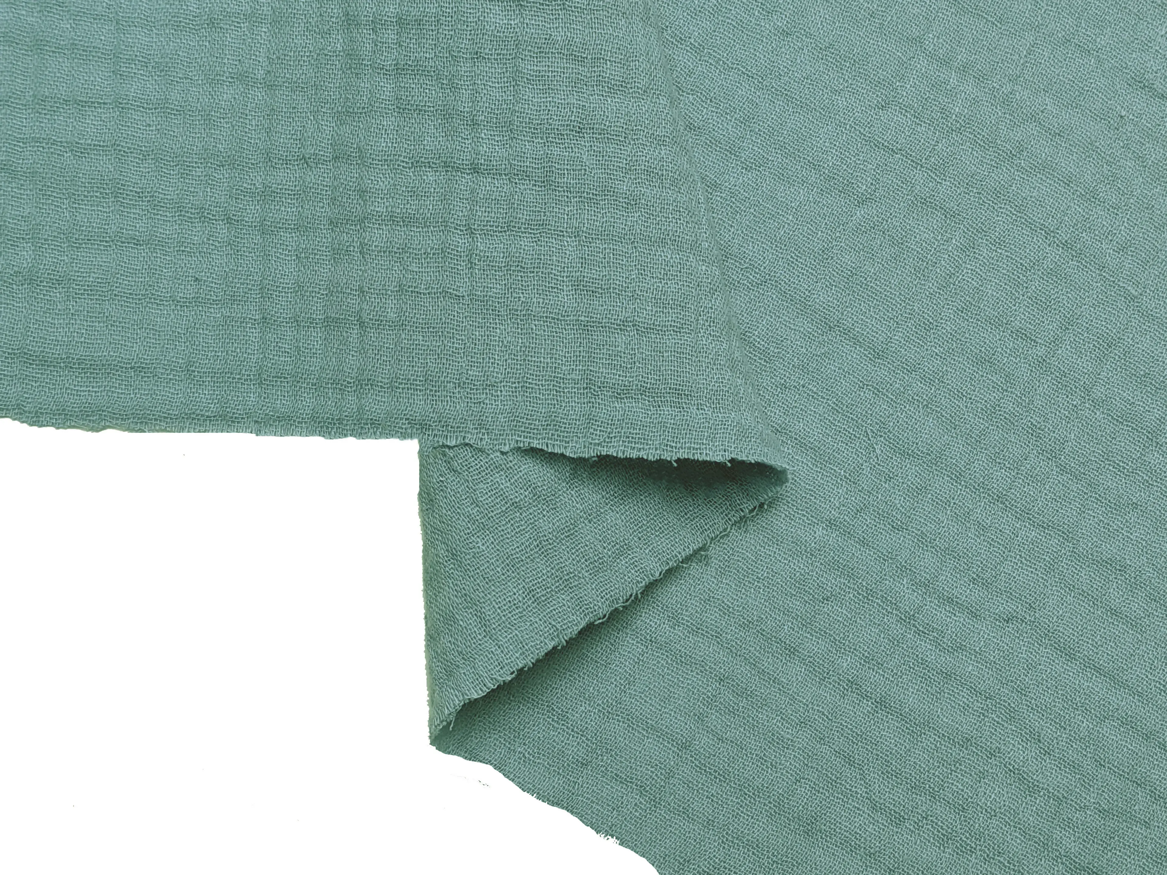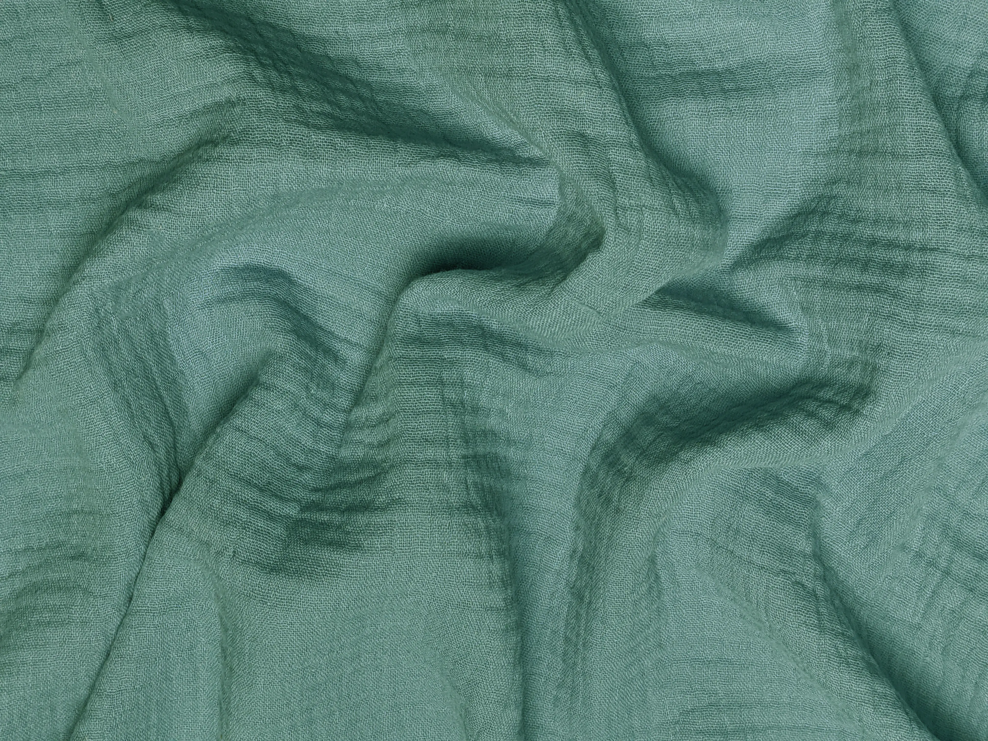 Муслин - это двухслойный хлопок с полотняным переплетением нитей. Полотно приятное к телу, мягкое и легкое. Структура полотна жатая, плотная, но имеет легкий просвет, изделия из него будут очень износостойкими и при этом легкие и комфортные. Абсолютно не парит в жаркую погоду, оно легкое и практически невесомое. Не сминается, не требует дополнительного ухода.