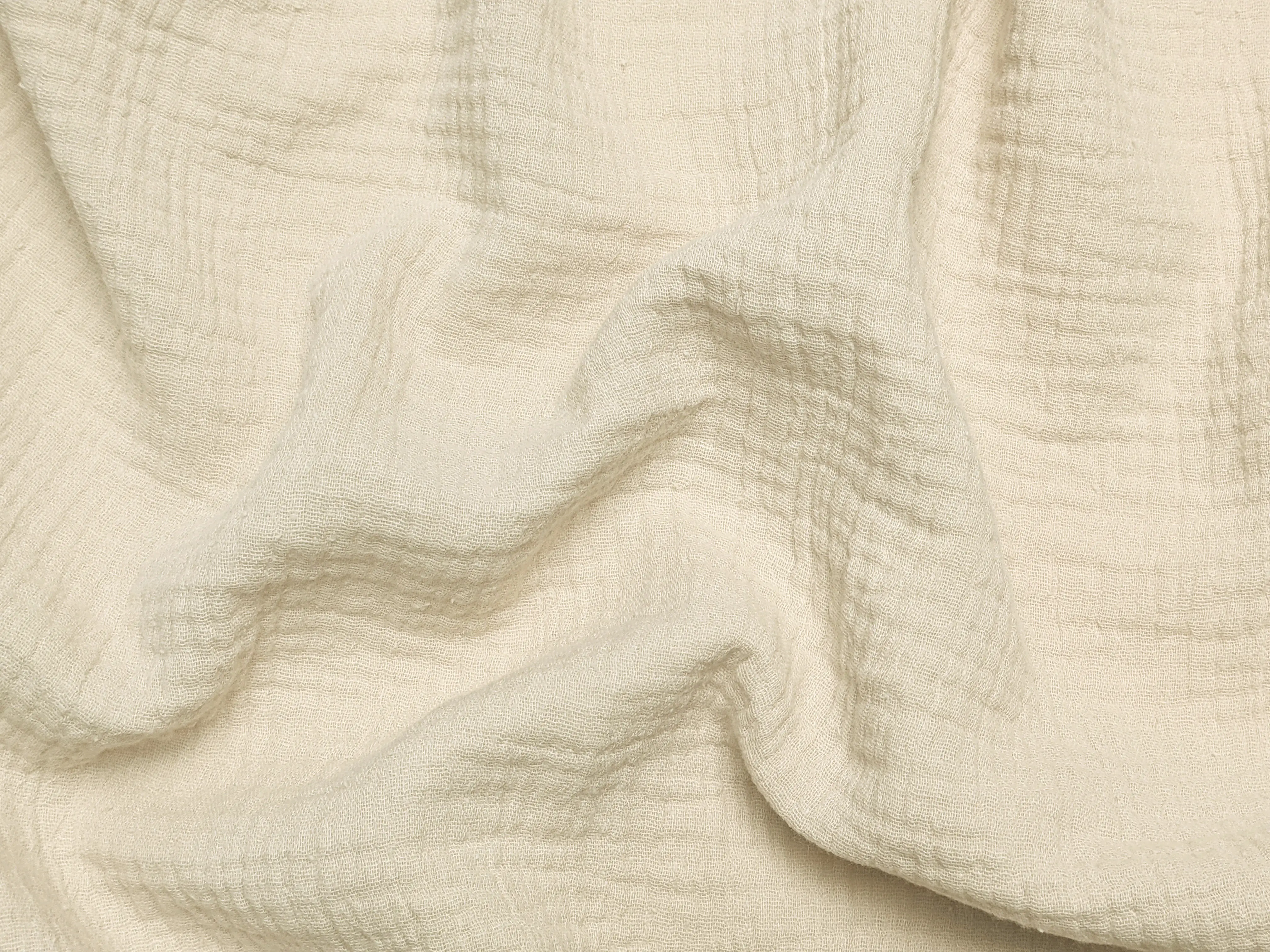 Муслин - это двухслойный хлопок с полотняным переплетением нитей. Полотно приятное к телу, мягкое и легкое. Структура полотна жатая, плотная, но имеет легкий просвет, изделия из него будут очень износостойкими и при этом легкие и комфортные. Абсолютно не парит в жаркую погоду, оно легкое и практически невесомое. Не сминается, не требует дополнительного ухода.