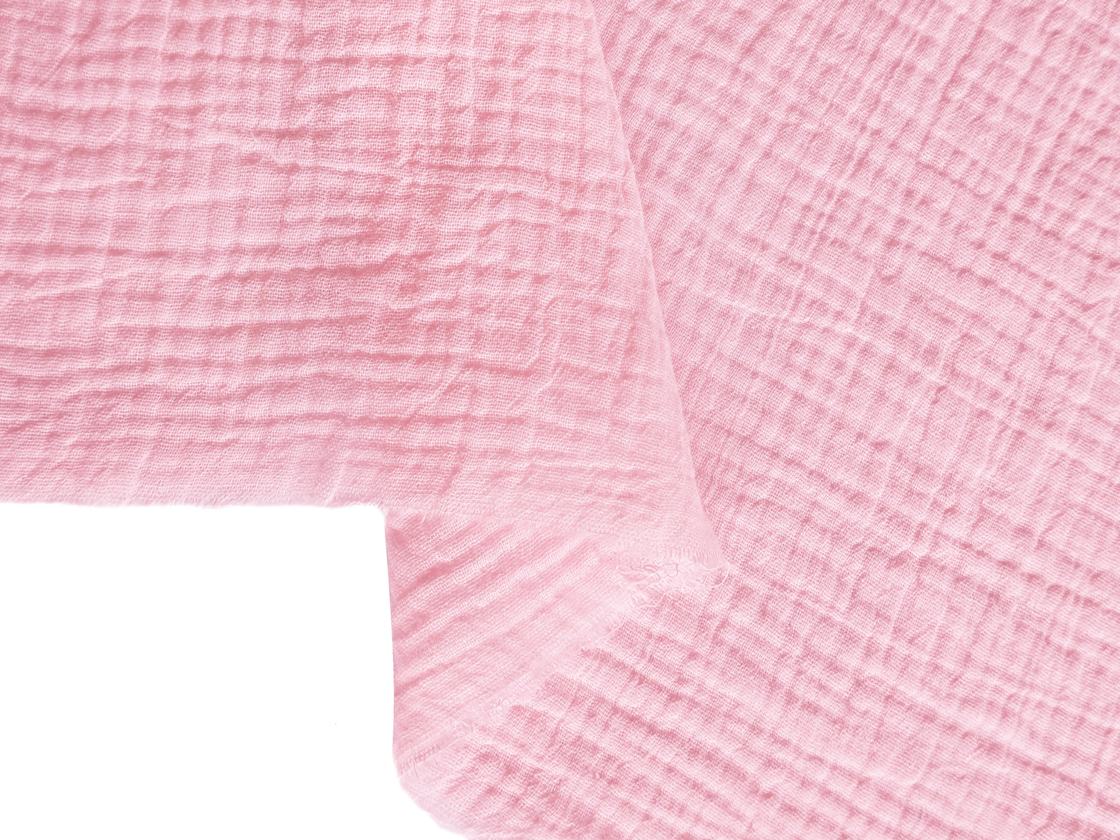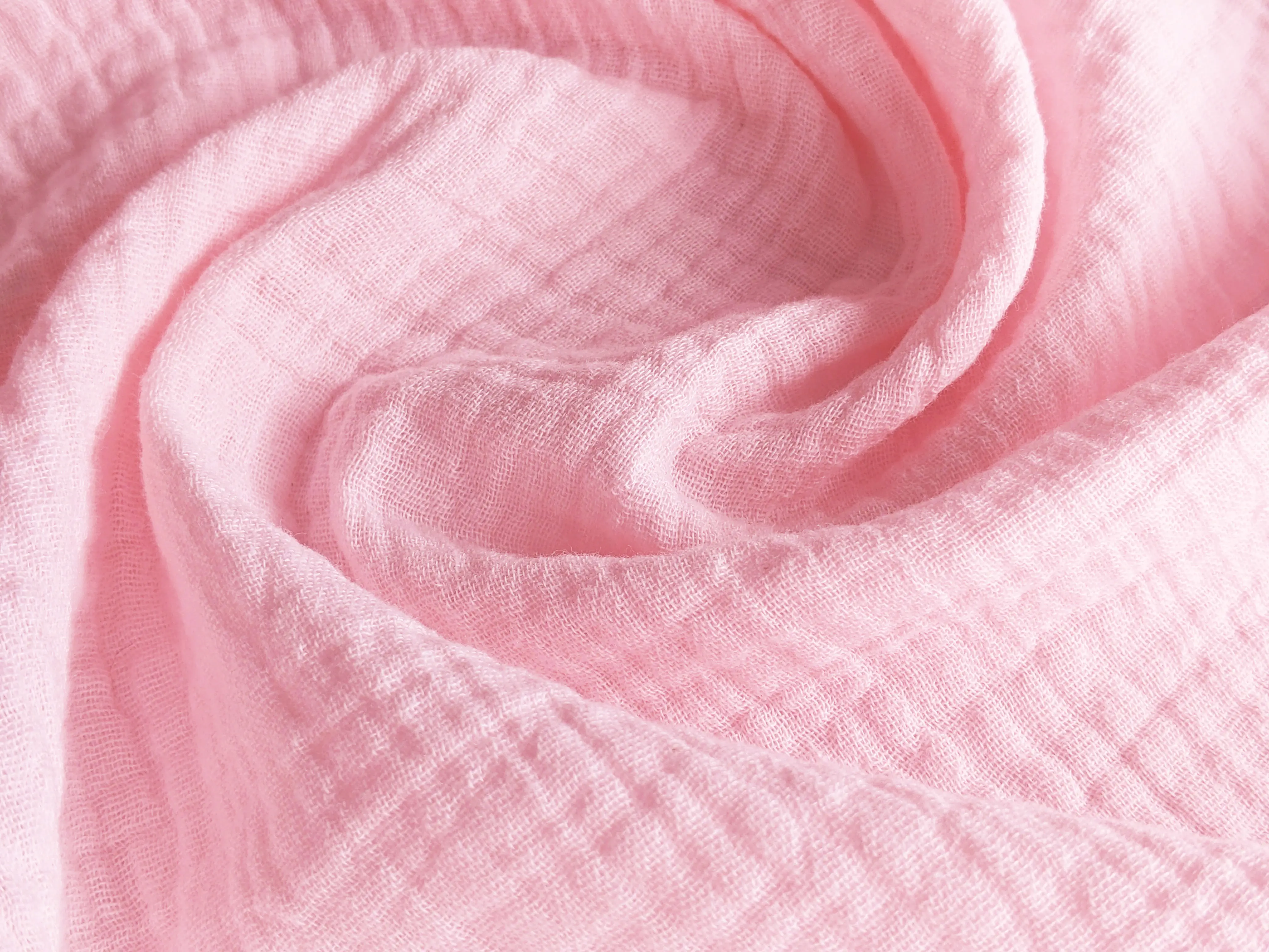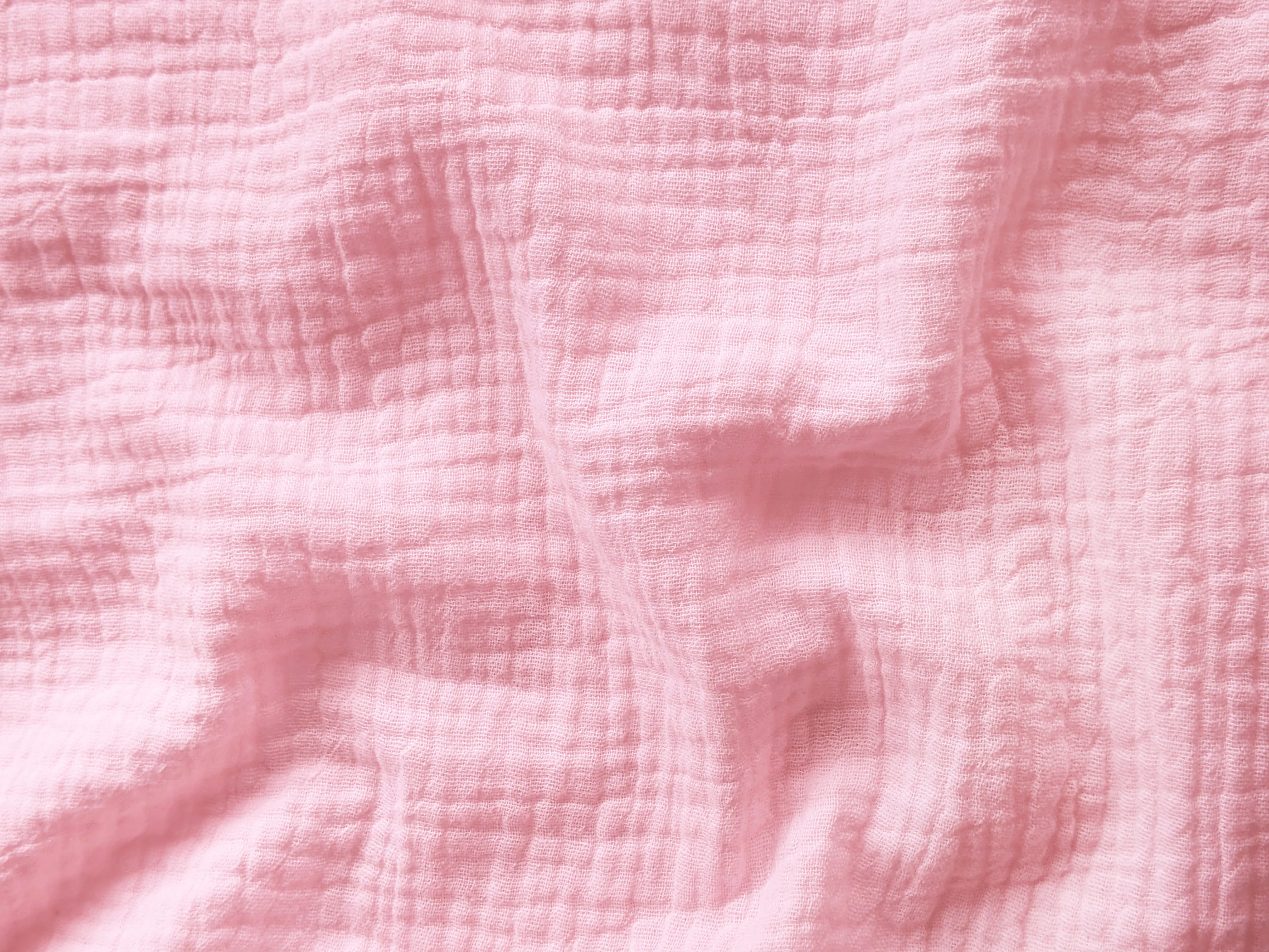 Муслин - это двухслойный хлопок с полотняным переплетением нитей. Полотно приятное к телу, мягкое и легкое. Структура полотна жатая, плотная, но имеет легкий просвет, изделия из него будут очень износостойкими и при этом легкие и комфортные. Абсолютно не парит в жаркую погоду, оно легкое и практически невесомое. Не сминается, не требует дополнительного ухода.