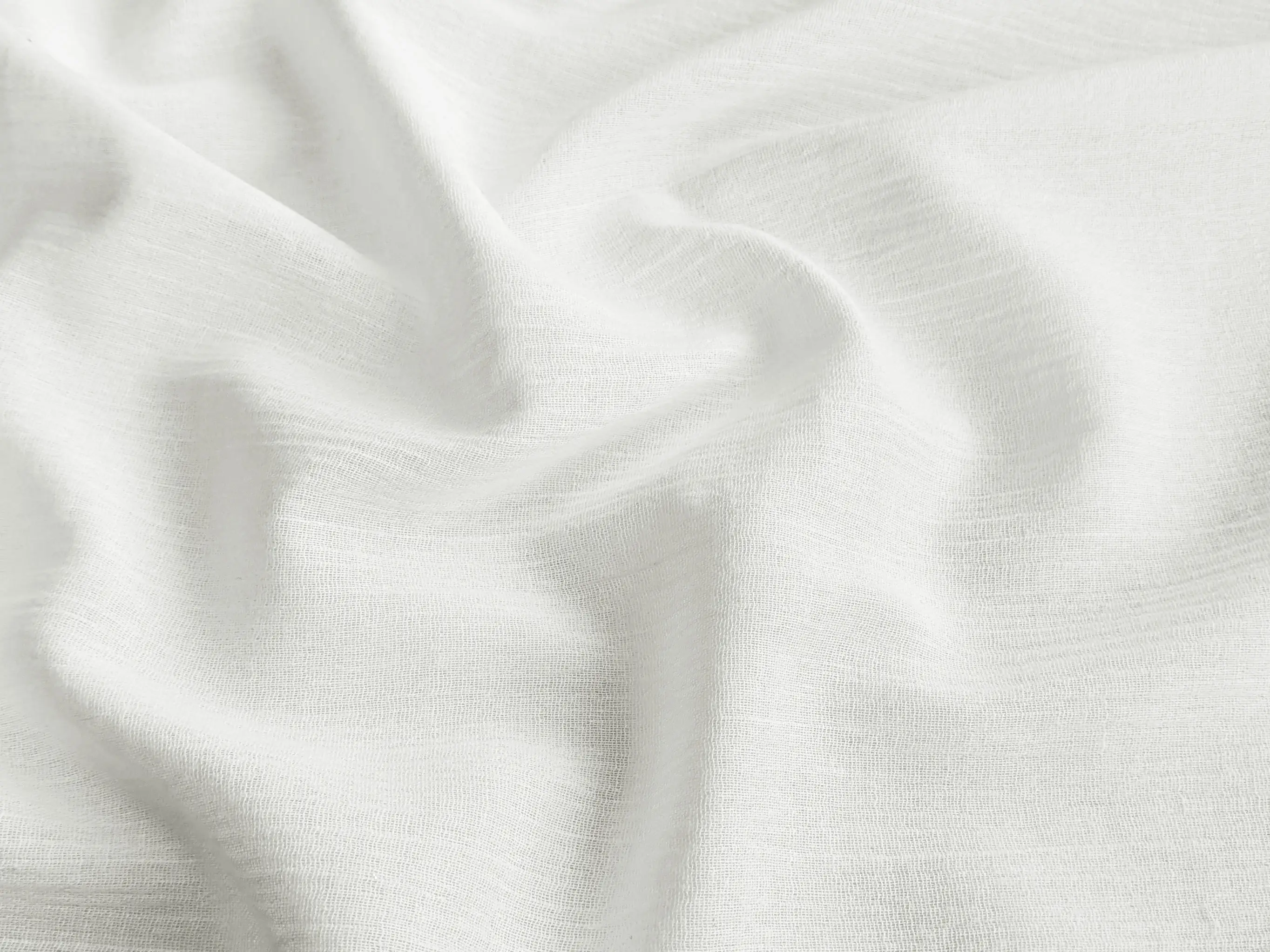 Муслин однослойный - хлопковый материал с полотняным переплетением нитей, которое придает ткани воздушность и невесомость. Полотно тонкое и легкое, имеет особую поверхность с жатым эффектом. Коттон хорошо пропускает воздух, не парит, гигроскопичный. Ткань имеет легкую механическую эластичность за счет жатой структуры, при драпировке принимает воздушную форму, просвещается, поэтому для некоторых изделий требуется подкладочная ткань.