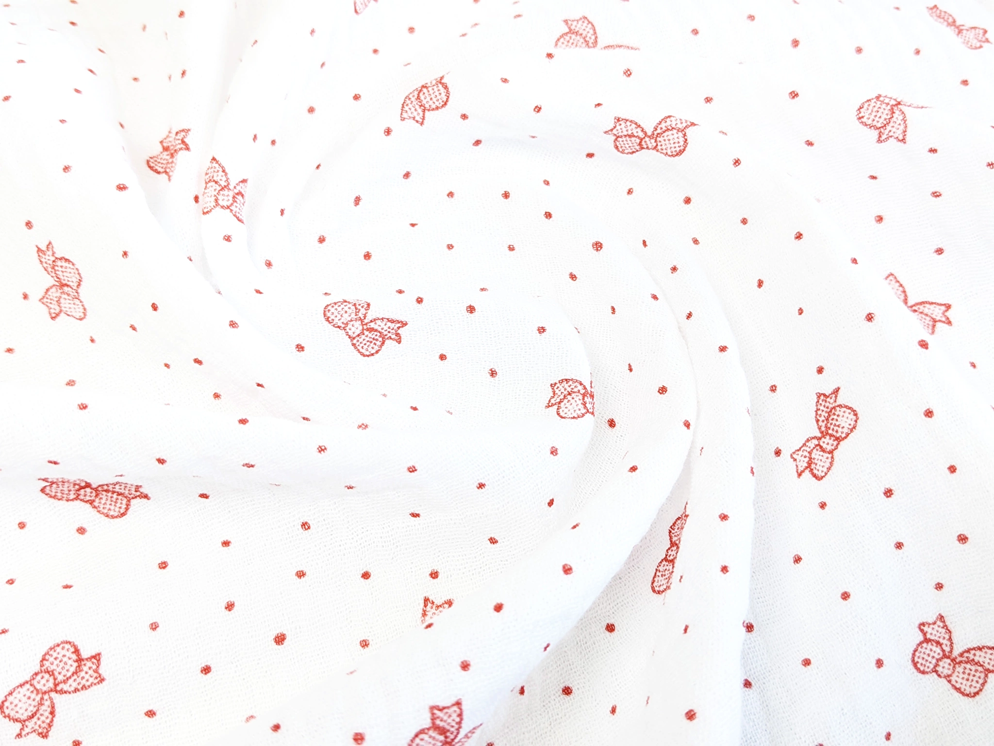 Муслин рисунок бантики, молочный (м62, 2211040A, д28 цв1)