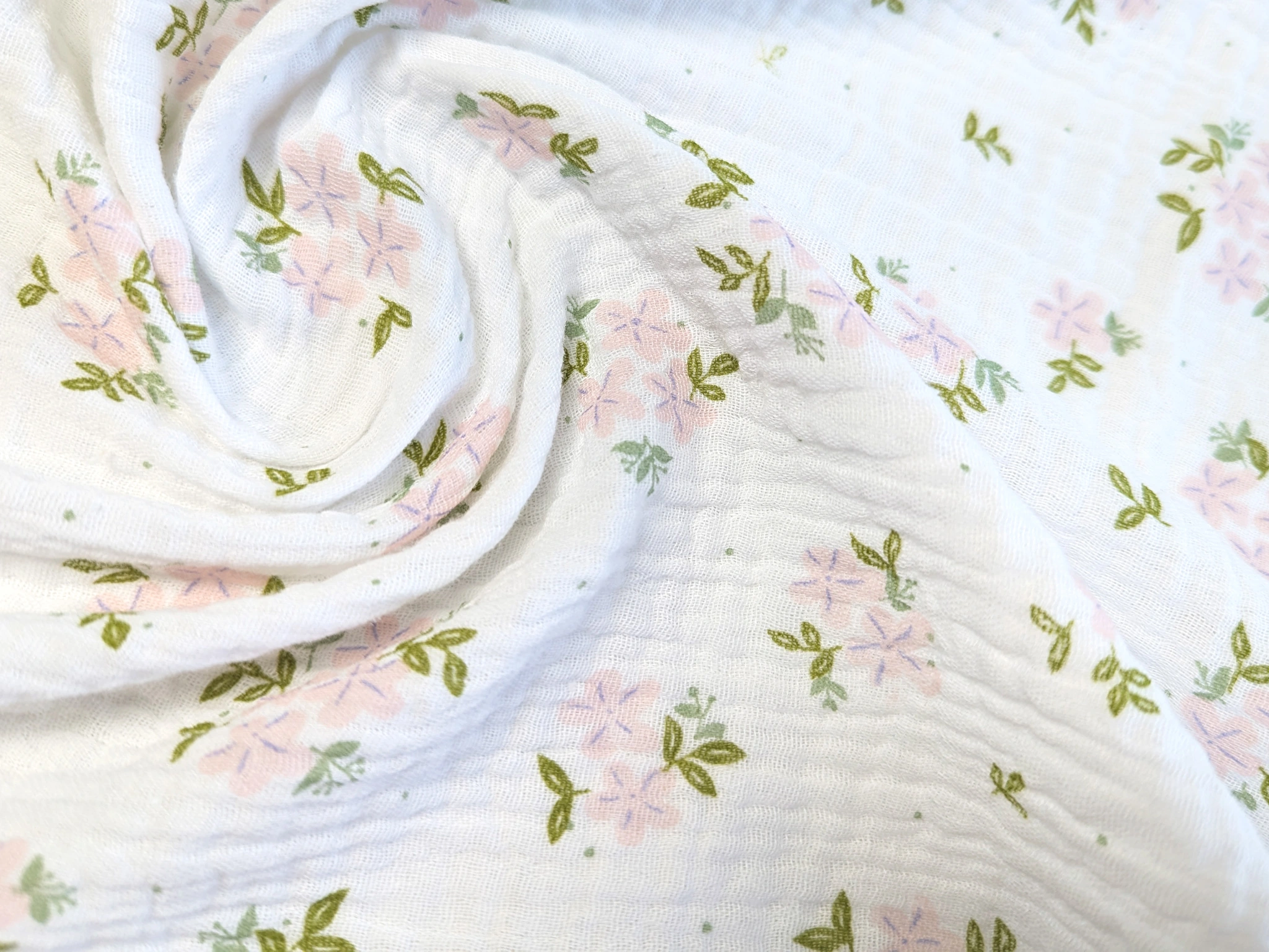 Муслин - это двухслойный хлопок с полотняным переплетением нитей. Полотно приятное к телу, мягкое и легкое. Структура полотна жатая, плотная, но имеет легкий просвет, изделия из него будут очень износостойкими и при этом легкие и комфортные. Абсолютно не парит в жаркую погоду, оно легкое и практически невесомое. Не сминается, не требует дополнительного ухода.