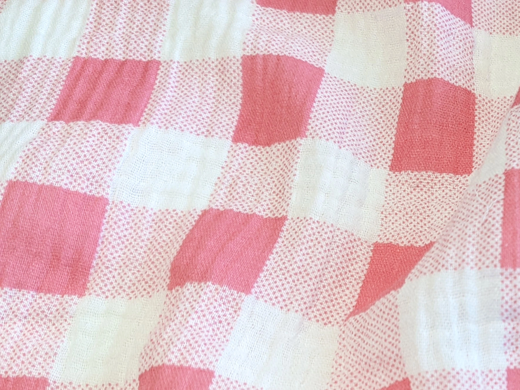 Муслин рисунок клетка, персиковый на молочном