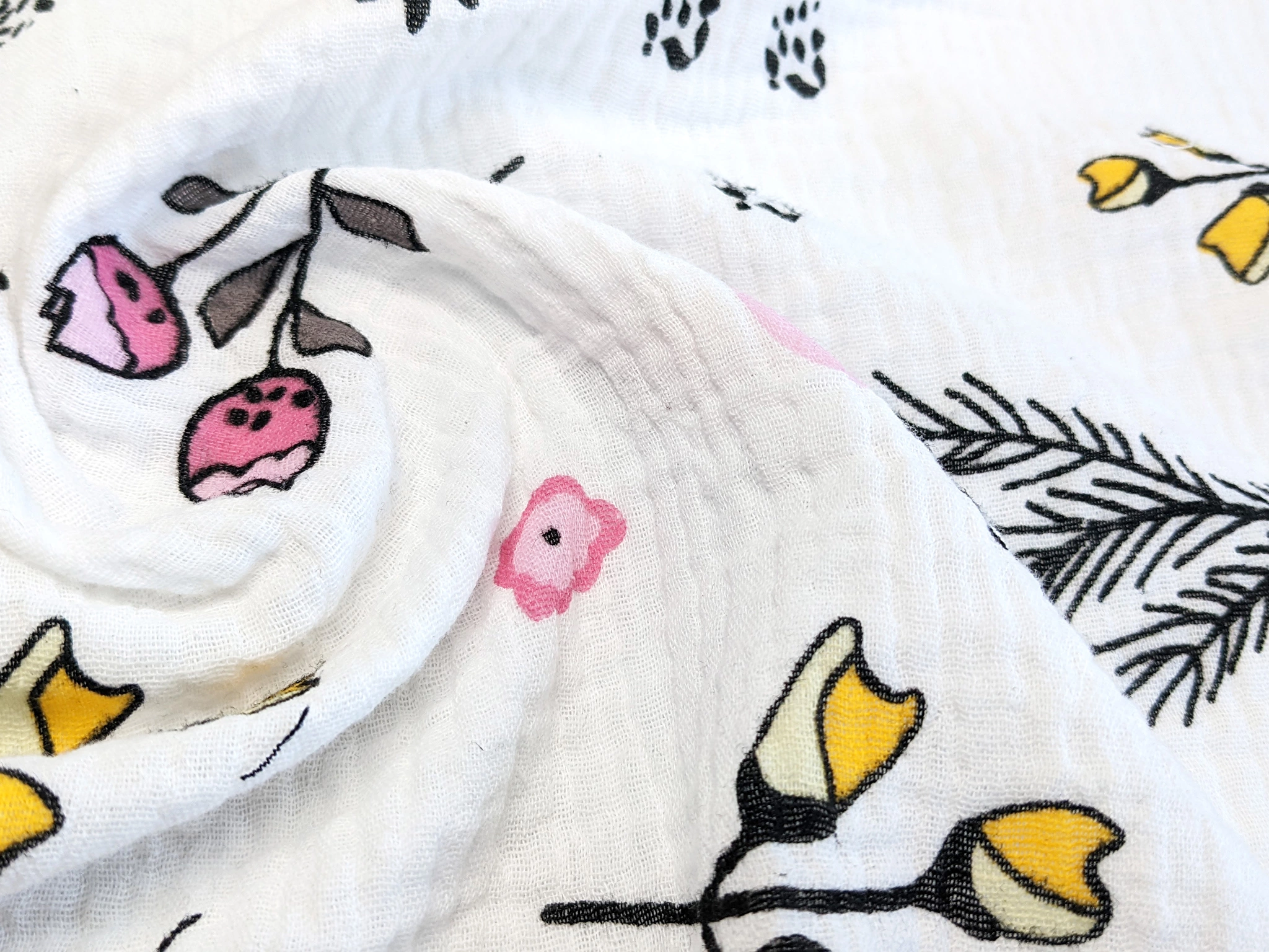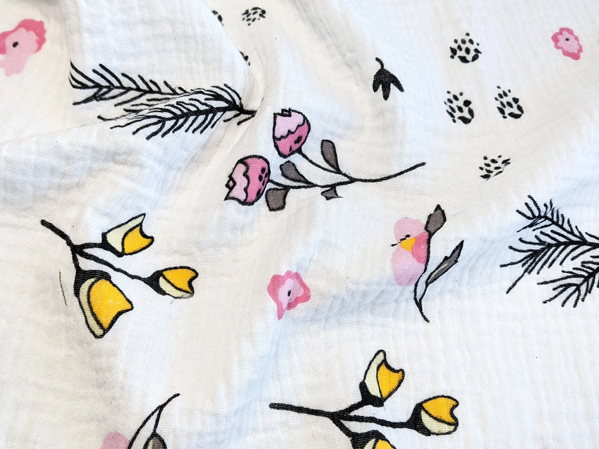 Муслин рисунок летняя полянка, молочный