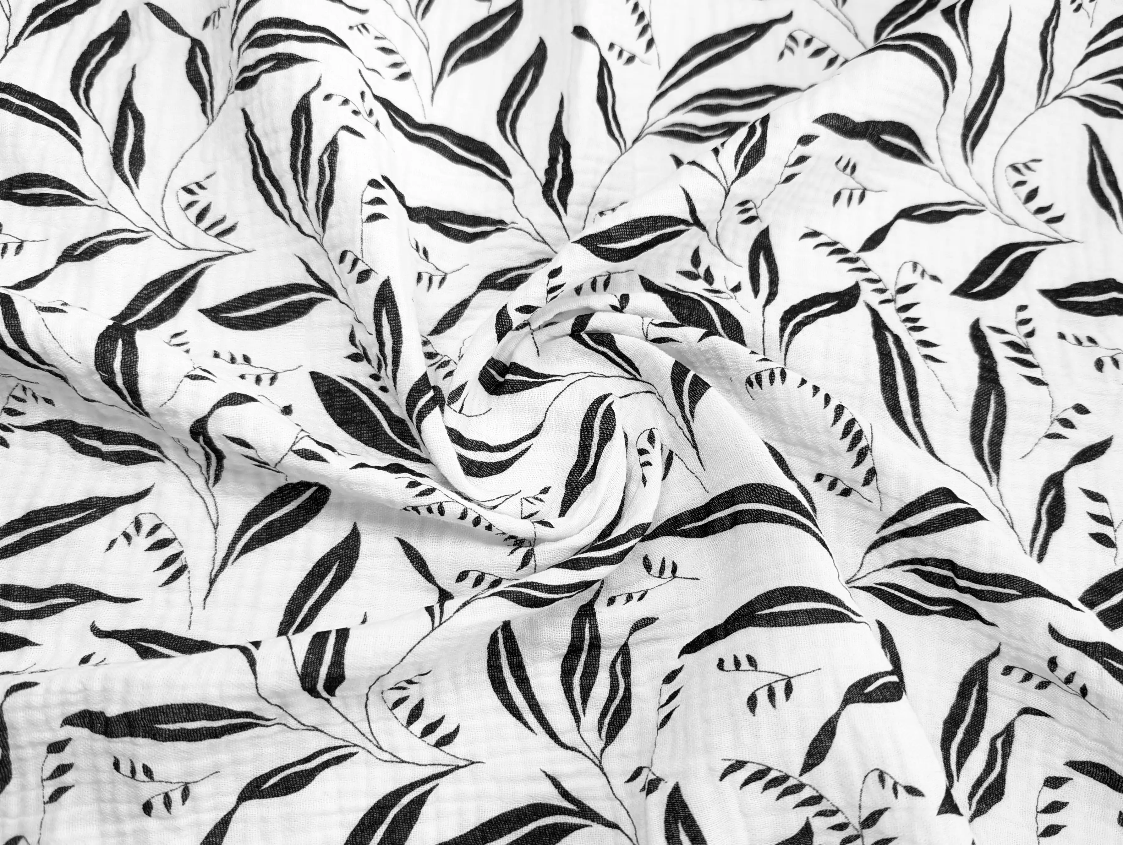 Муслин - это двухслойный хлопок с полотняным переплетением нитей. Полотно приятное к телу, мягкое и легкое. Структура полотна жатая, плотная, но имеет легкий просвет, изделия из него будут очень износостойкими и при этом легкие и комфортные. Абсолютно не парит в жаркую погоду, оно легкое и практически невесомое. Не сминается, не требует дополнительного ухода.