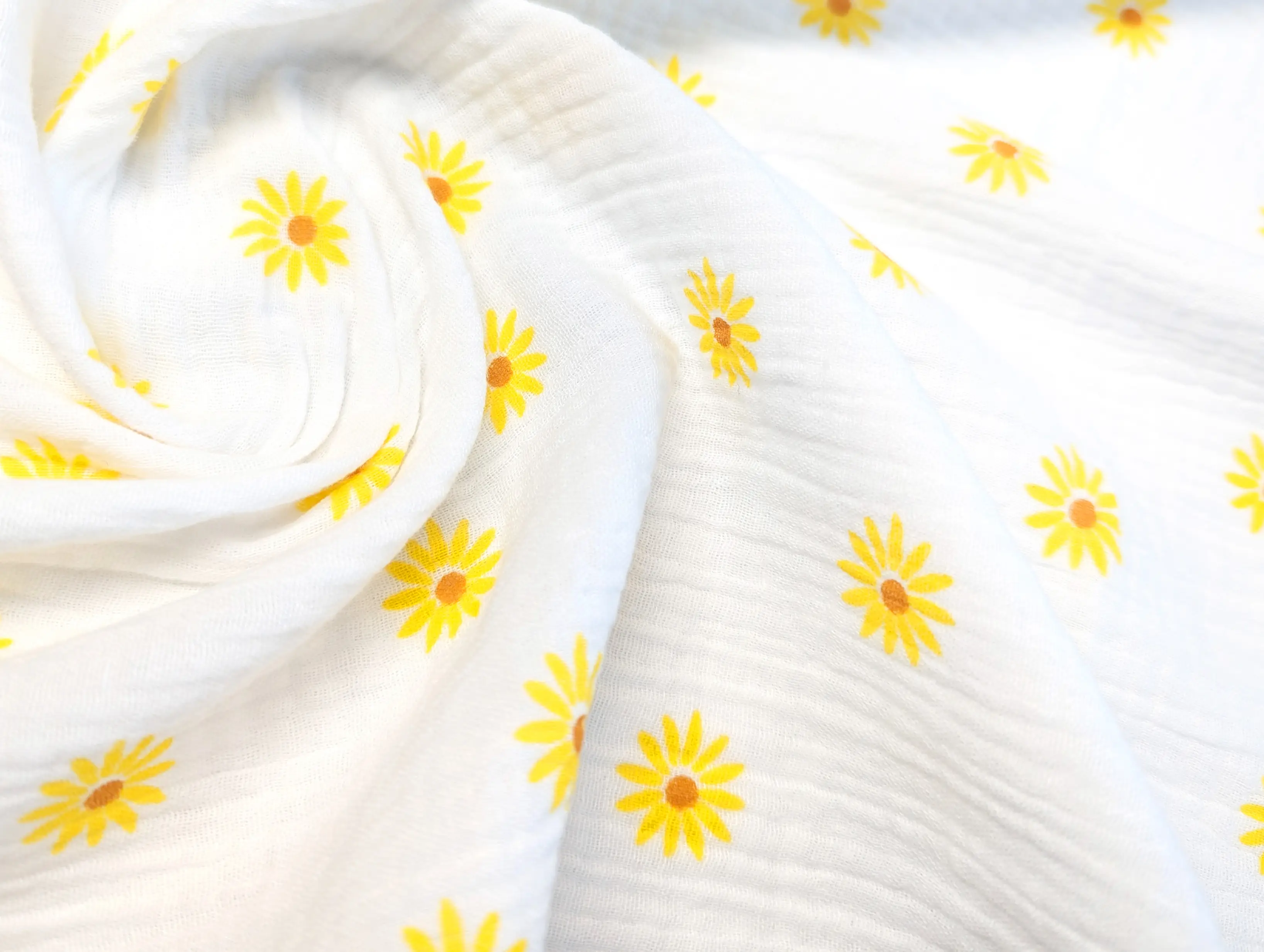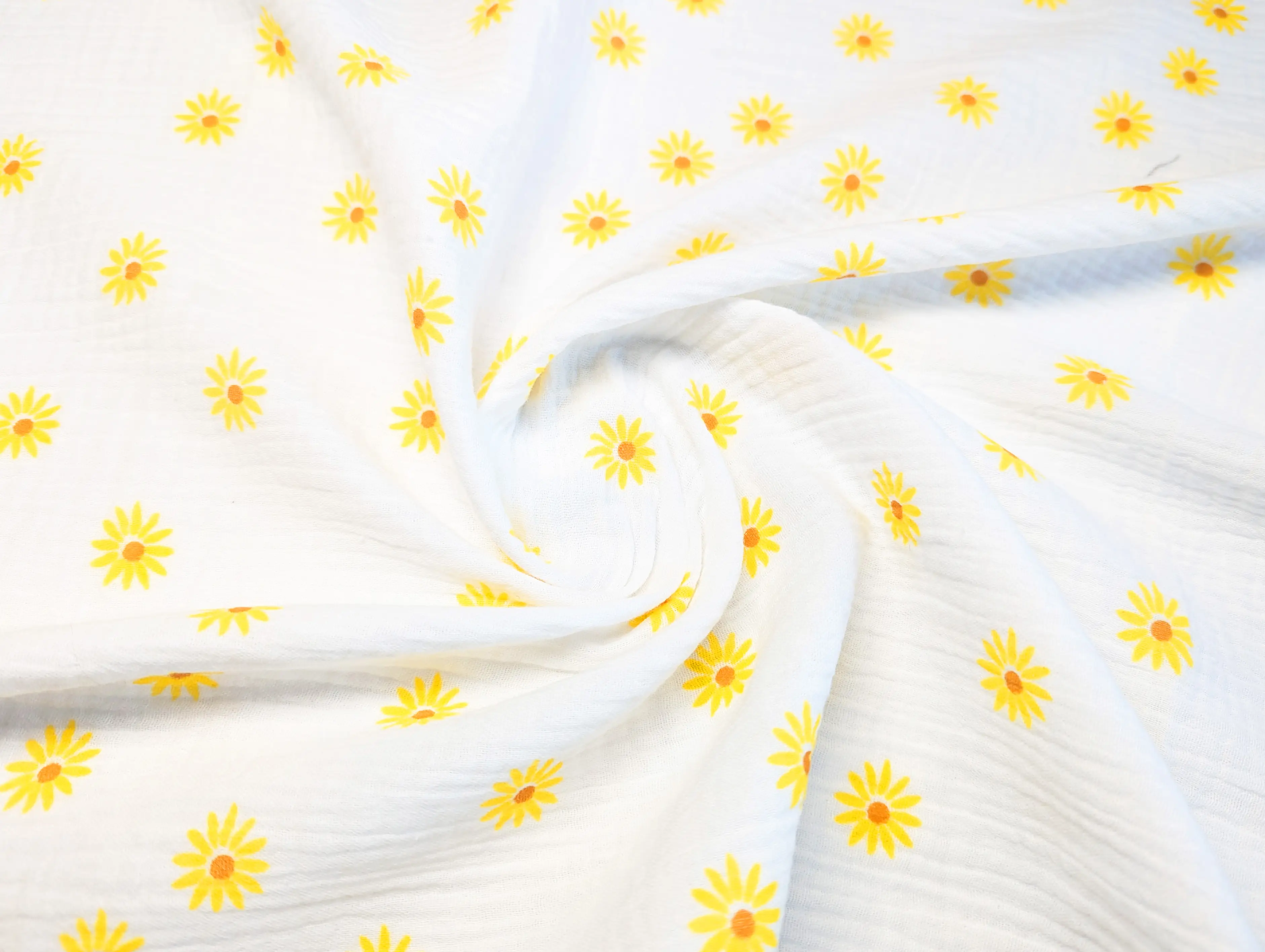 Муслин рисунок ромашка, молочный (отрез 2,7 м)