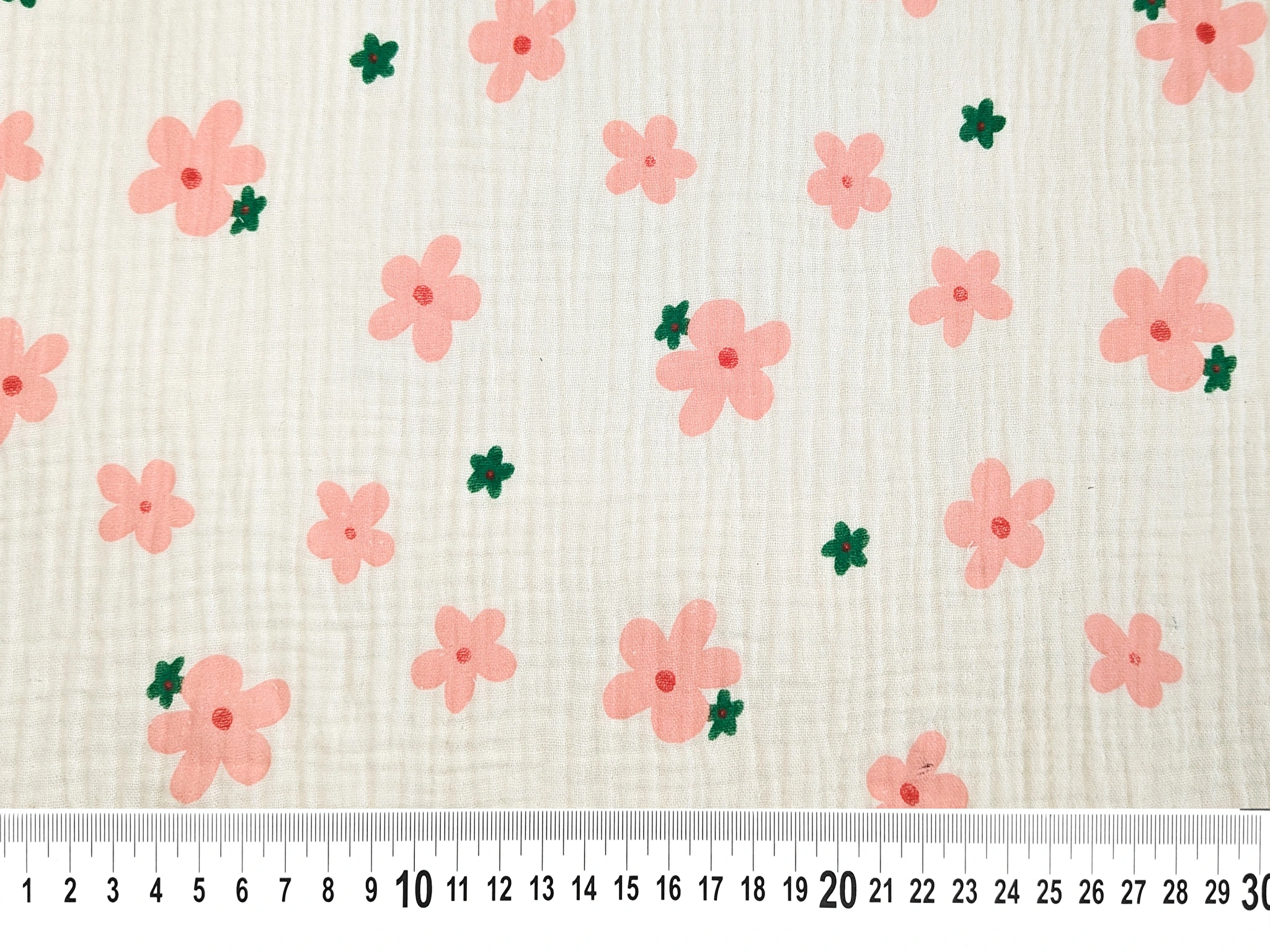 Муслин - это двухслойный хлопок с полотняным переплетением нитей. Полотно приятное к телу, мягкое и легкое. Структура полотна жатая, плотная, но имеет легкий просвет, изделия из него будут очень износостойкими и при этом легкие и комфортные. Абсолютно не парит в жаркую погоду, оно легкое и практически невесомое. Не сминается, не требует дополнительного ухода.