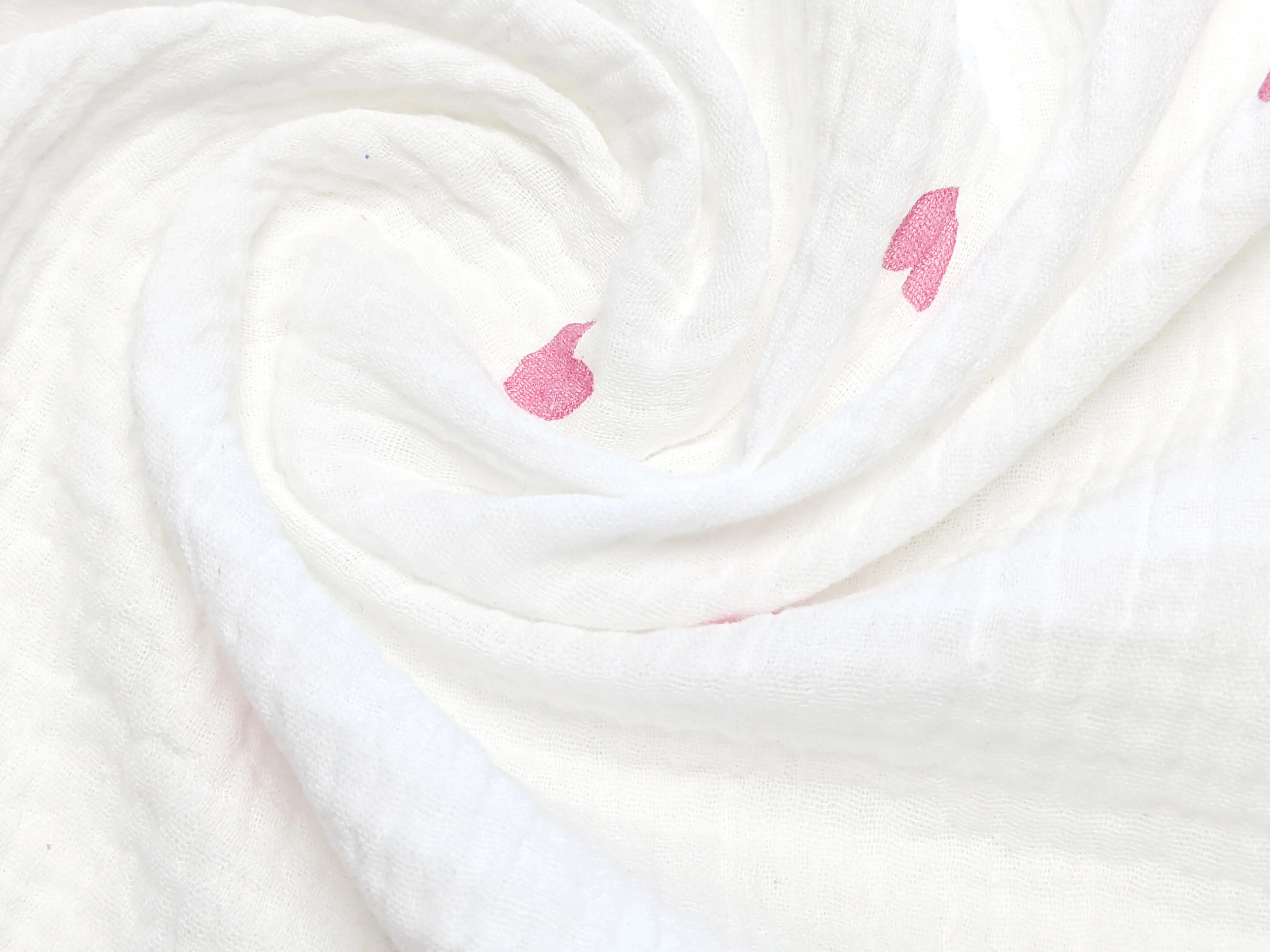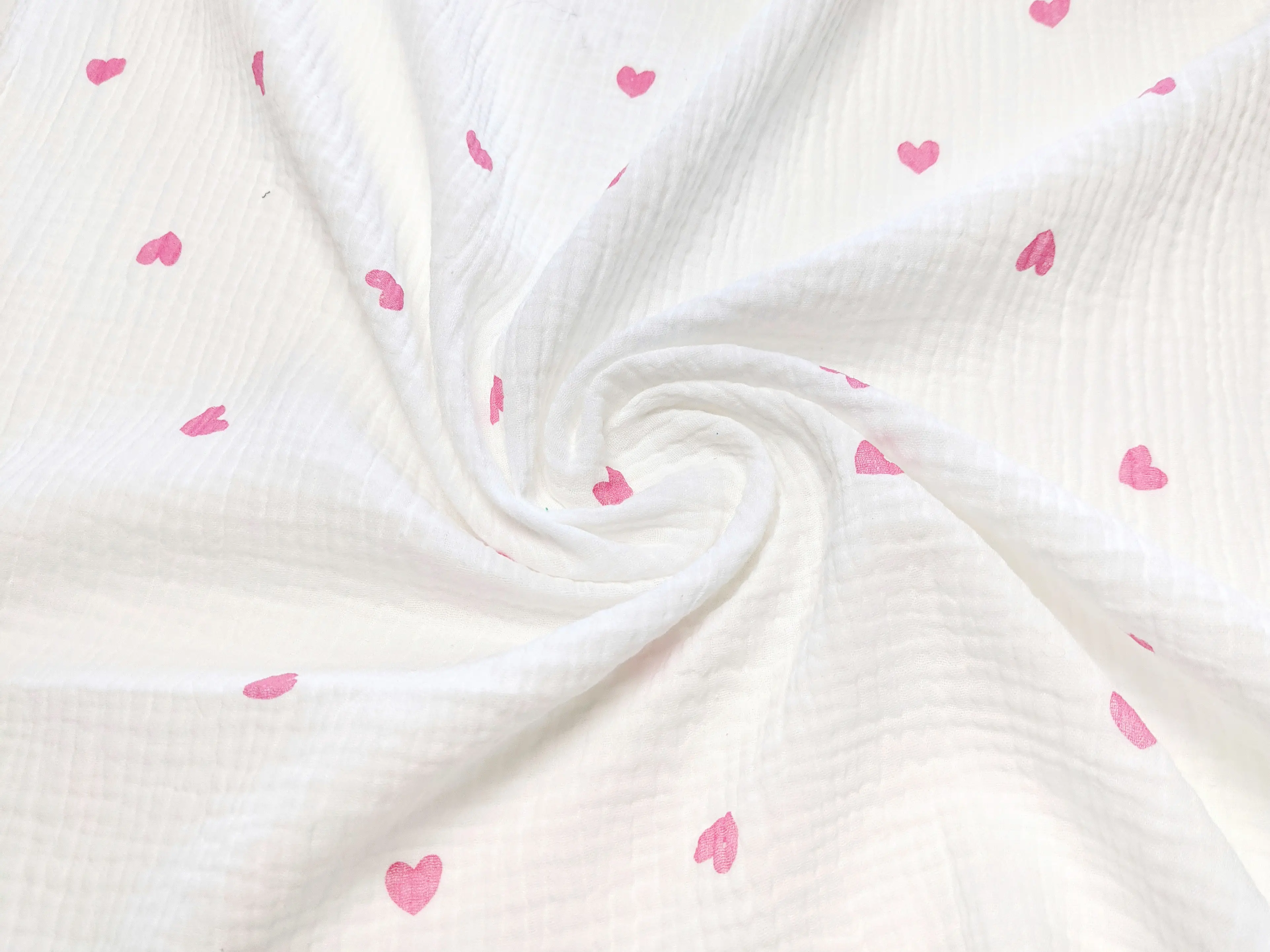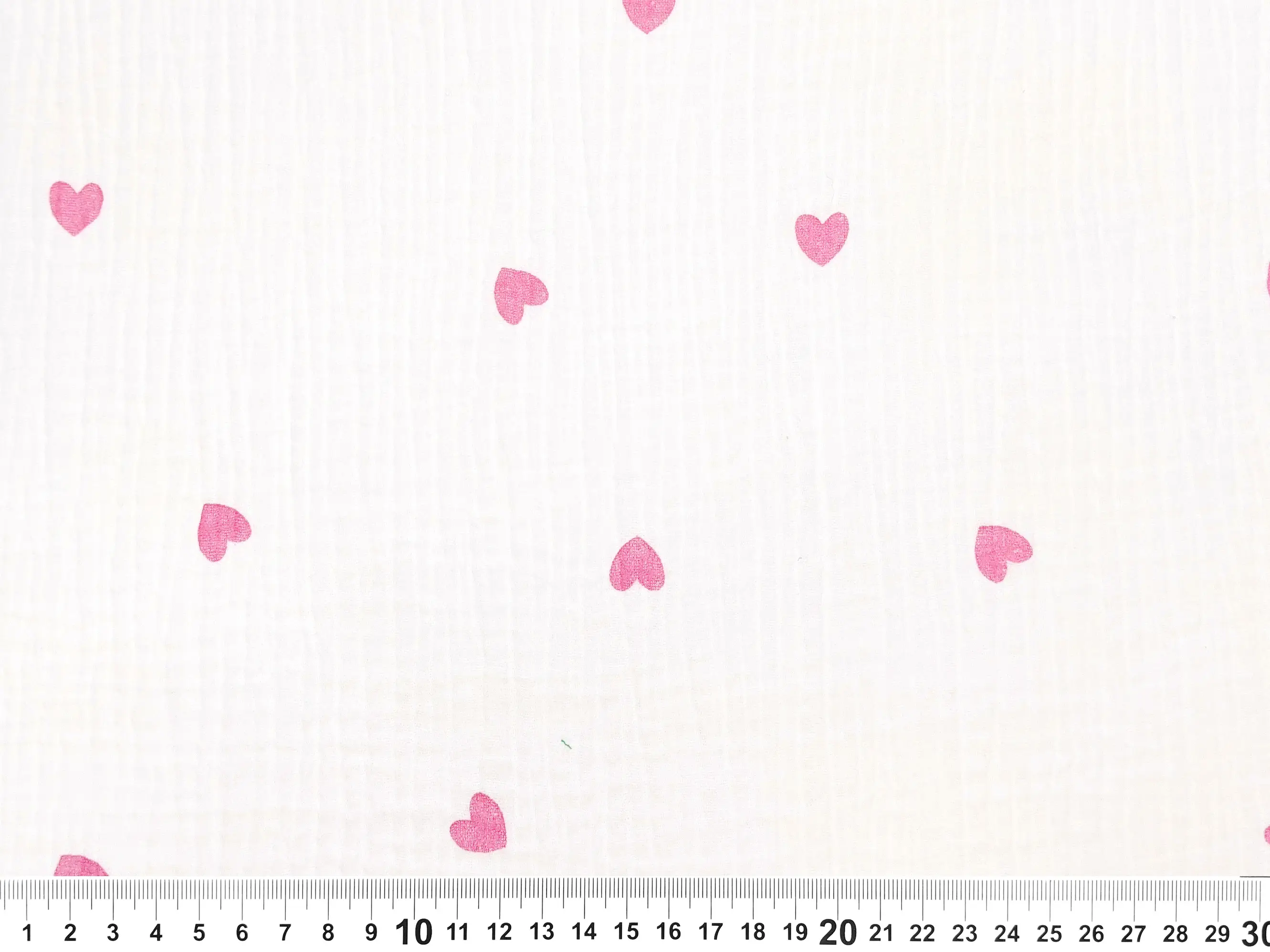 Муслин рисунок сердечки, розовый на молочном (отрез 1,2 м)