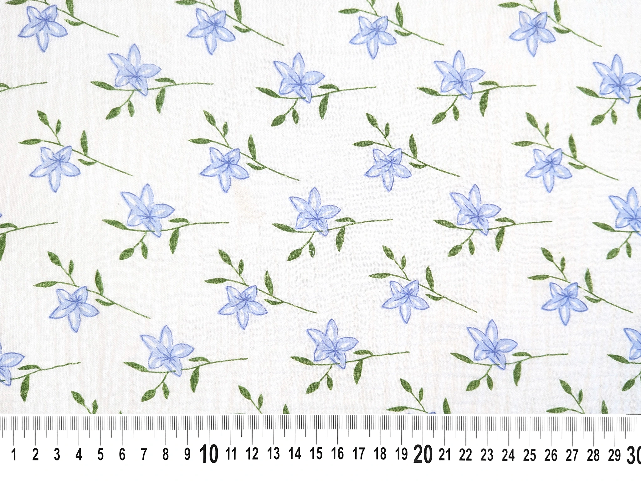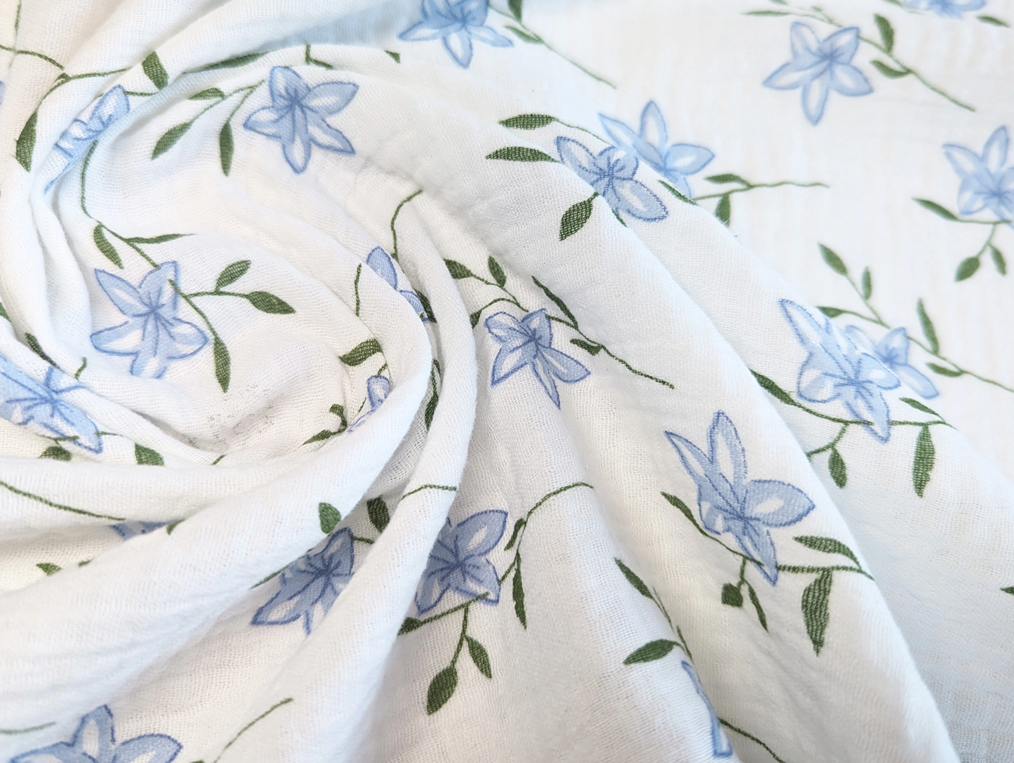 Муслин рисунок цветочки на веточке, молочный