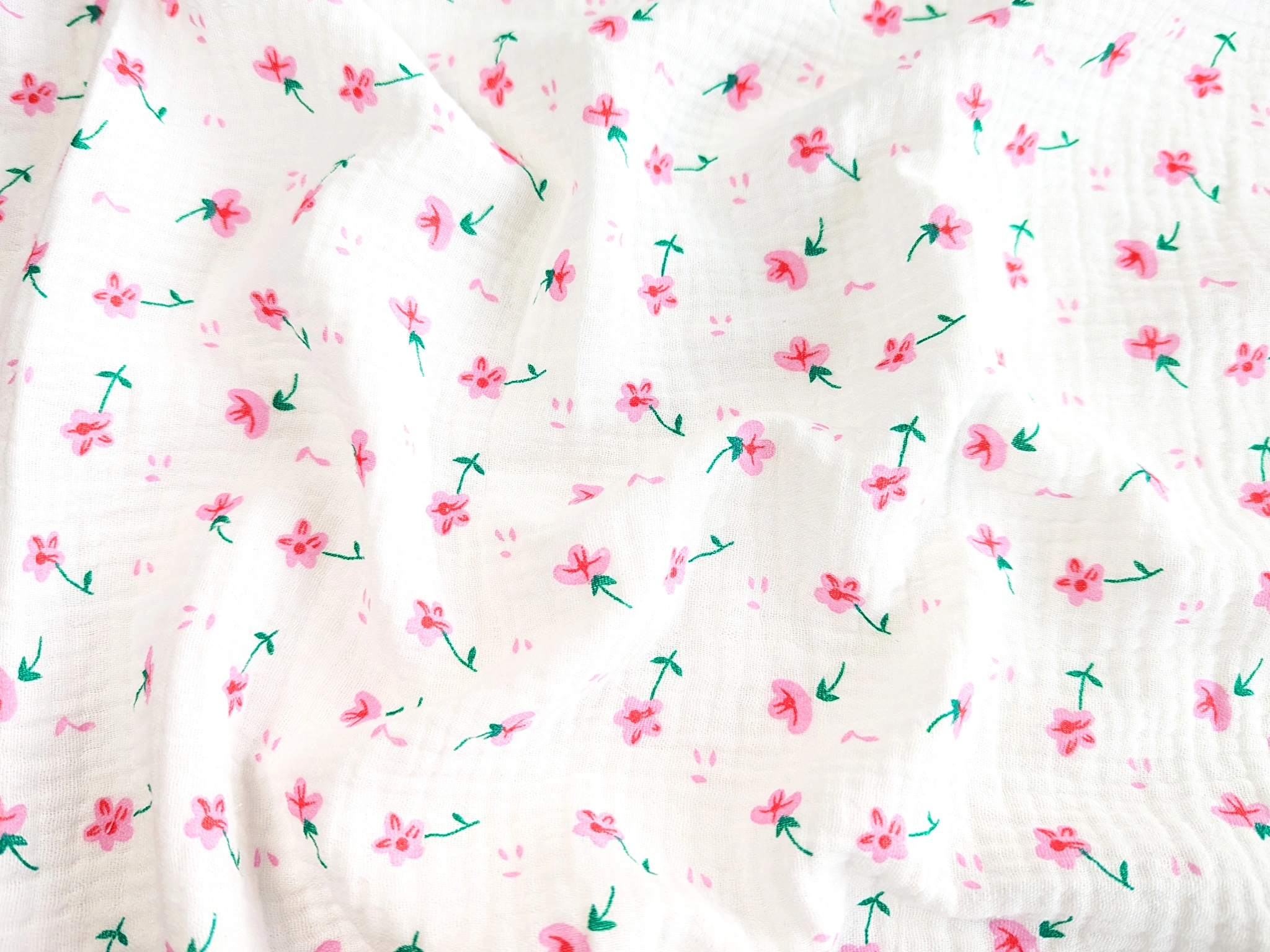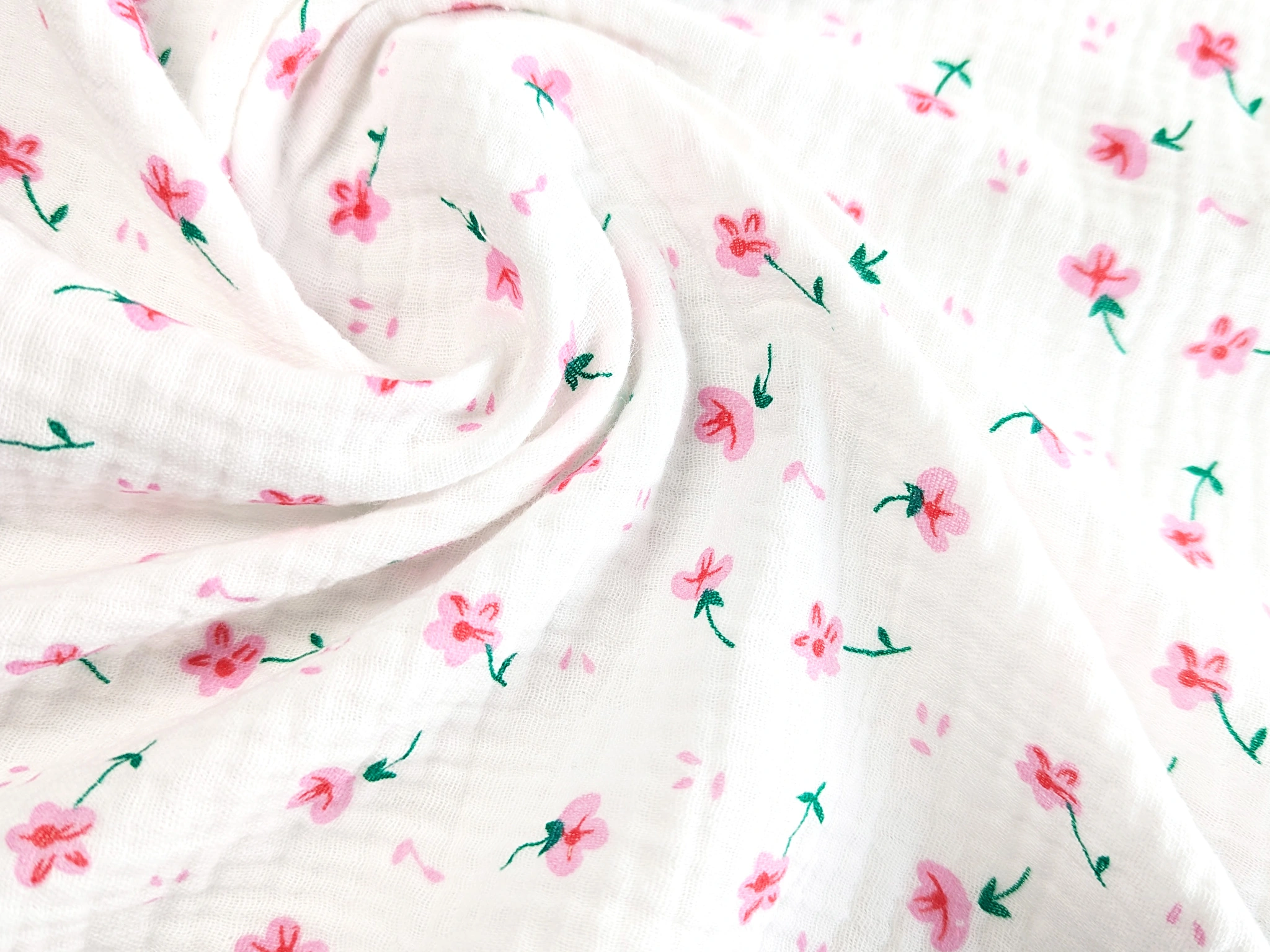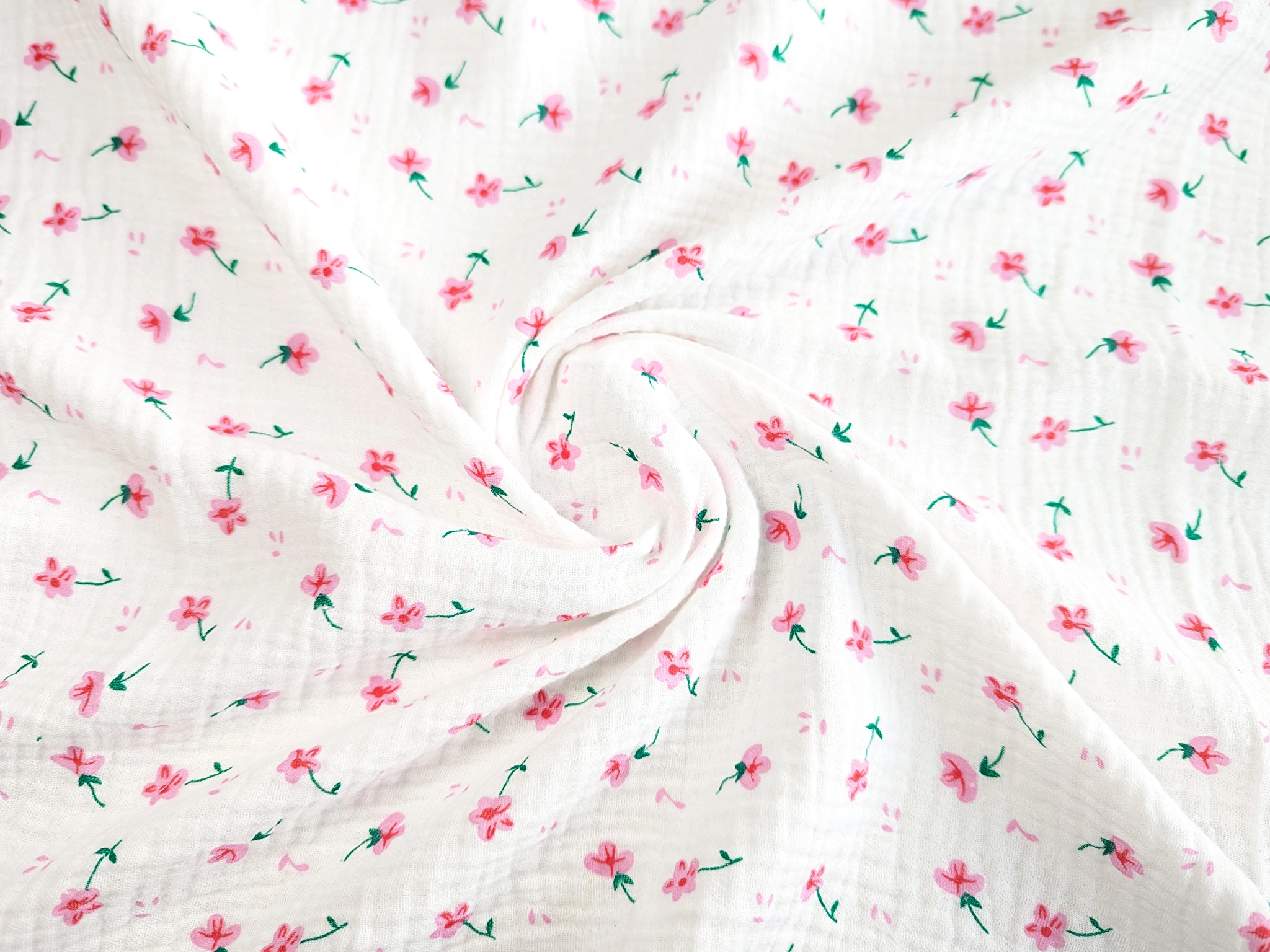Муслин - это двухслойный хлопок с полотняным переплетением нитей. Полотно приятное к телу, мягкое и легкое. Структура полотна жатая, плотная, но имеет легкий просвет, изделия из него будут очень износостойкими и при этом легкие и комфортные. Абсолютно не парит в жаркую погоду, оно легкое и практически невесомое. Не сминается, не требует дополнительного ухода.