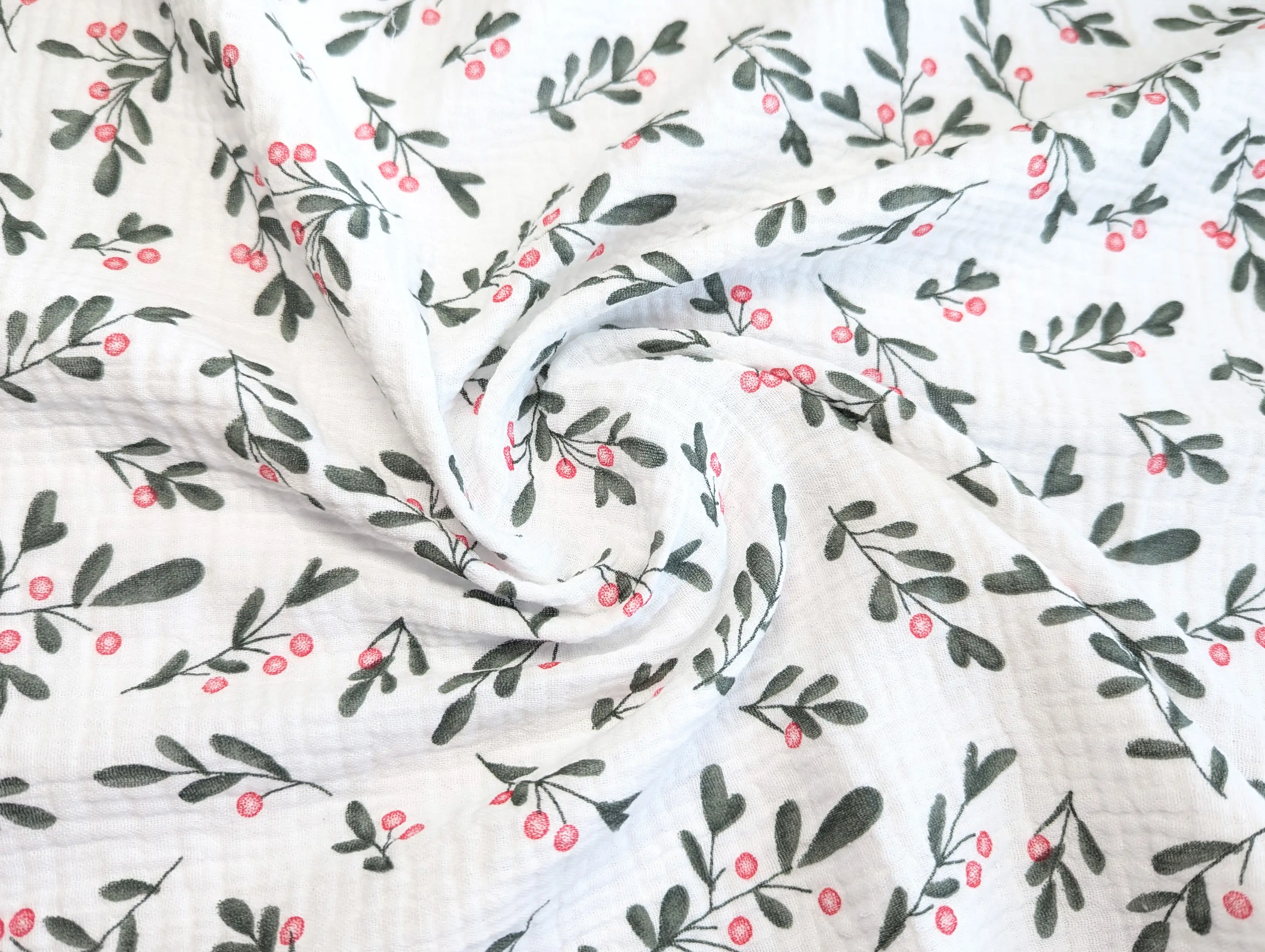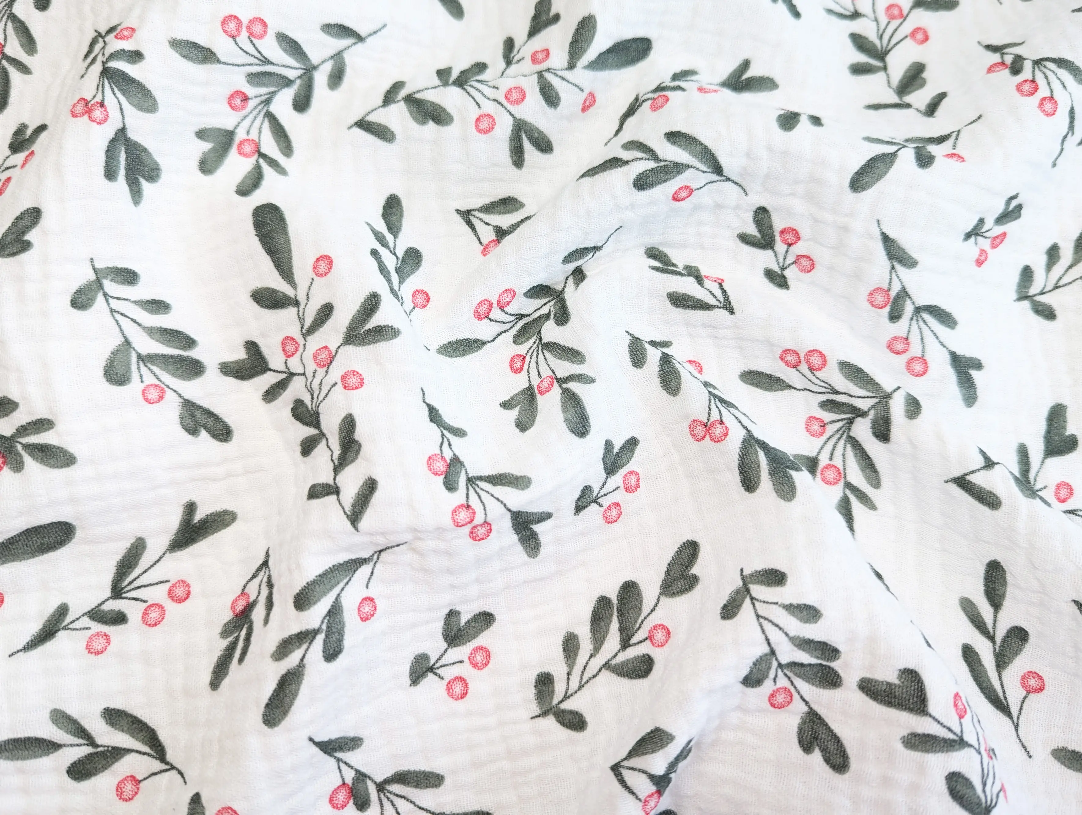 Муслин - это двухслойный хлопок с полотняным переплетением нитей. Полотно приятное к телу, мягкое и легкое. Структура полотна жатая, плотная, но имеет легкий просвет, изделия из него будут очень износостойкими и при этом легкие и комфортные. Абсолютно не парит в жаркую погоду, оно легкое и практически невесомое. Не сминается, не требует дополнительного ухода.