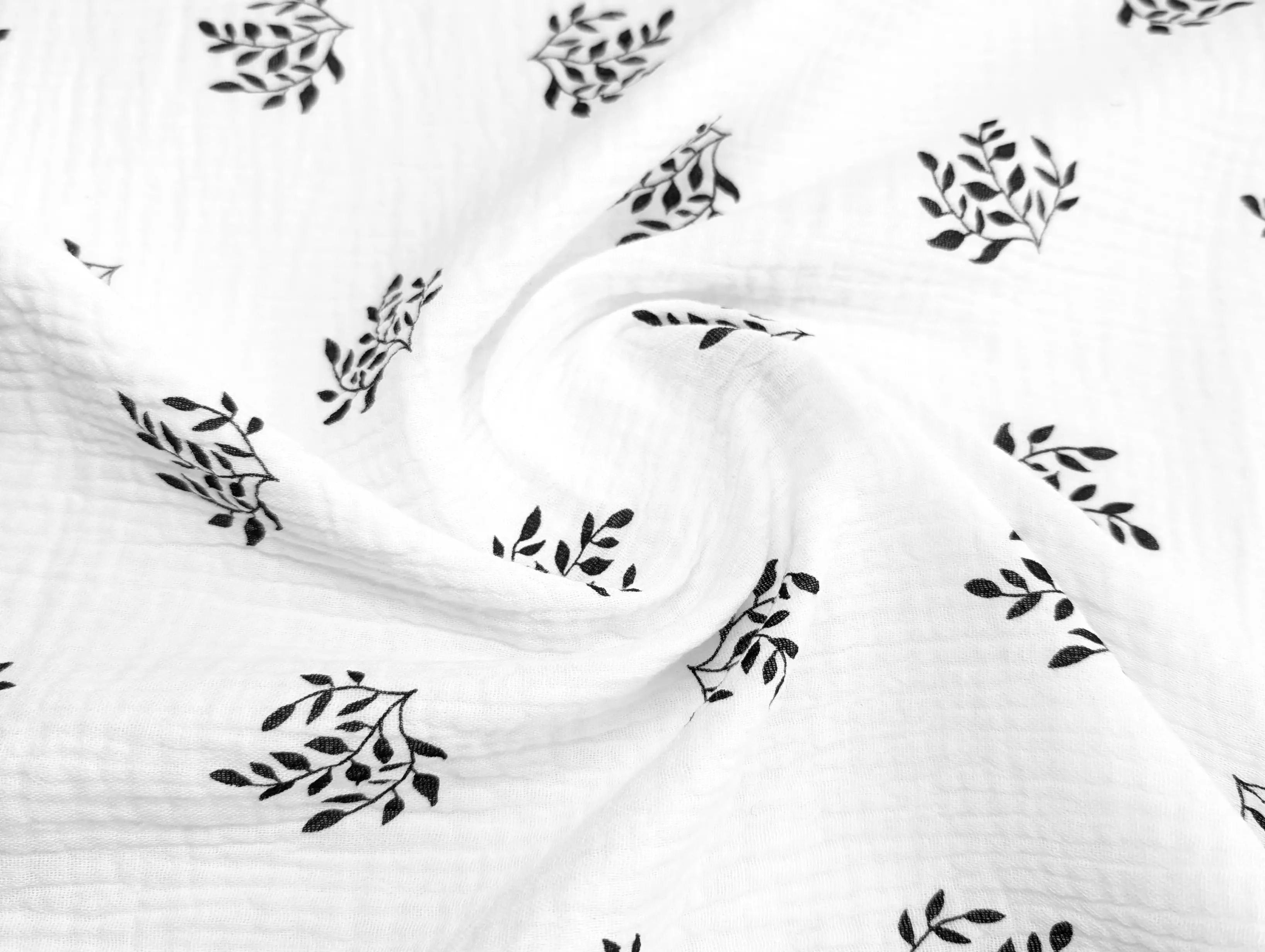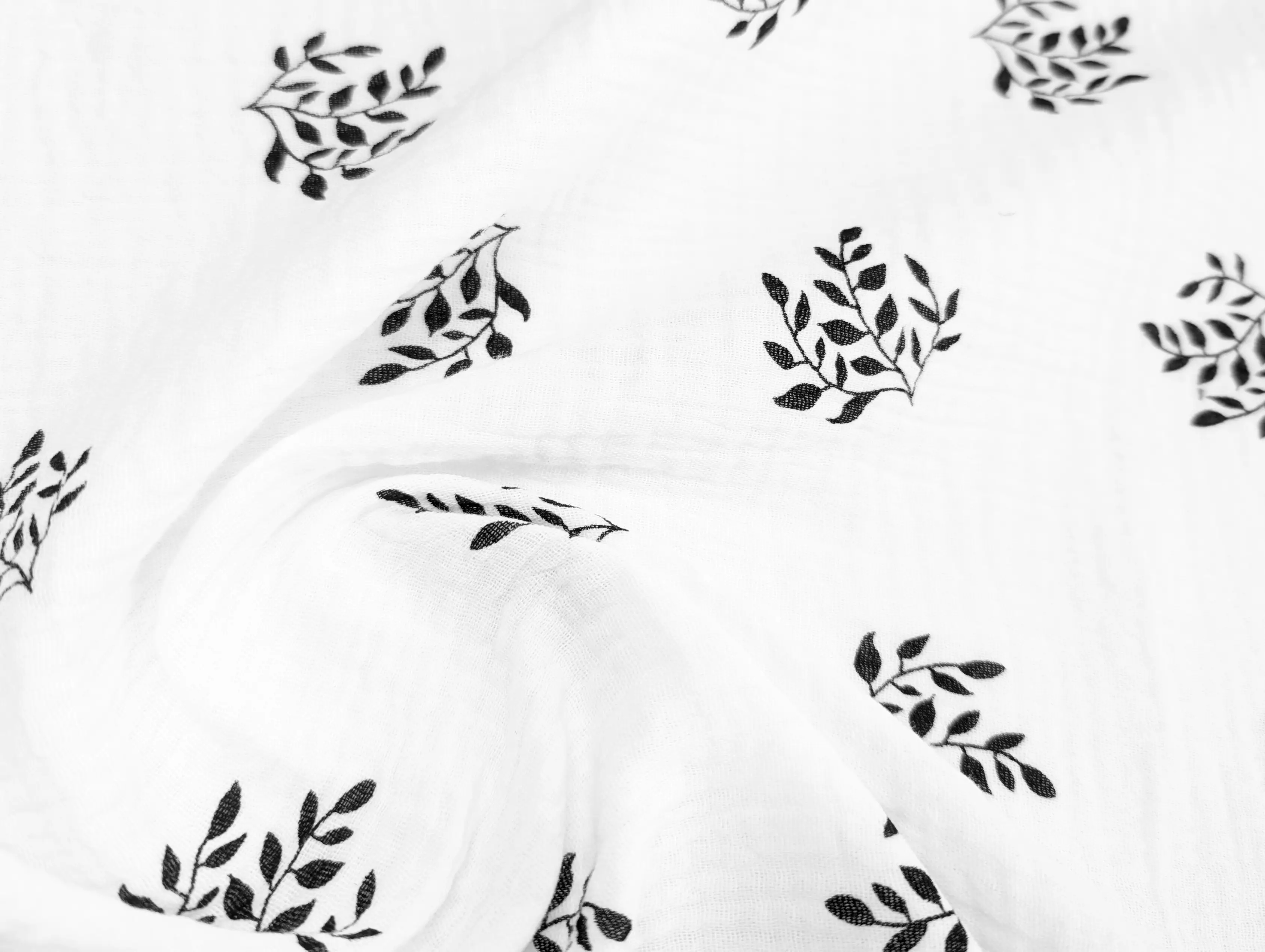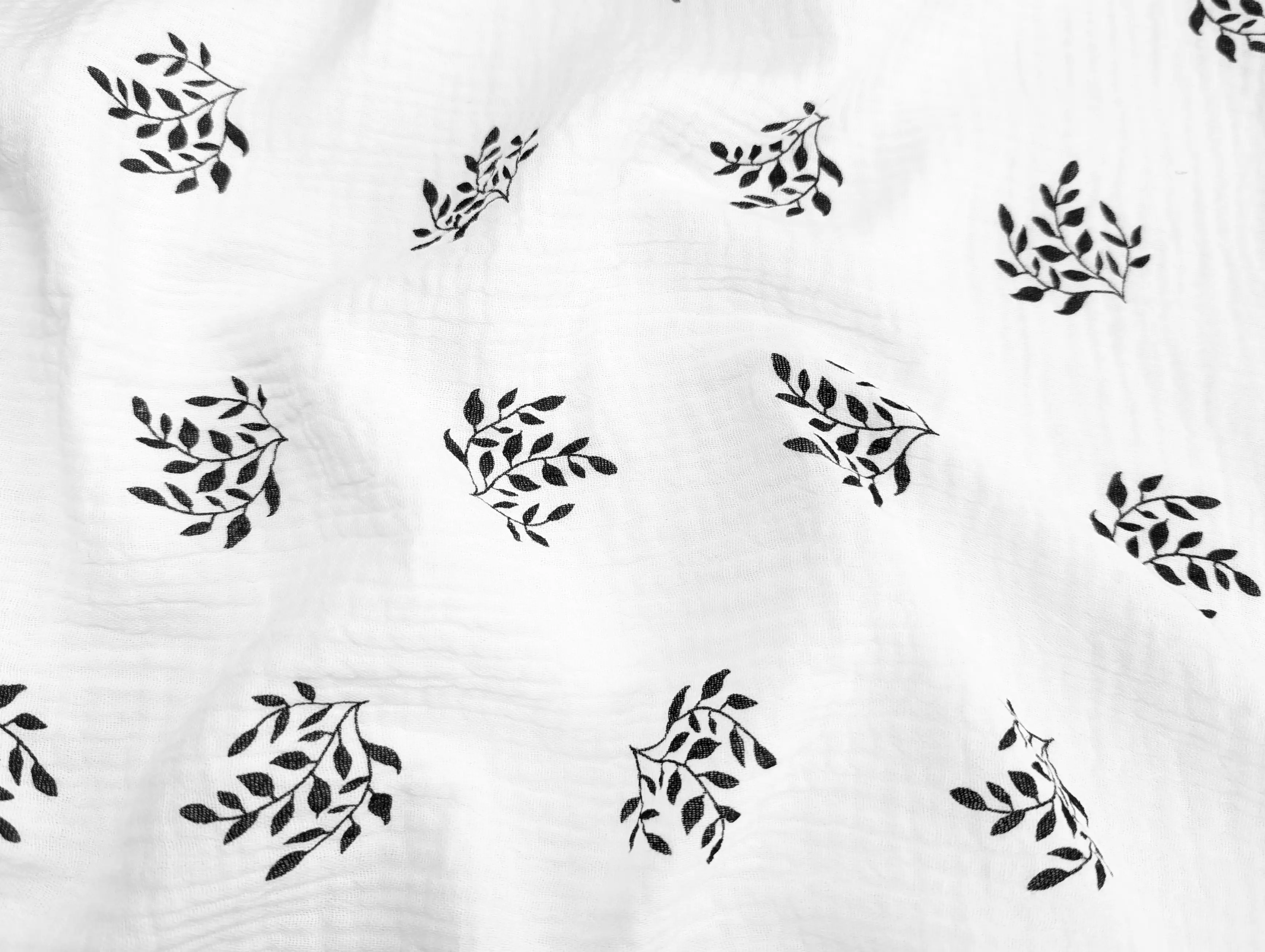 Муслин рисунок веточки, черный с молочным