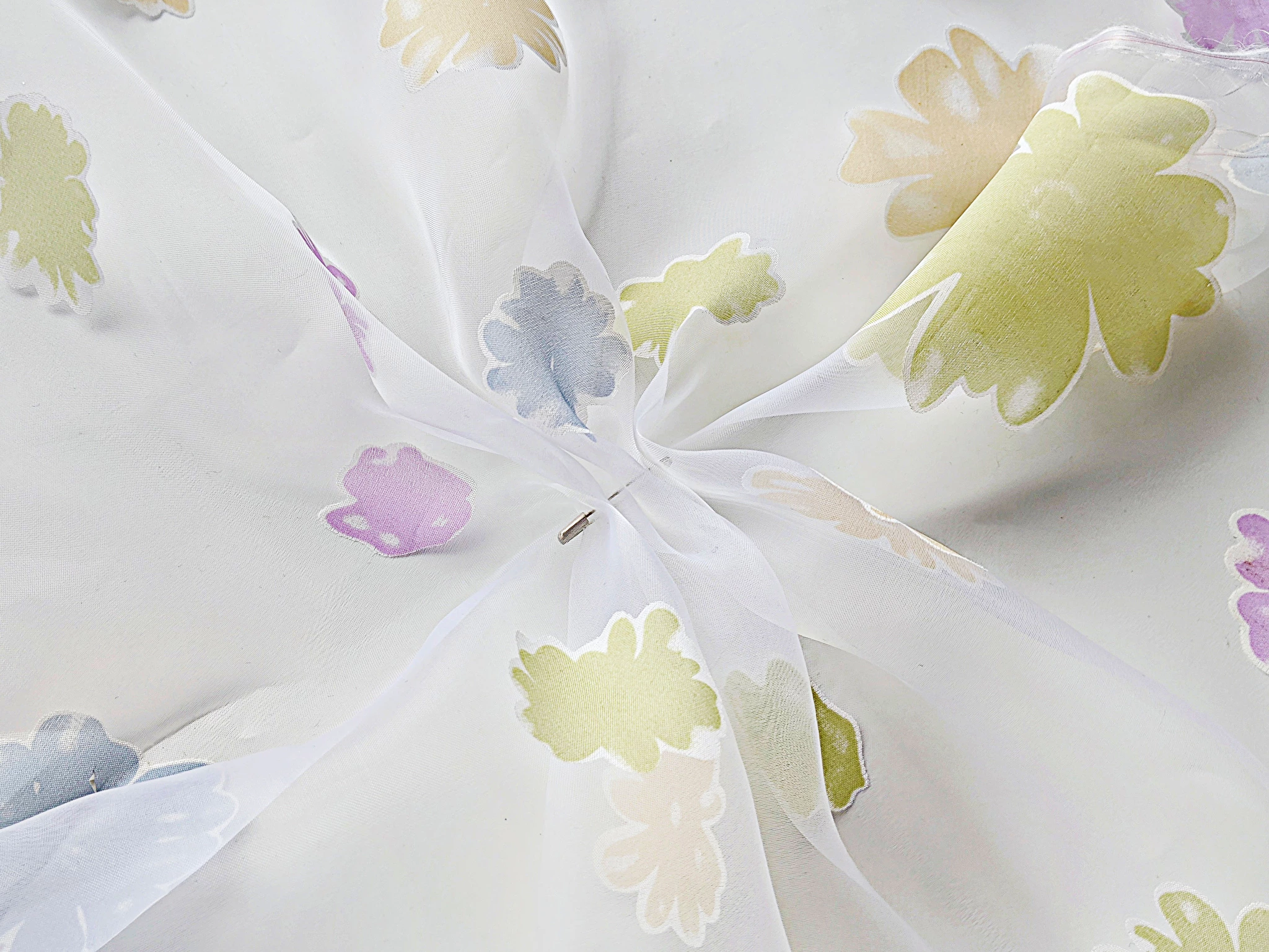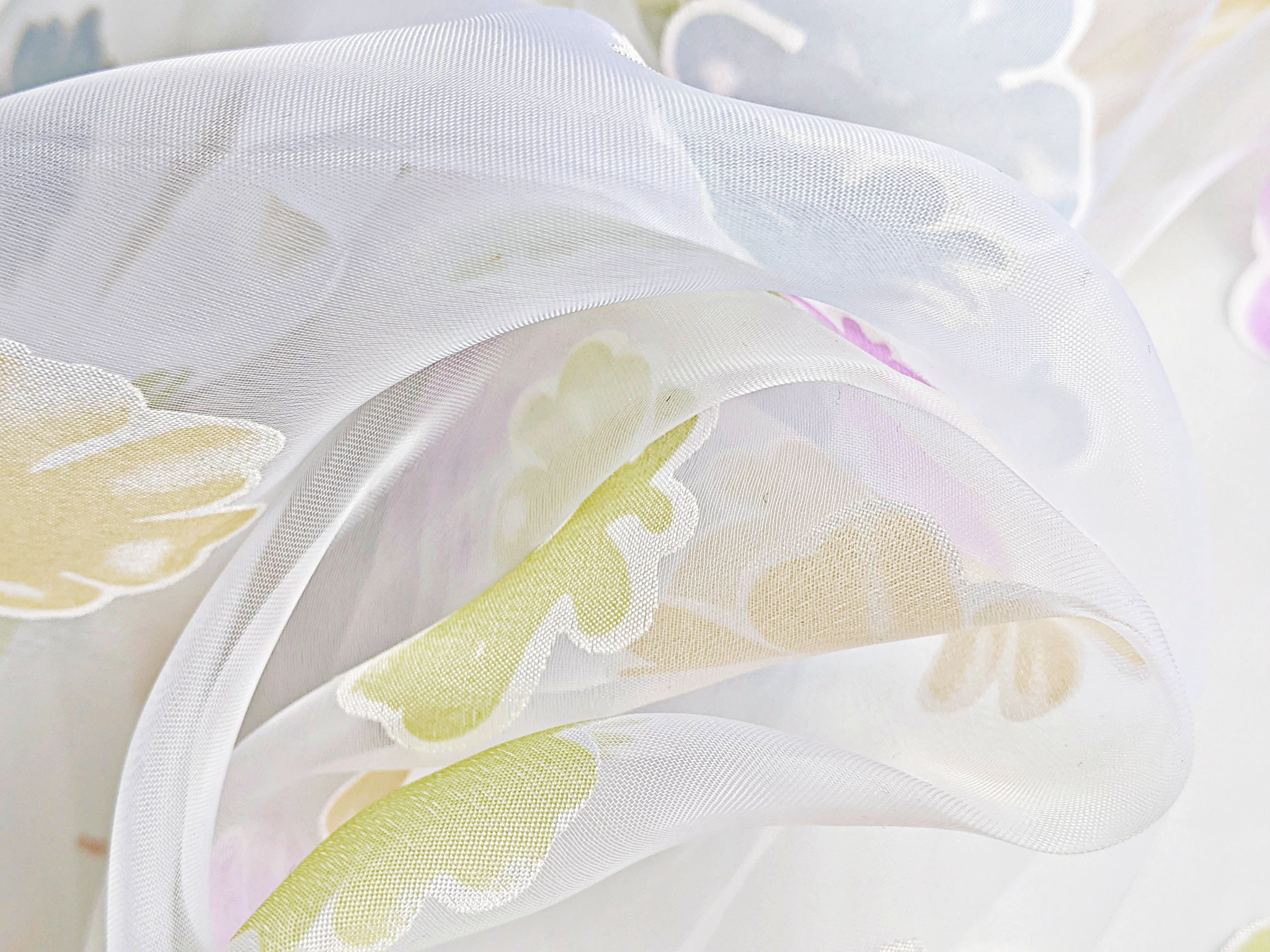 Органза - это одна из разновидностей легких тканей. Полотно с разноцветным цветочным принтом, устойчивое к деформации, при сжатии не образует складок и заломов, высокая прочность, износоустойчивость. Ткань прозрачная, невесомая, не мнется, позволяет формировать складки.