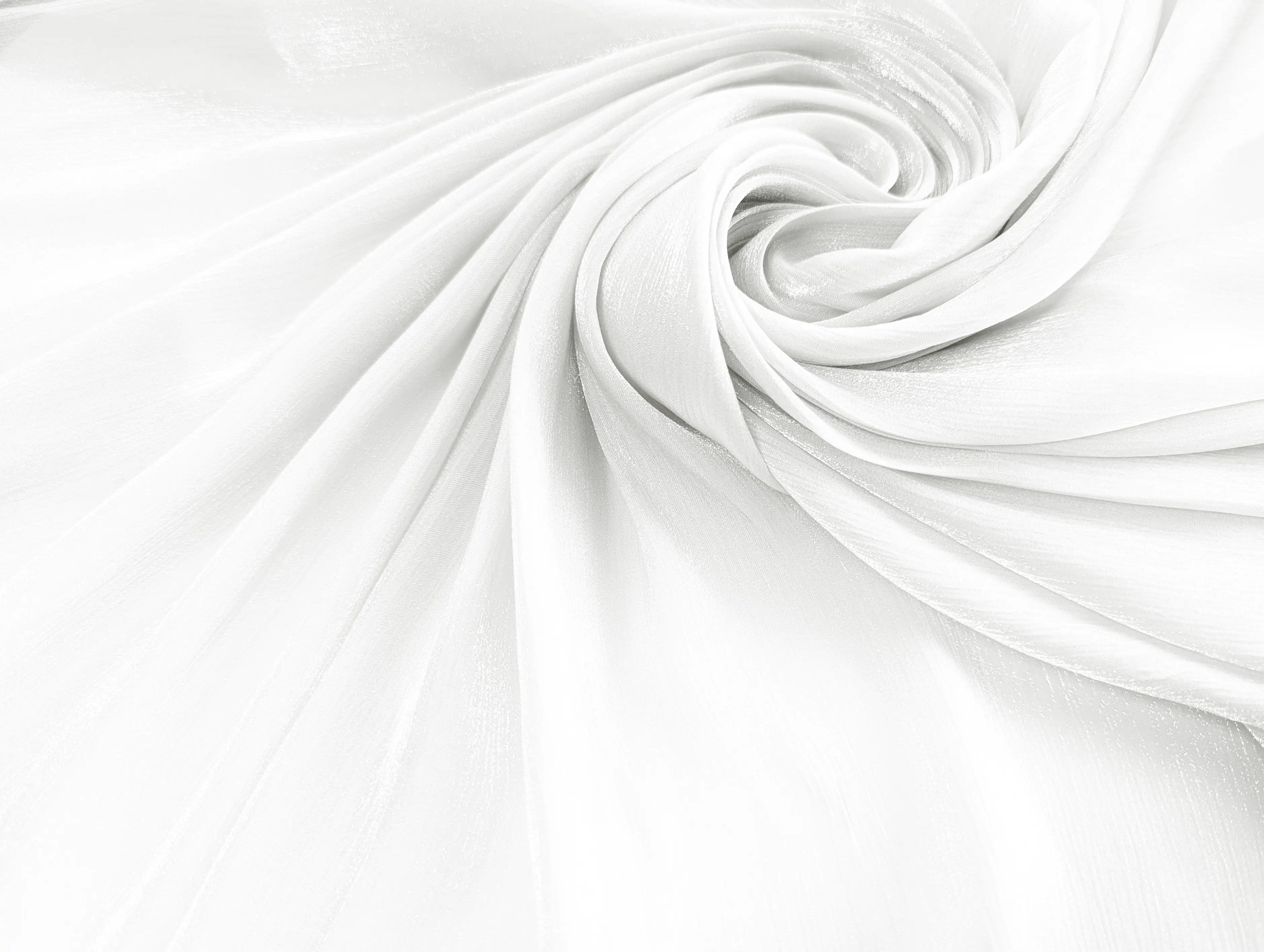 Органза с блеском жатка - невесомая, воздушная, полупрозрачная ткань с деликатным жатым эффектом и мягким, мерцающим блеском. Материал очень нежный, мягкий, тактильно приятный, шелковистый. Не тянется, при драпировке ложится в складки с мягкими изгибами. Полупрозрачная текстура и деликатное мерцание создают изысканные переливы на свету, создавая эффект глубины и движения.