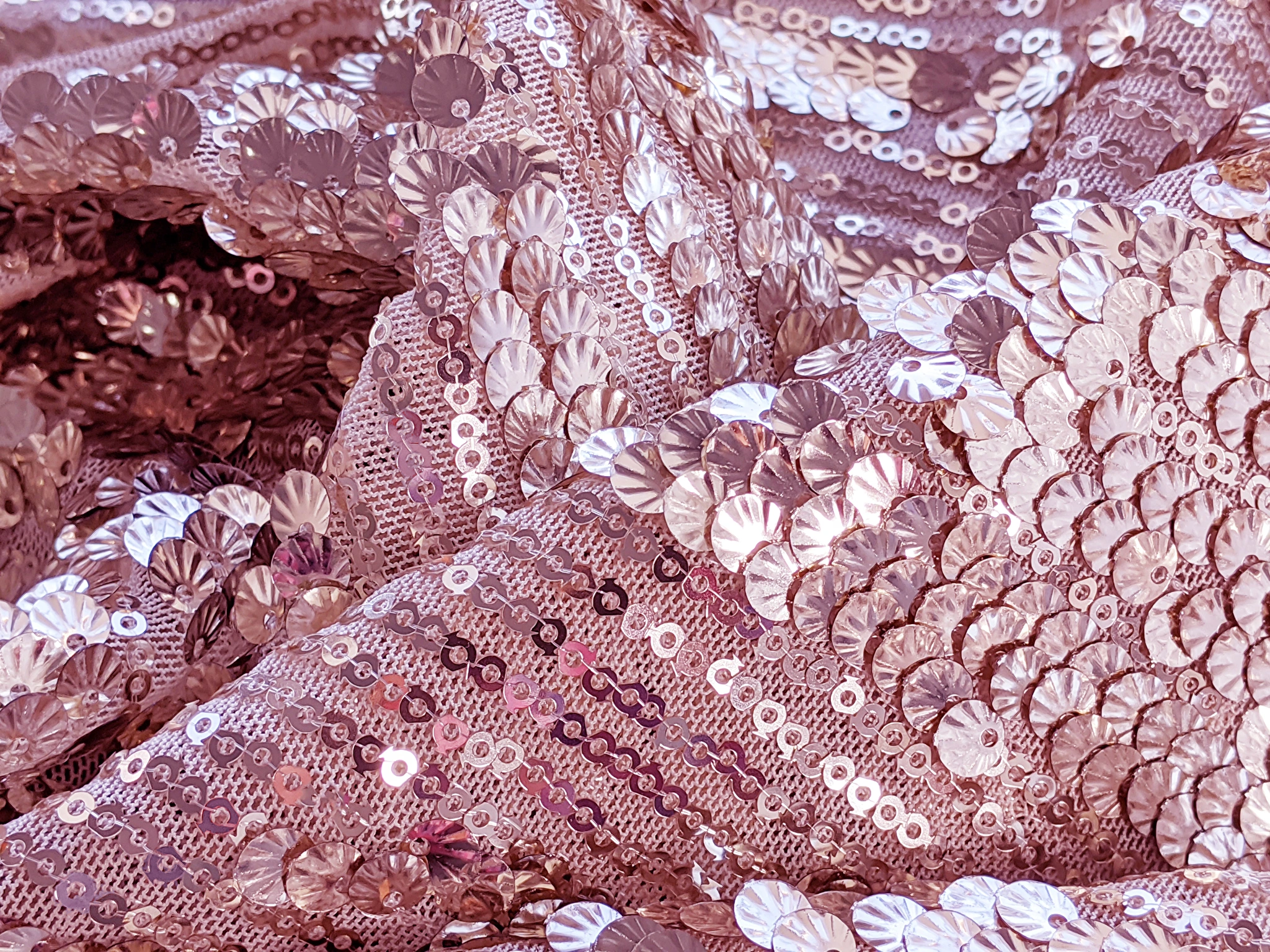 Пайетка на сетке ракушка, розовый (отрез 2 м)