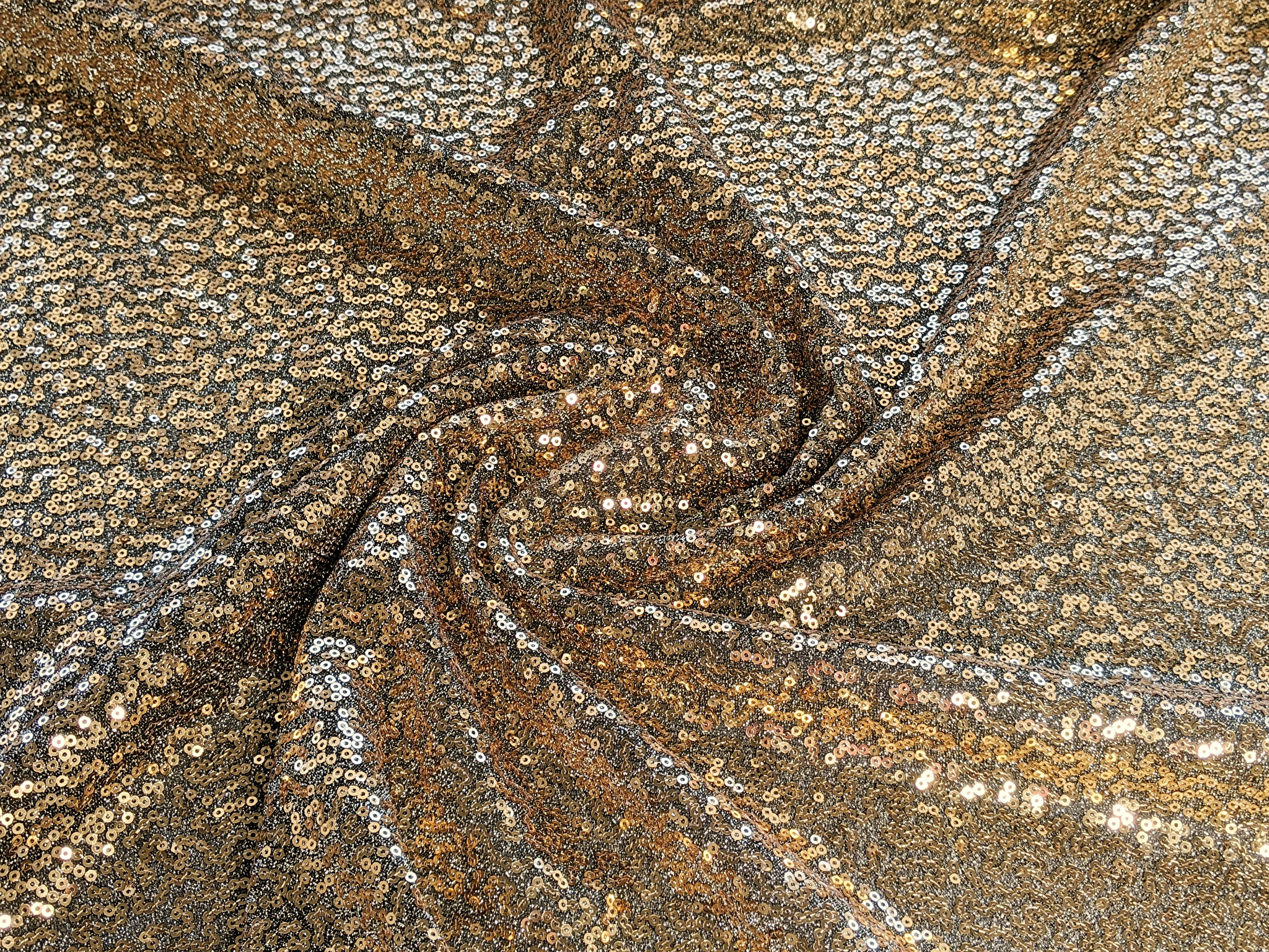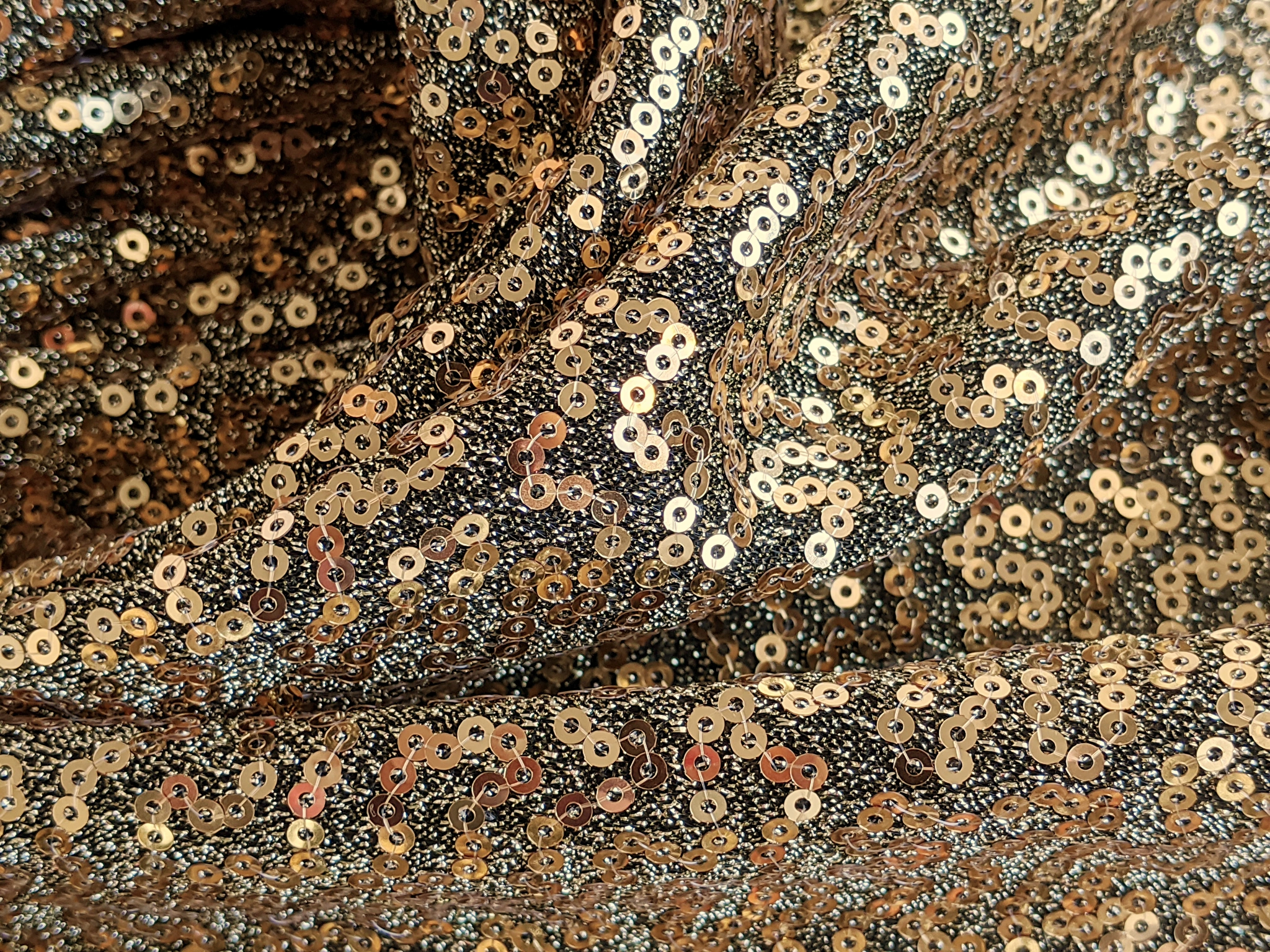 Пайетка на сетке, золото на черном (отрез 2 м)