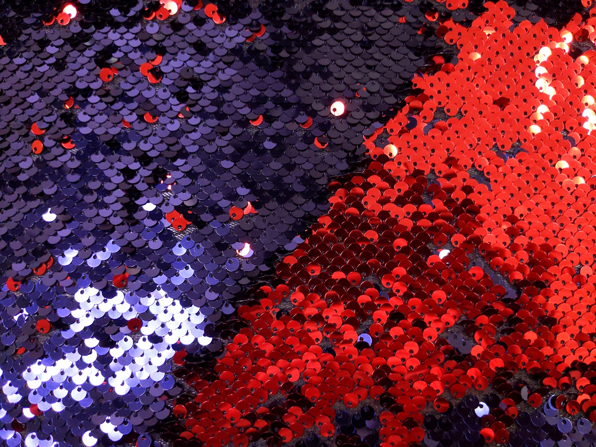 Пайетка перевертыш двухсторонняя, красный с синим (отрез 1 м)