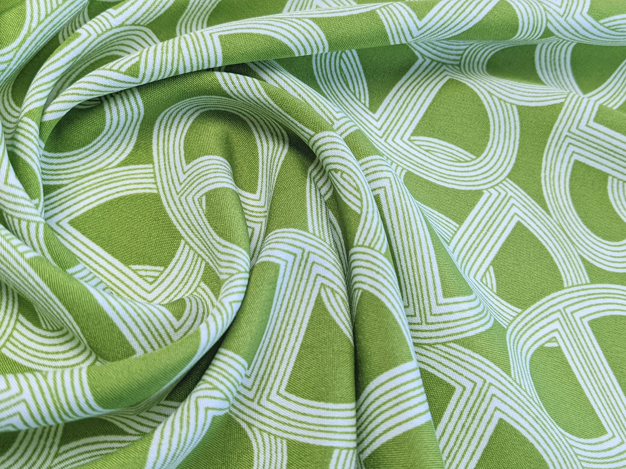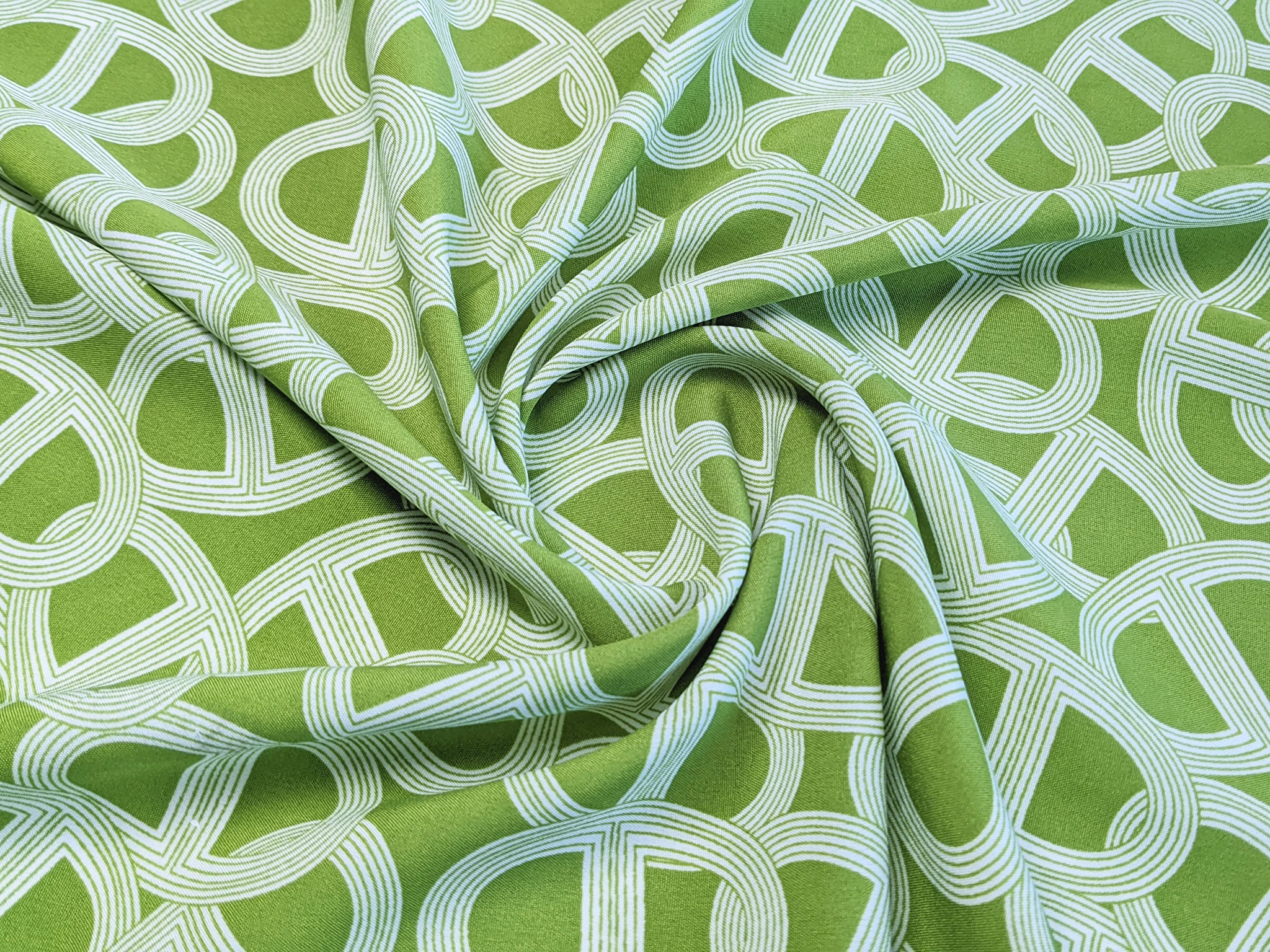 Плательный креп акварельная абстракция, салатовый