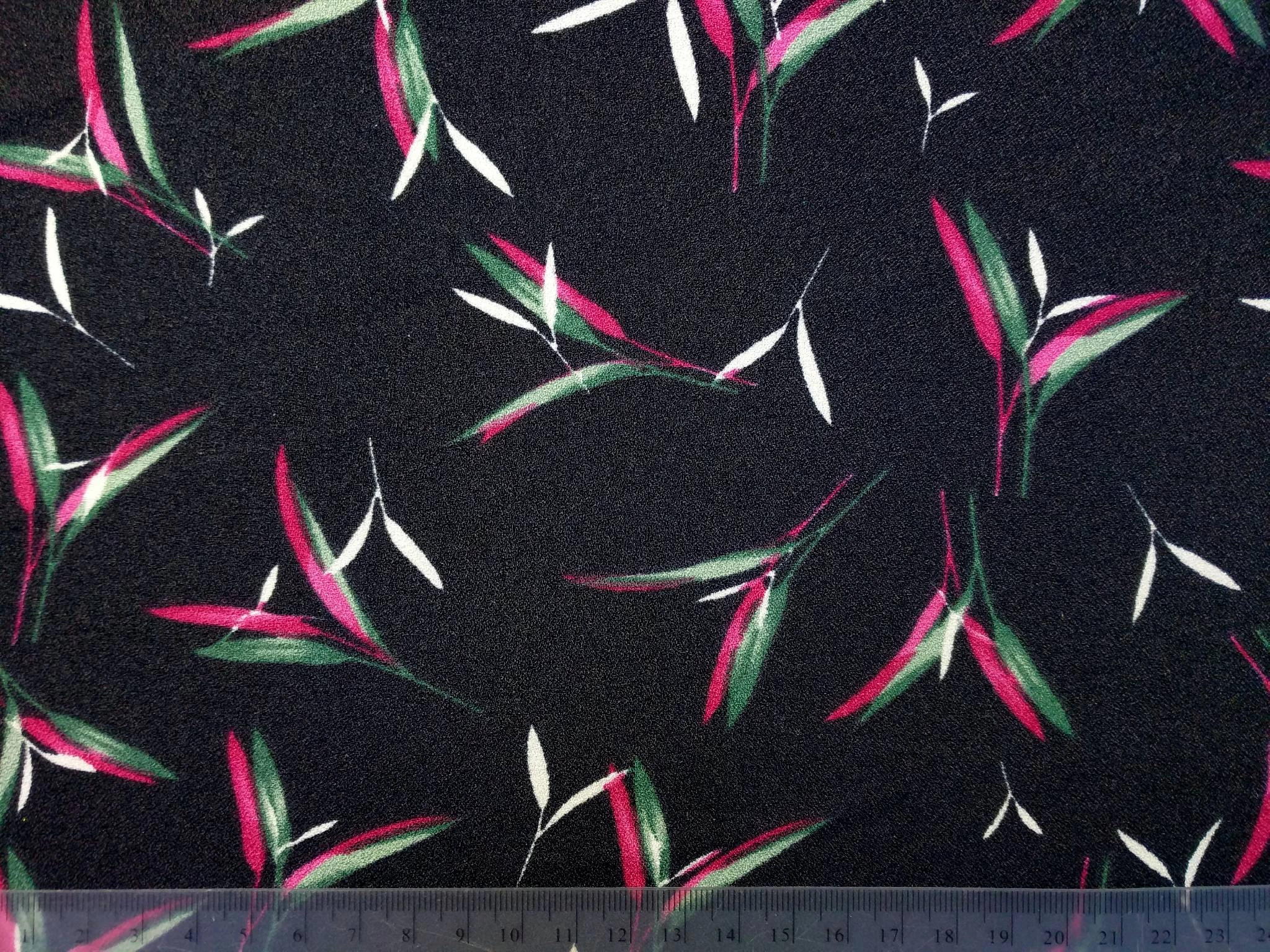 Плательный креп лиственный дуэт, черный (п15, 1809094C, д2 стебель на черн)