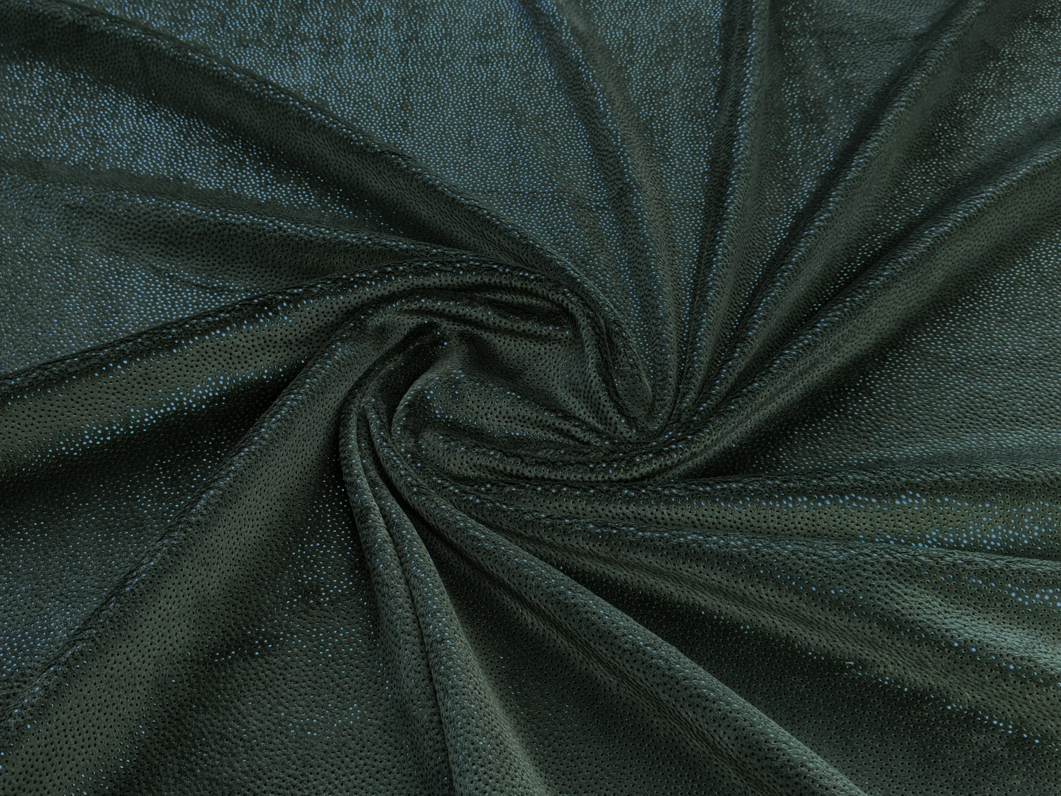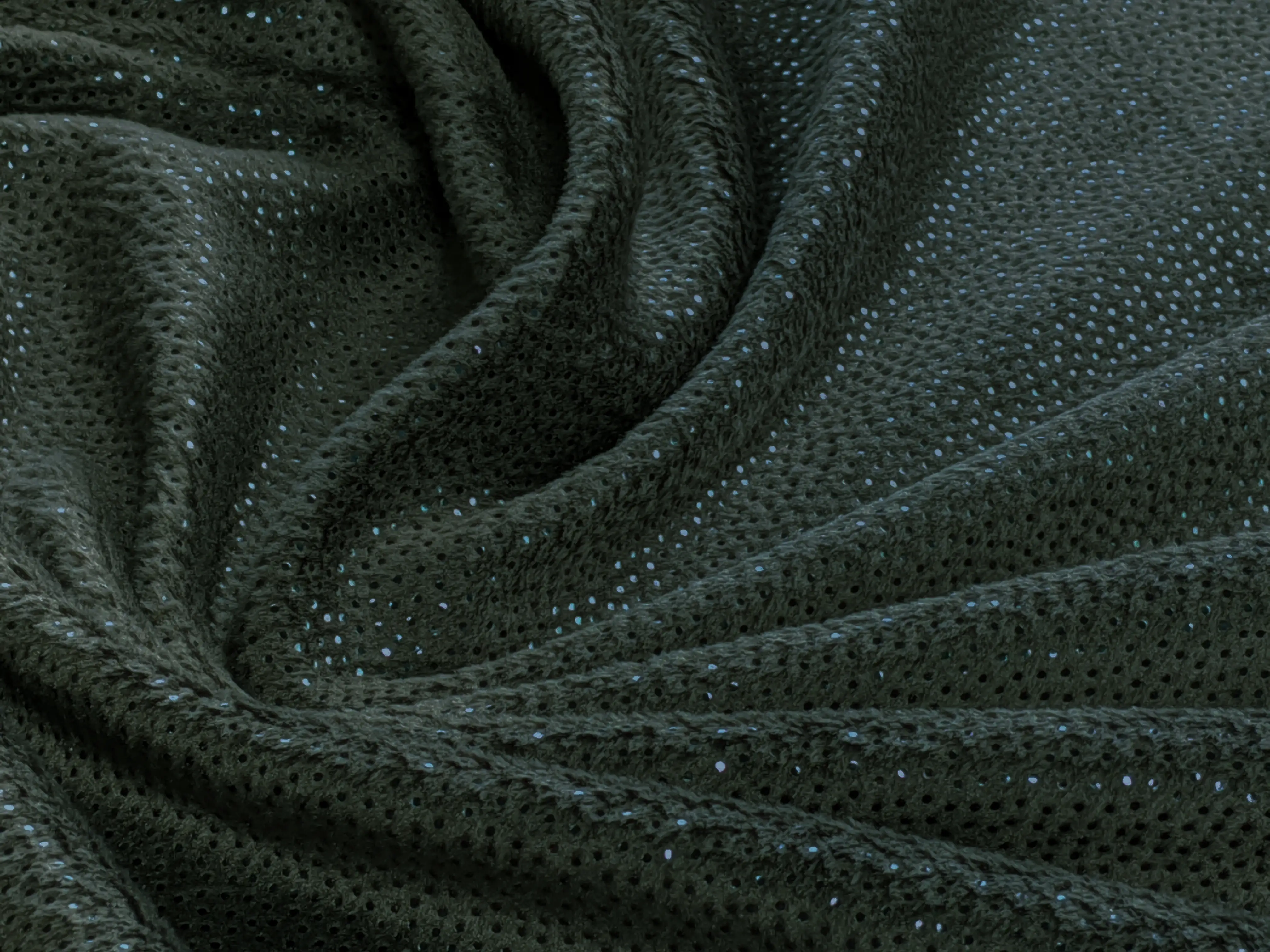 Плюшевий бархат с напылением - элегантный и мягкий на ощупь. Лицевая сторона с искристым блеском. Блеск не осыпается и не стирается. Полотно имеет среднюю плотность, равномерный ворс и однородный окрас. В составе присуствует спандекс, благодаря которому он великолепно растягивается, хорошо облегает фигуру. Бархат износостойкий, при длительном использовании не теряет внешнего вида, не теряет окрас, не деформируется. В уходе не капризен.