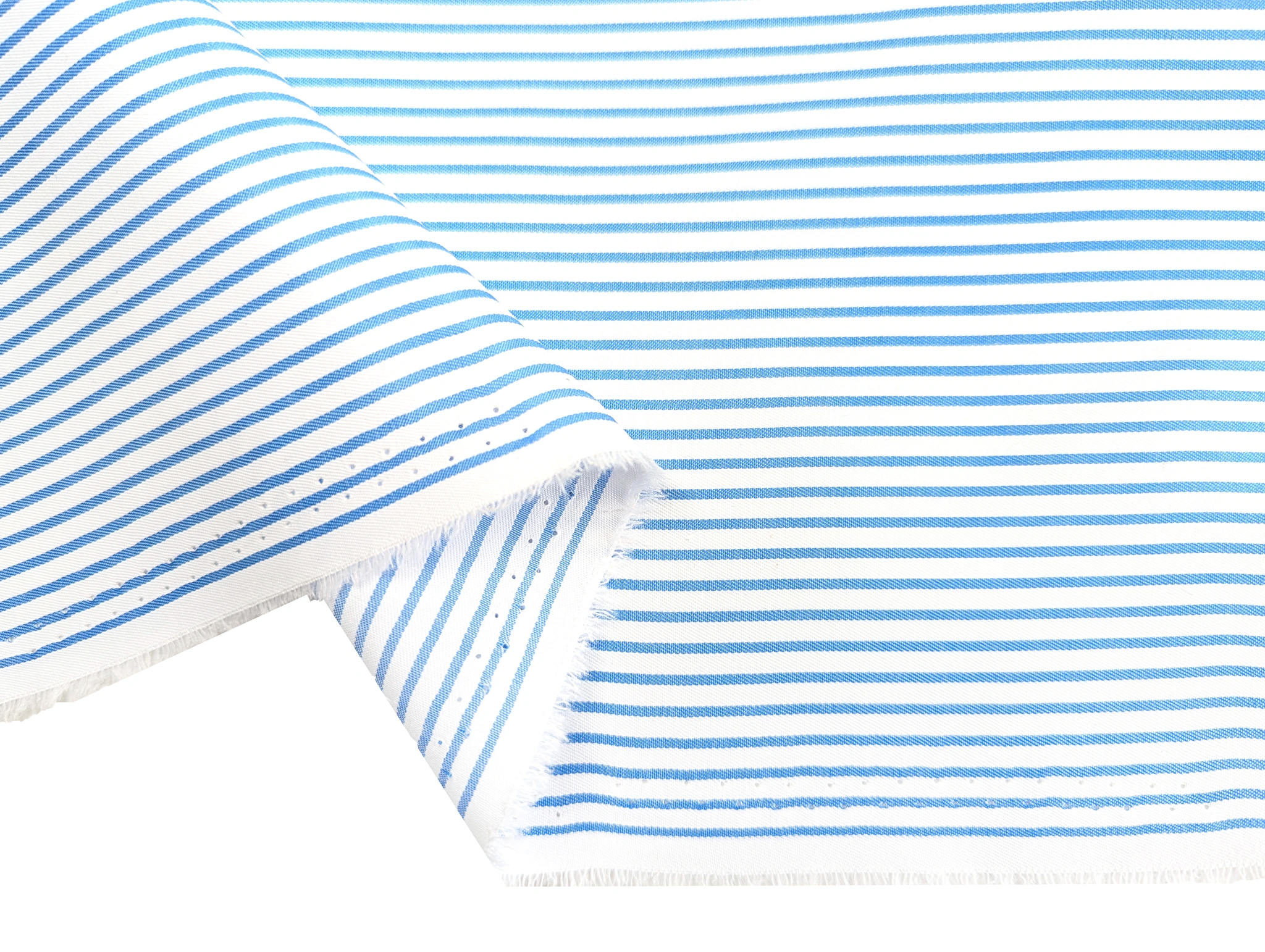 Поликоттон рубашечный полоска 5 мм, голубой на белом