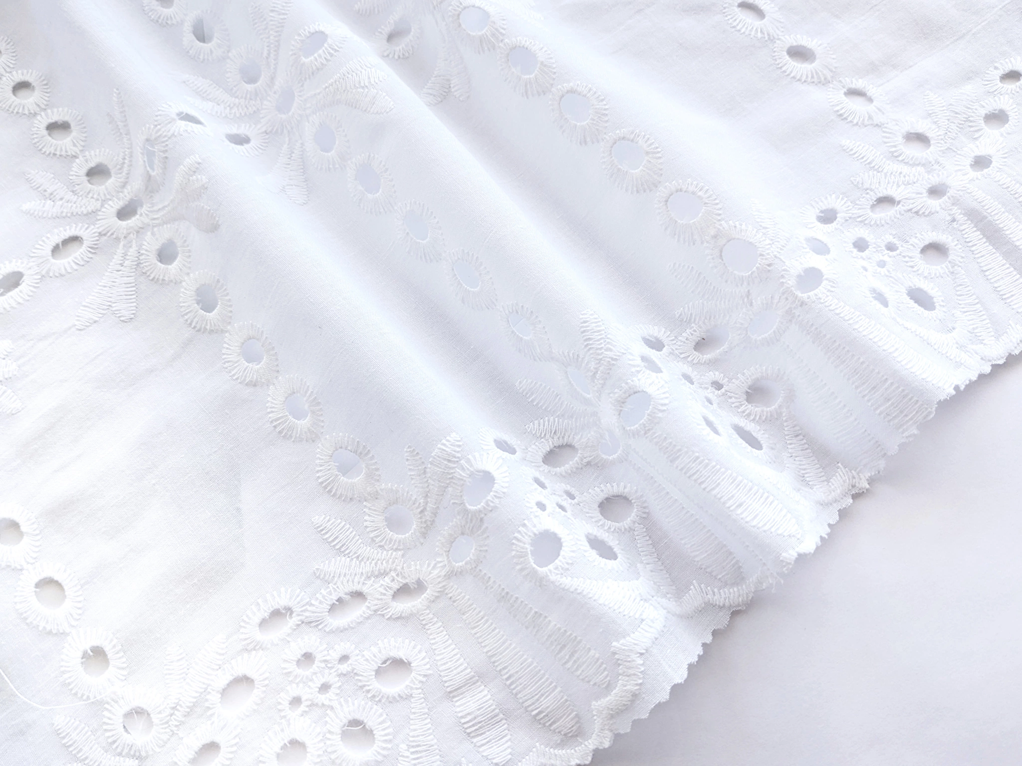 Прошва - легкое коттоновое полотно украшено декоративной вышивкой по всему полотну ткани.
