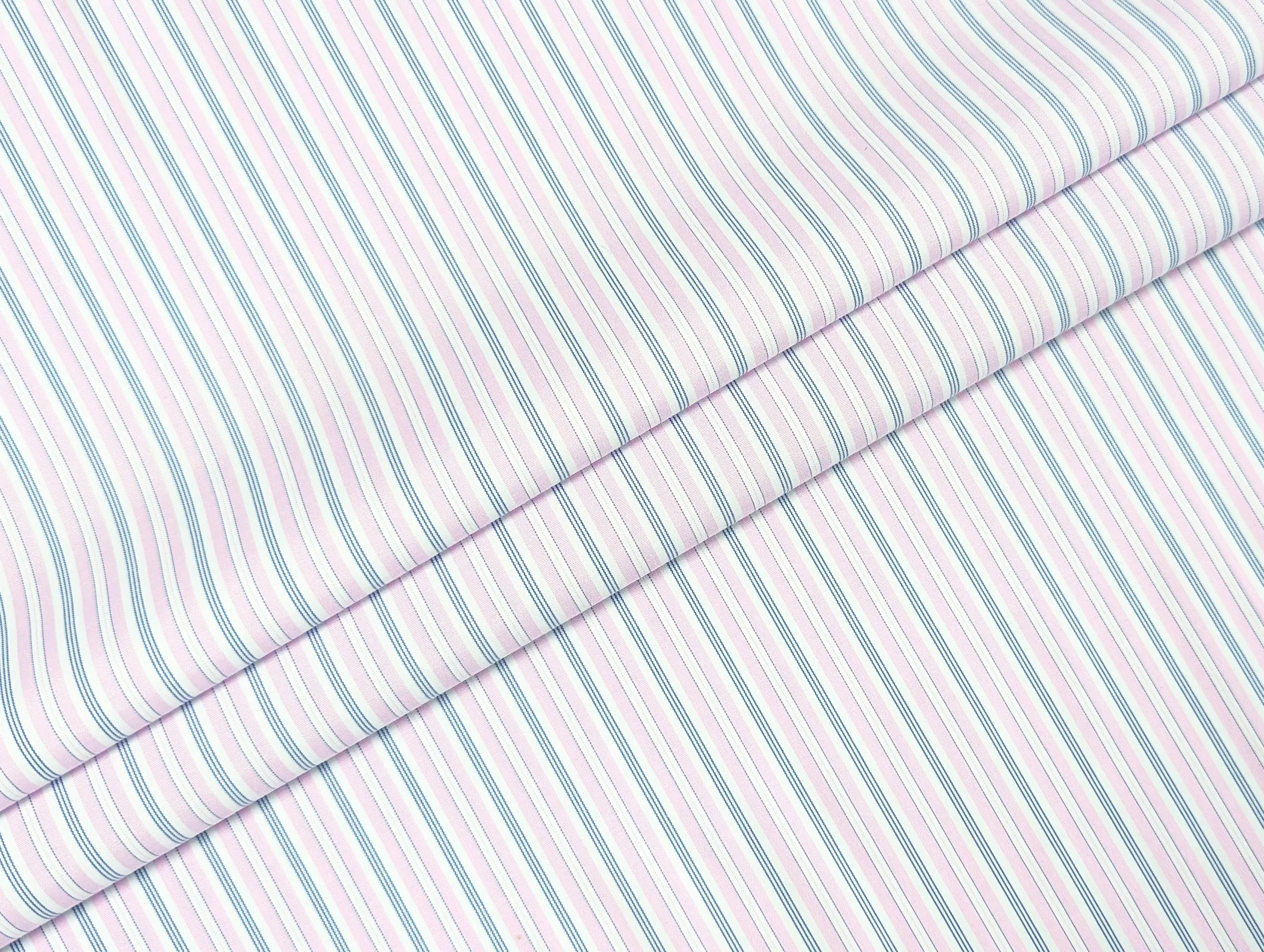 Рубашечный поплин полоска 13 мм, розовый на белом