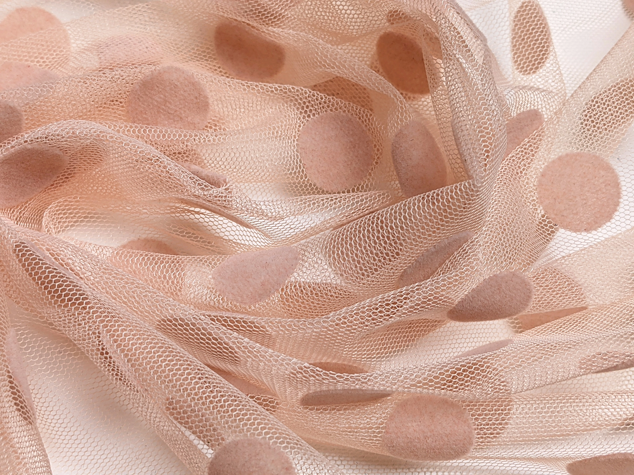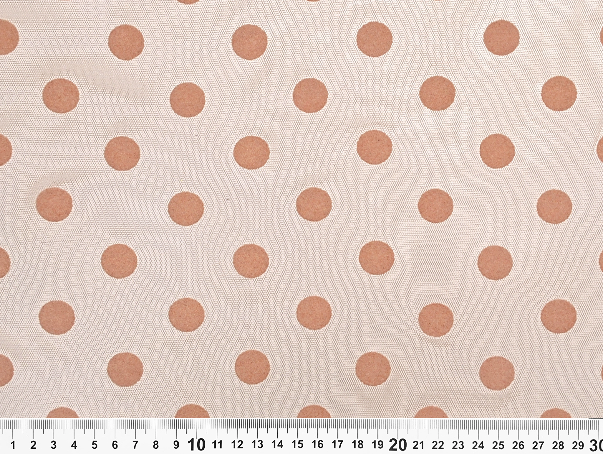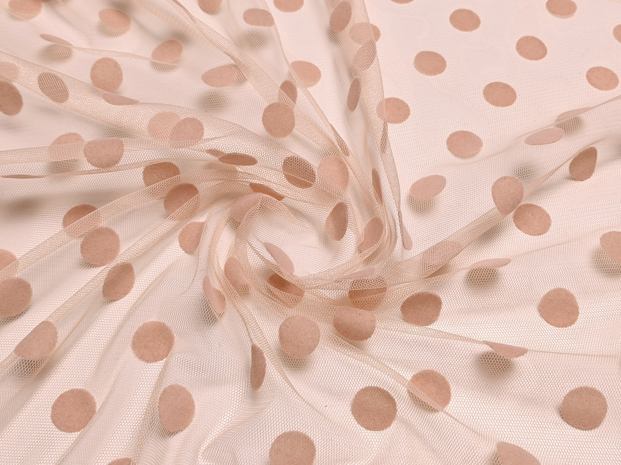 Сетка флок горошки 17 мм, бежево-персиковый