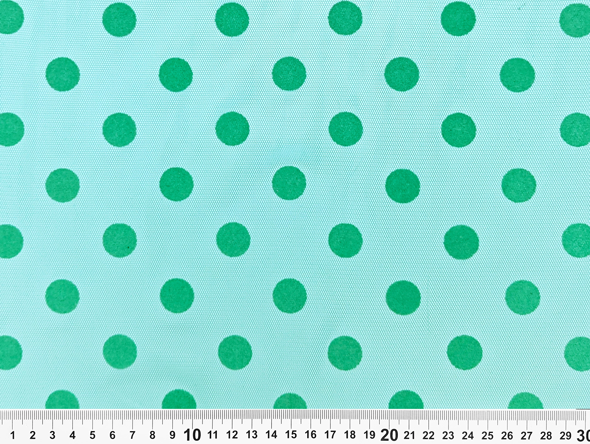 Сетка флок - это легкая, невесомая и деликатная ткань, которая хорошо сохраняет форму. Полотно не мнется, тянется по одной стороне, хорошо драпируется. Лицевая сторона имеет бархатистое напыление в виде горошков. Сетку флок можно применять для пошива всего изделия, также может служить декором для любых фасонов одежды и аксессуаров.