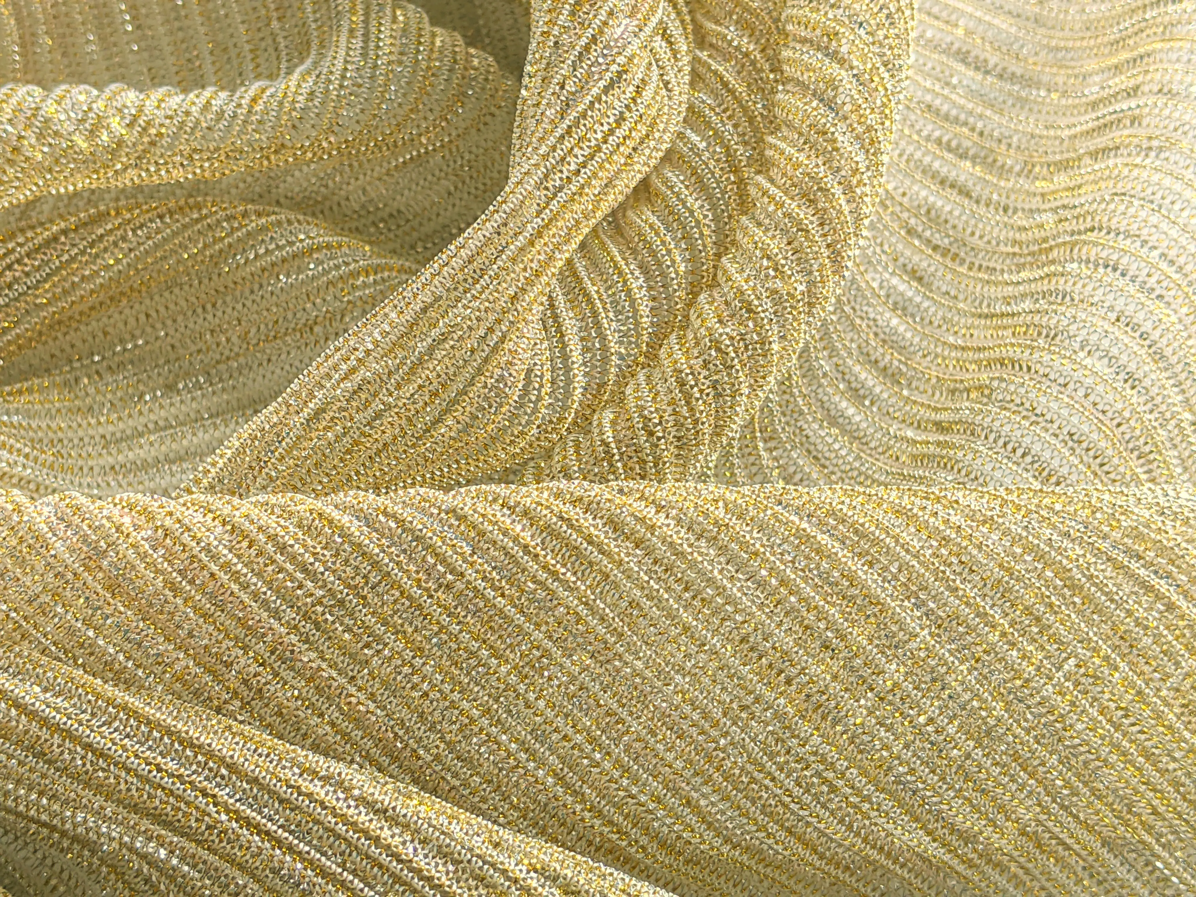 Мягкая и приятная на ощупь сетка с люрексом имеет плиссировку, благодаря которой ткань выглядит еще изящнее и наряднее.